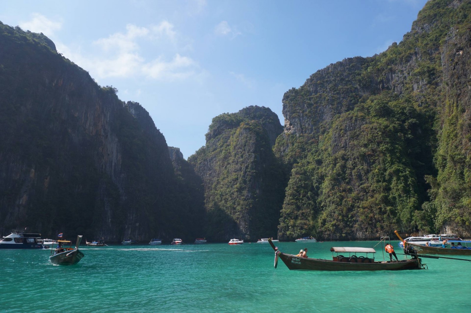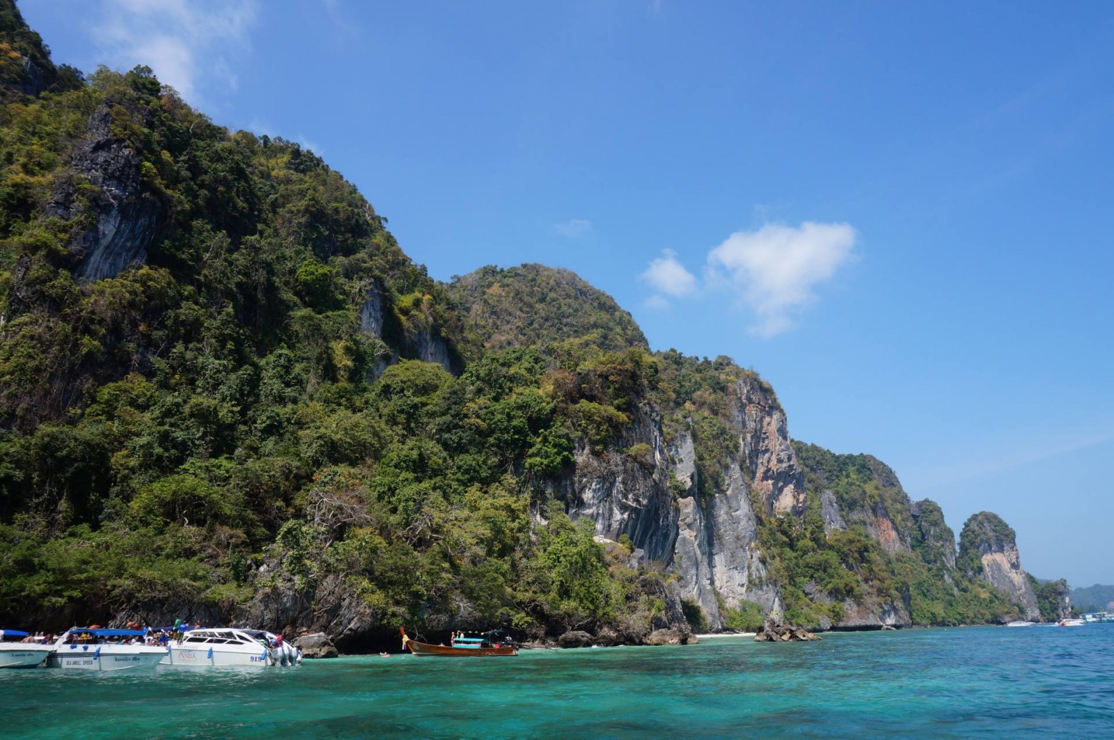 Je me suis décidée à vous en dire un peu plus sur notre honeymoon en Thaïlande, et j’ai commencé par Koh Phi Phi. On a passé 6 jours sur l’île et on en a bien profité ! Mon chéri m’avait offert une journée complète à bord d’un speed boat pour faire le tour des îles de Koh Phi Phi et fêter nos 6 mois de mariage. C’était vraiment un moment merveilleux ! On est parti le matin assez tôt avec une équipe de 3 skippers. Oui, oui, trois personnes que pour nous, ils ont le sens du service en Thaïlande !