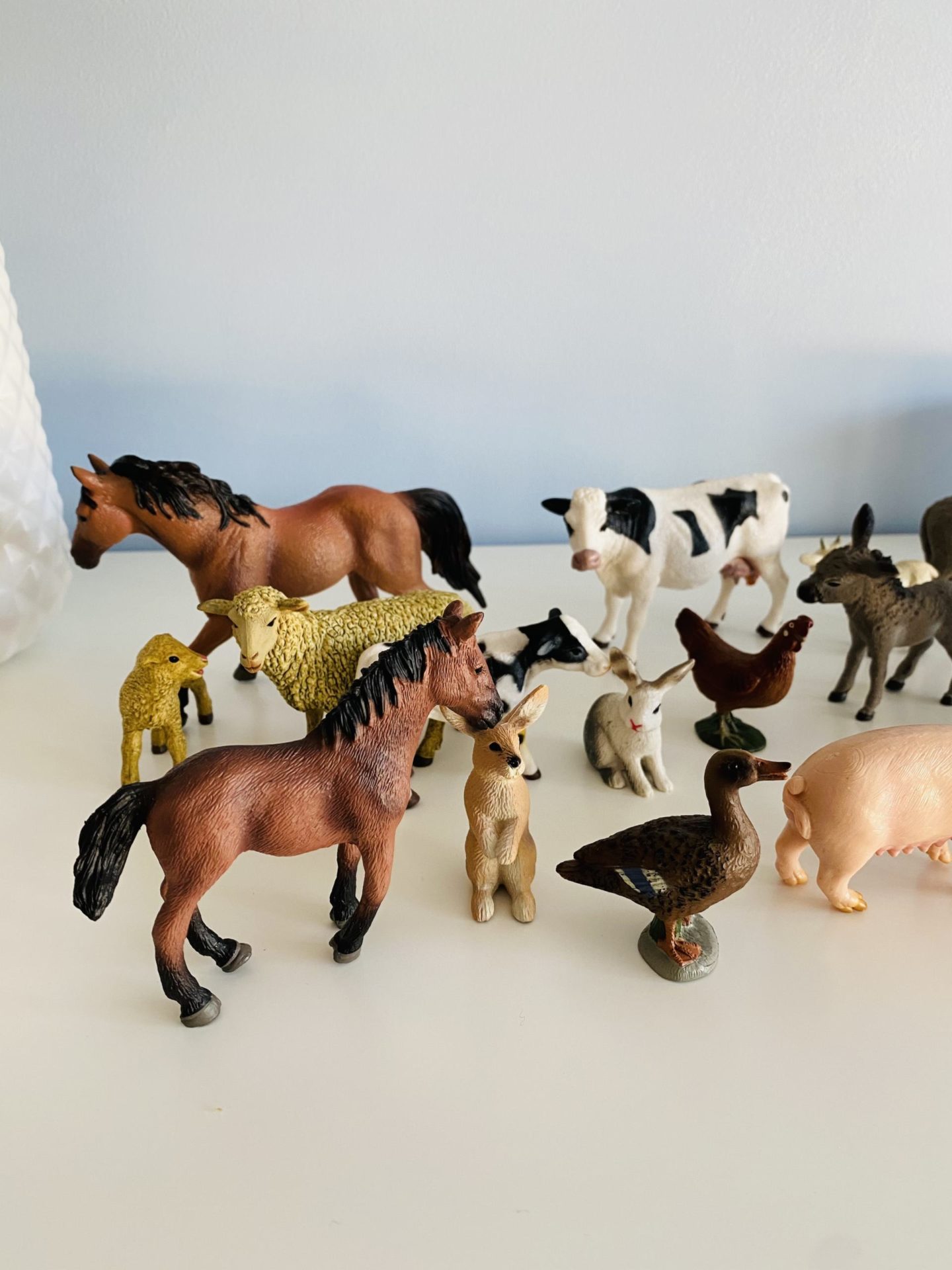 Pour son anniversaire, peu de jeux d’imagination car on a déjà une cuisine et une maison de poupées. Par contre, il a eu des figurines d’animaux de la ferme pour jouer, s’inventer des histoires et gagner du vocabulaire. Je lui ai trouvé une petite ferme sur Vinted que je vais repeindre pour la mettre dans sa chambre.