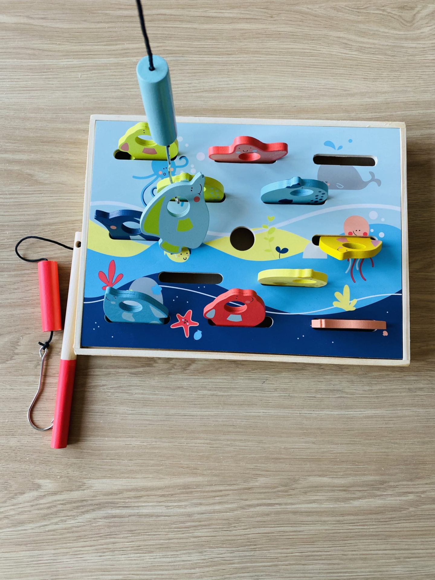 Côté jouets, on a choisi une pêche à la ligne en bois. Il en est fan ! Tout comme à la pêche aux canards de la fête foraine, il s’agit de pêcher les poissons en bois. Il peut jouer à deux car il y a deux cannes. Il a aussi eu un jouet d’équilibre pour faire tenir des figurines sur une balance, un puzzle en bois, un jeu de dominos, un jeu de mémoire et des jouets de bain. De quoi en profiter pour tous ces mois d’hiver où l’on passe un peu plus de temps à la maison.