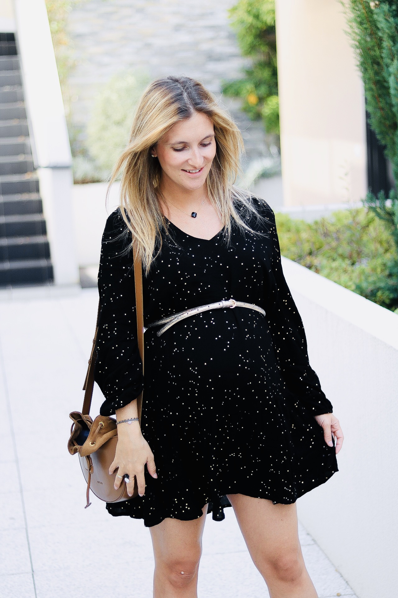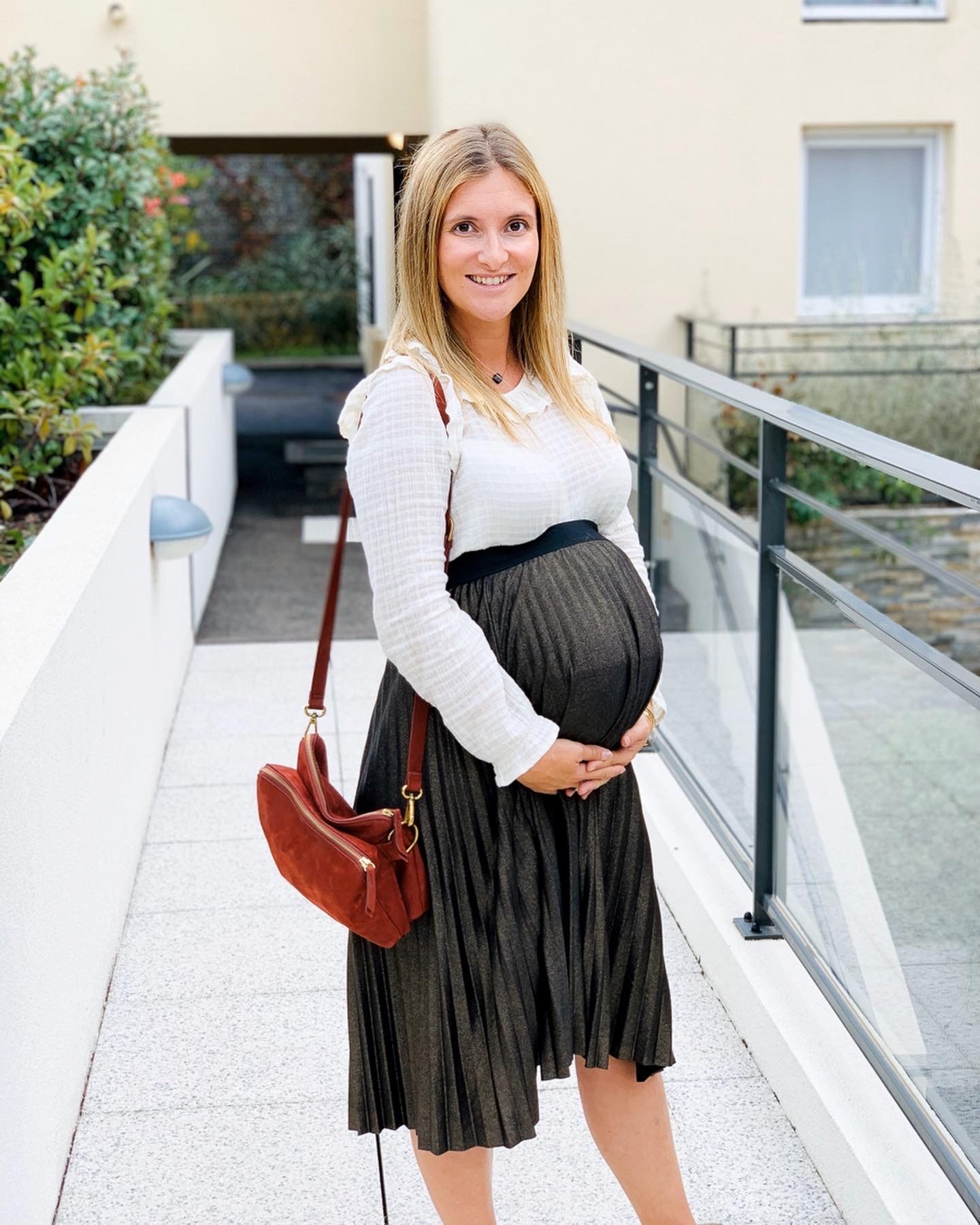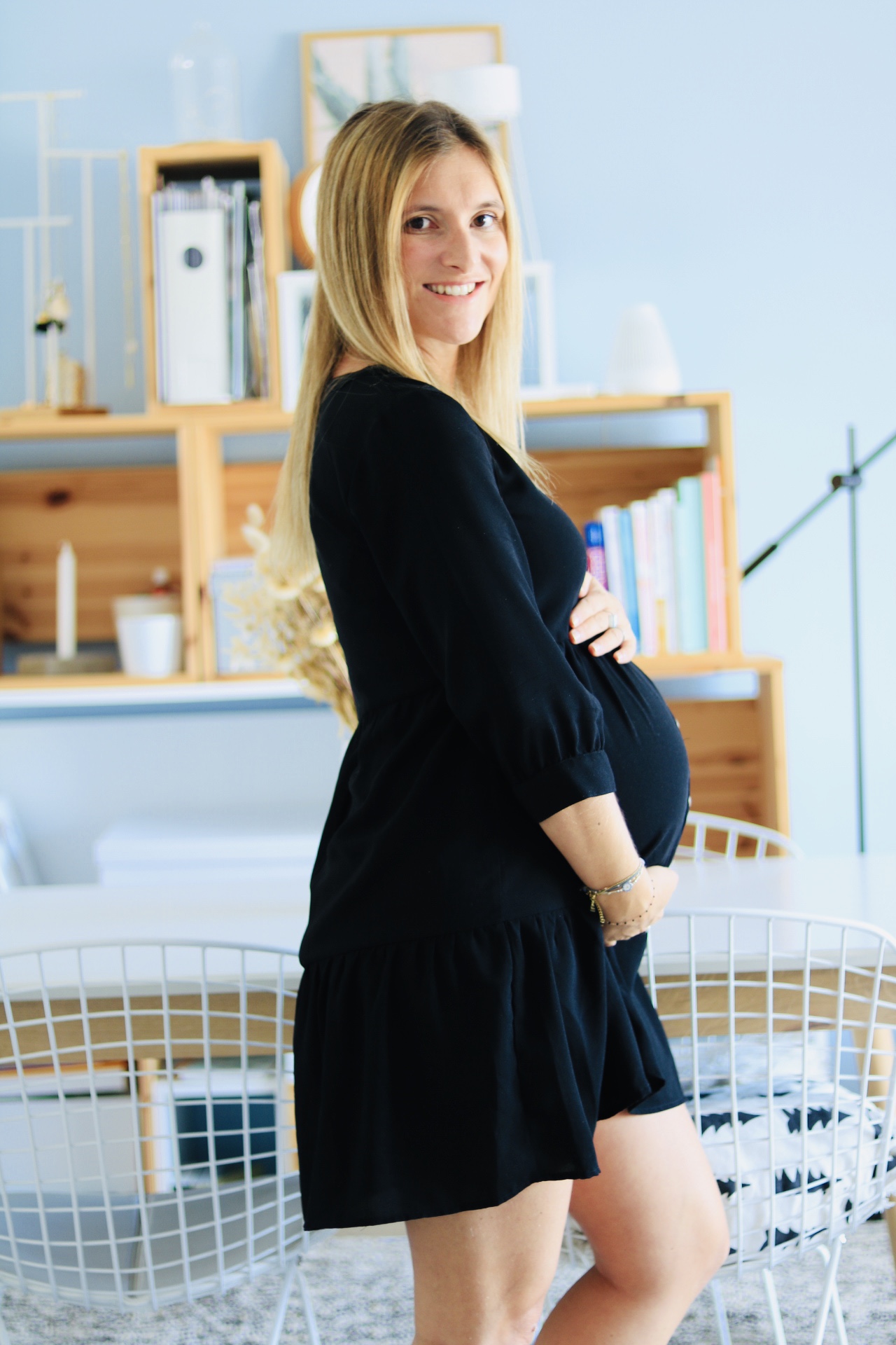 Je fais partie de celles qui n’explosent pas le compteur. J’ai de la chance car je n’ai pas eu l’alimentation idéale ni une activité physique regulière. J’avais pris 10,5 kgs en tout pour Louise, en accouchant à 8 mois et 3 jours. Là, je suis à 8 mois plein à +11kgs, donc plus ou moins le même rythme. Ce n’est pas un +20/25kgs, je ne suis pas gonflée, je ne fais pas de rétention d’eau, et pourtant, je sens que c’est quand même fatiguant, je suis plus essouflée aussi. C’est fou ! Si je vais au terme, j’espère limiter à +13kgs. Ceci dit, je suis quand même en forme, je marche, je sors, je profite. Je ralentis juste le rythme ! Mon ventre est bien arrondi, assez haut. J’ai aussi pris des cuisses, je le sens ! Je sais que c’est le plus dur à reperdre pour moi, mais je sais aussi que je serai plus motivée qu’après Louise car ce sera ma dernière grossesse. On a beau dire, body positive, les kgs on s’en fout, l’important c’est la santé, et tout le tralala. Pour moi, être bien dans mon corps, c’est me sentir à en forme, tonique, à l’aise dans mes vêtements aussi. Bref, en pleine santé ! Je n’arrive pas à me sentir bien avec les cuisses trop épaisses, toute sérrée dans mes fringues. C’est comme ça, je suis comme ça ! C’est mon objectif bien-être !