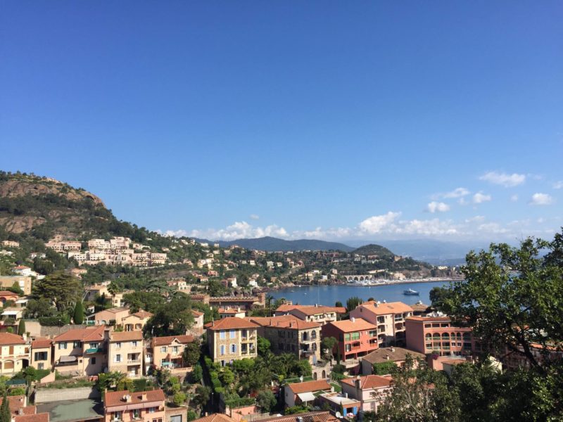 On s’est garé à proximité du Pullmann puis on est monté sur nos vélos en direction de la fameuse Corniche d’Or. J’avais déjà fait cette route en voiture mais finalement, même en s’arrêtant de temps en temps, on ne profite pas vraiment des panoramas de folie ! Première étape, Théoule ! Le port et la petite ville sont très sympas et c’est l’occasion d’attaquer par une première montée de 4-5 kms. Je l’ai coupée en deux pour prendre une jolie photo et je dois dire que ça fait du bien ! Une fois Théoule passé, c’est une succession de virages qui montent puis qui descendent. J’avais envie de m’arrêter toutes les cinq minutes. Le temps était vraiment beau et les couleurs étaient sublimes.