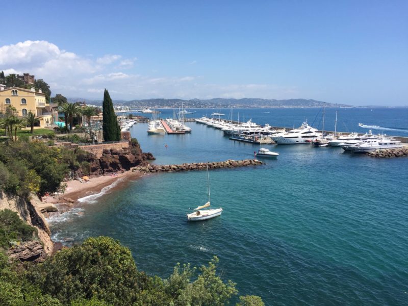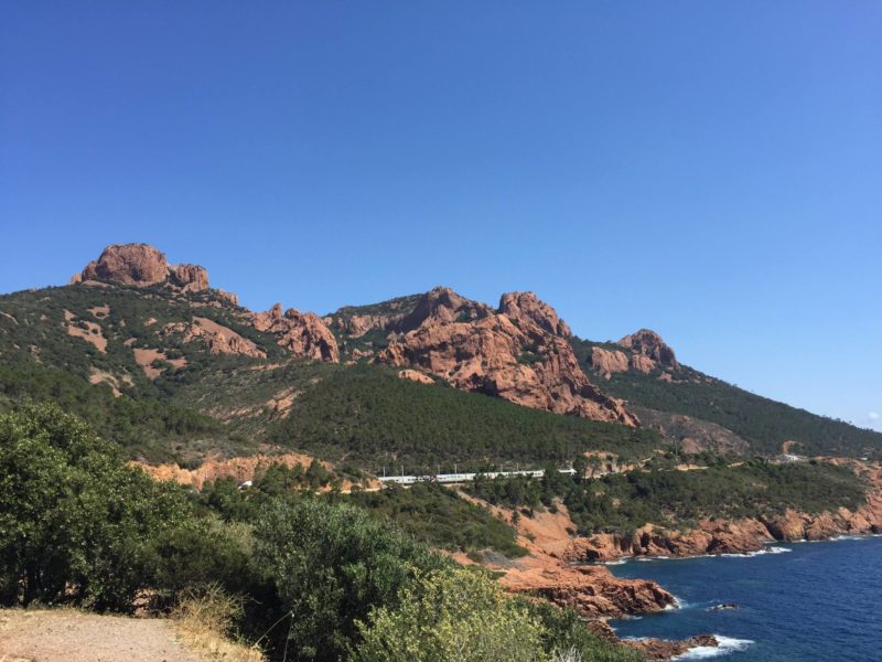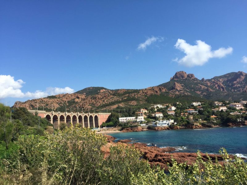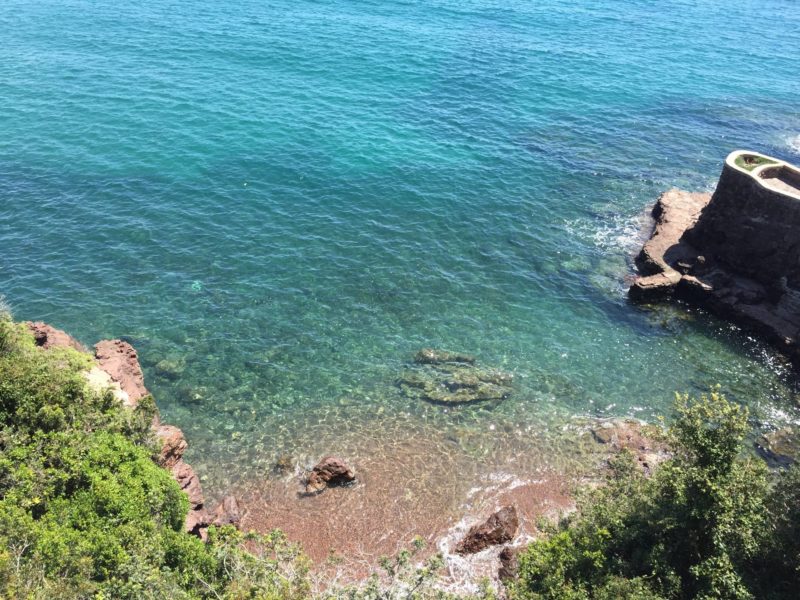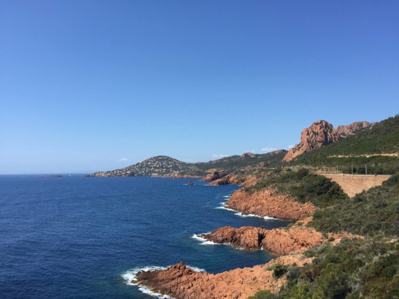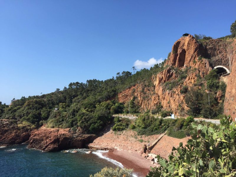 Après Théoule, on est passé à La galère puis Le Trayas. A partir de là, on voyait sur la droite (côté terre) le Pic de l’Ours. Tout au long de ce parcours à vélo dans l’Esterel, on est tombé sur des petites criques, des calanques et jolies plages, ça donnait envie d’aller se poser pour faire un pic nic ou se baigner ! On a fini le tour à la Baie d’Agay. On voulait aller jusqu’à St Raphaël mais le vent s’était levé donc le retour s’annonçait plus dur. En tout, l’aller-retour fait presque 50 kms avec un dénivelé positif de presque 600m, mon record ! Finalement, j’étais contente de finir mais j’aurais pu continuer ! Je vais pouvoir faire encore plus long la prochaine fois ! L’avantage est que les photos seront déjà faites !