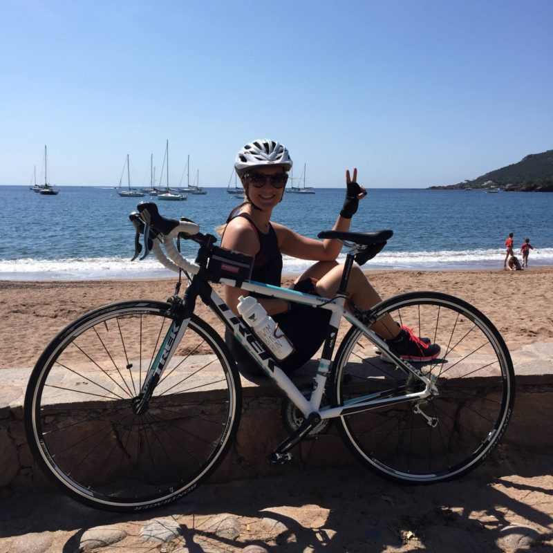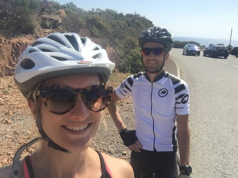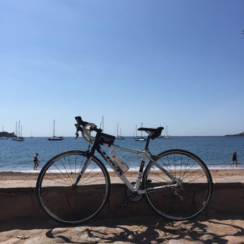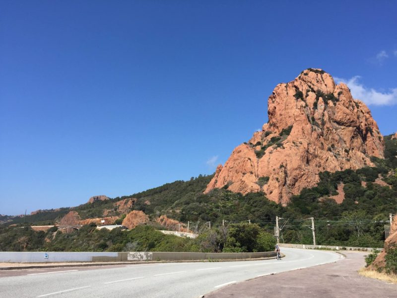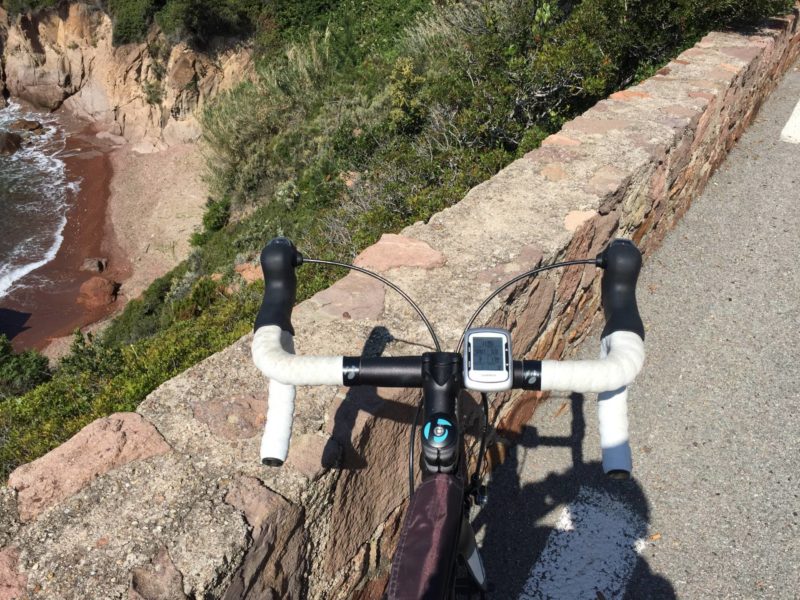 Depuis que j’ai mon vélo, je suis toujours restée à proximité de chez moi car mes sorties les plus longues étaient jusqu’à maintenant d’environ 40 kms. En reprenant cette saison, je me suis sentie en forme et j’ai déjà fait une sortie de 62 kms, mon record ! Du coup, j’ai demandé à mon chéri de m’emmener un peu plus loin, sur un parcours qu’il connait et où je peux voir de jolis paysages. J’aime beaucoup faire du vélo et encore plus quand l’environnement est chouette. Du coup, on a pris la voiture, direction Mandelieu pour faire une séance à vélo dans l’Esterel.