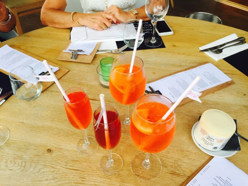 Du coup, le mois d’août nous a semblé être une éternité, mais tant mieux vu qu’on était en vacances ! On a bien profité de ces premières semaines où on était tous les deux au courant, enfin ! On est beaucoup resté tous les deux, on avait envie de rester dans notre petite bulle. Ca a aussi été le mois où on a annoncé cette nouvelle à beaucoup de nos proches. On a commencé par nos parents, c’était fin juillet, et j’étais donc enceinte de deux mois et demi. On a réservé un restaurant qu’on adore, officiellement pour se faire un repas sur la plage avant que mes beaux-parents partent en vacances pour Hawaï. Nos parents étaient en retard et l’attente nous a semblé interminable, on avait d’ailleurs shooté un look en attendant (mon short serrait déjà un peu à la taille si vous regardez le zoom !) ! Juste avant, j’avais vu le serveur et je lui avais donné des petits objets à glisser dans les verres de l’apéro. D’ailleurs, j’avais commandé de l’alcool pour ne pas éveiller les soupçons ! Après la commande, les verres sont arrivés avec mes petits objets : des pailles avec des petits fanions sur lesquels j’avais écrit “Mamie” et “Papi” ! A l’arrivée des verres, ma mère s’est un peu étonnée de voir marqué “Mamie” ! Puis mon beau-père en face d’elle lui dit que de l’autre côté du fanion, il est écrit “Papi”. Entre temps, les autres verres étaient servis. Ma belle-mère en face de moi a vu mon sourire narquois et a compris assez vite. Ma mère se demandait toujours pourquoi on les traitait de “Papi/Mamie” ! Mon père a eu son verre en dernier mais à le voir si muet, je pense qu’il avait tout de suite compris ! Il était très surpris car il ne s’y attendait pas avant encore un ou deux ans ! En fait, tout le monde était surpris car on avait toujours tenu un discours “Ouais, on verra plus tard !” pour éviter d’avoir toujours la question ou de se faire embêter sur le sujet ! La surprise a été totale et ils étaient carrément hyper contents ! C’est chouette comme moment !