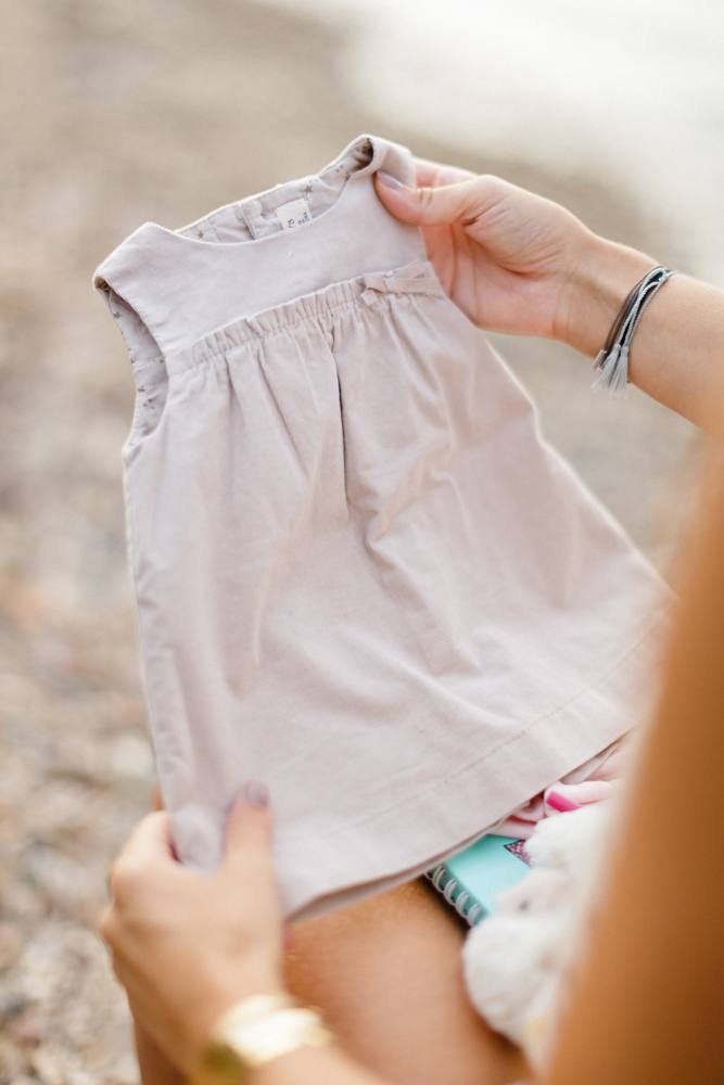 PS : L’une d’entre vous avait repéré le stylo rose dans la série de photos précédentes ! Bravo, c’était un petit clin d’oeil 🙂 … Je vous mets aussi la petite peluche offerte à Steph pour l’annonce et sa première petite robe que j’ai achetée pour le shooting pour symboliser que c’est une fille !