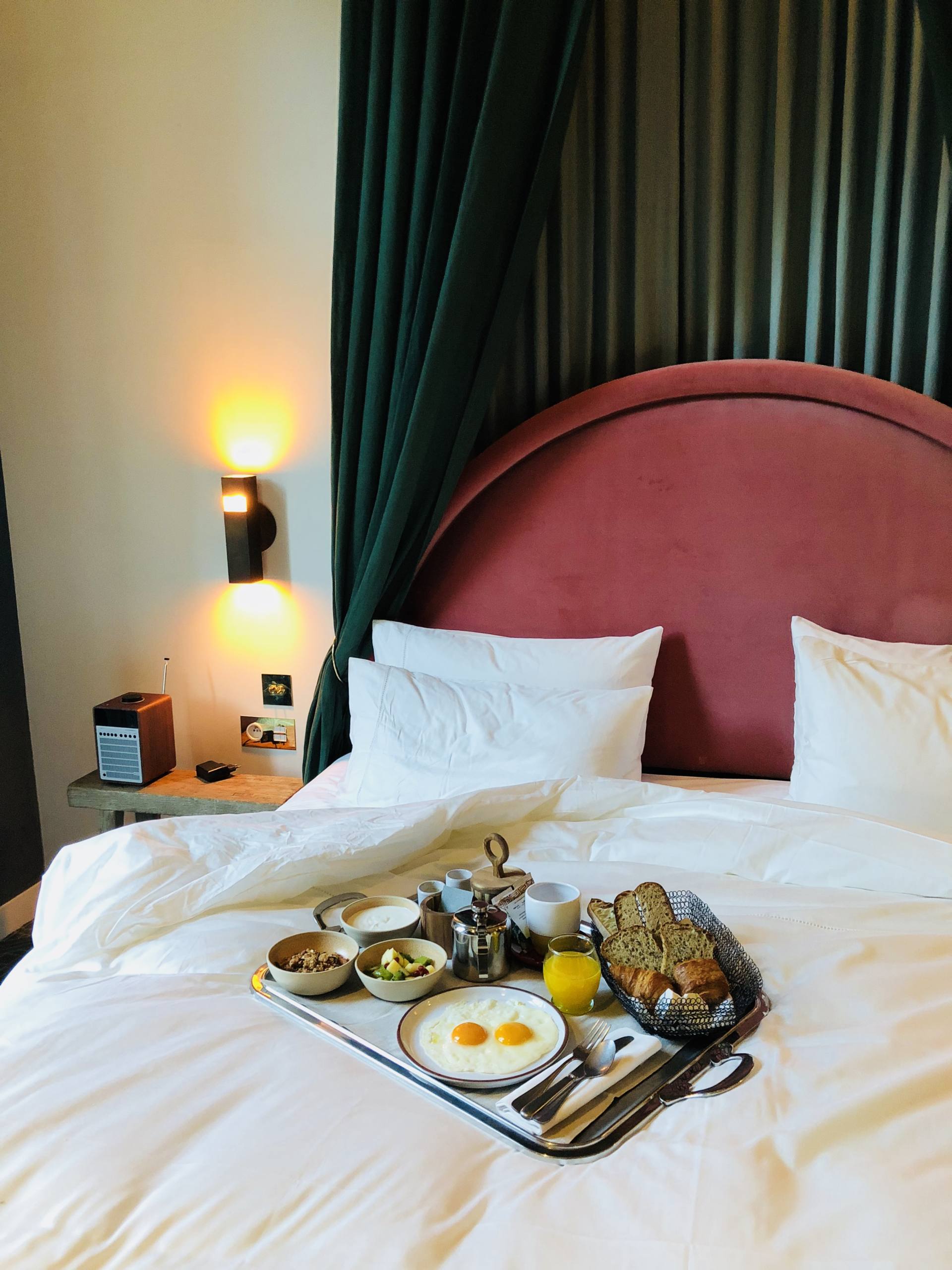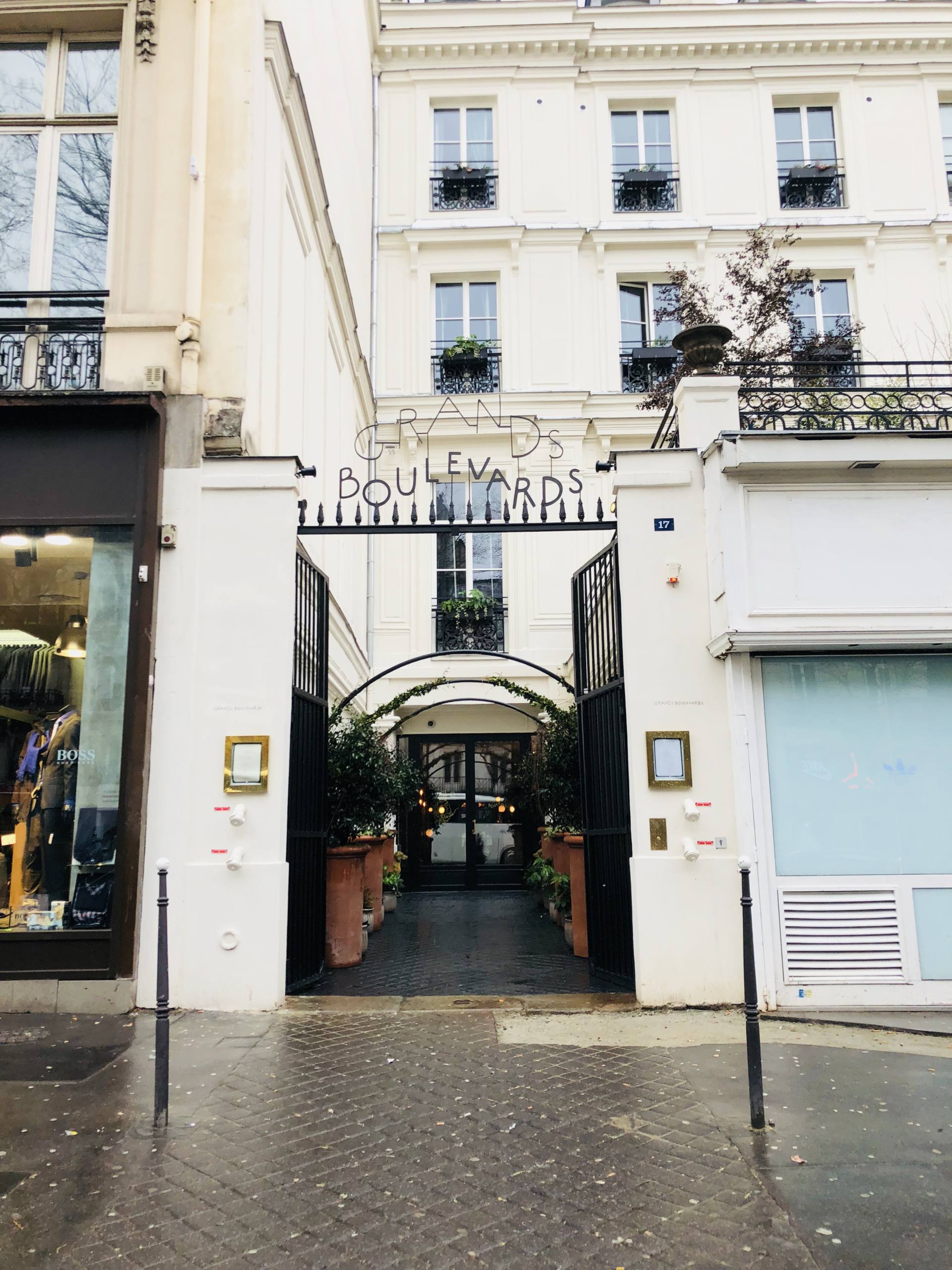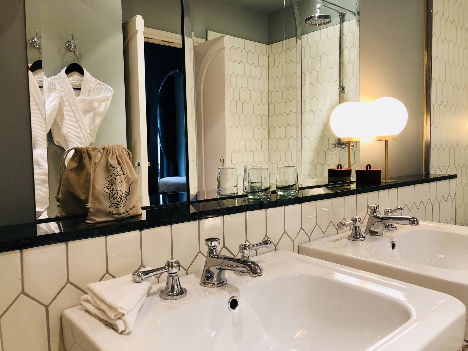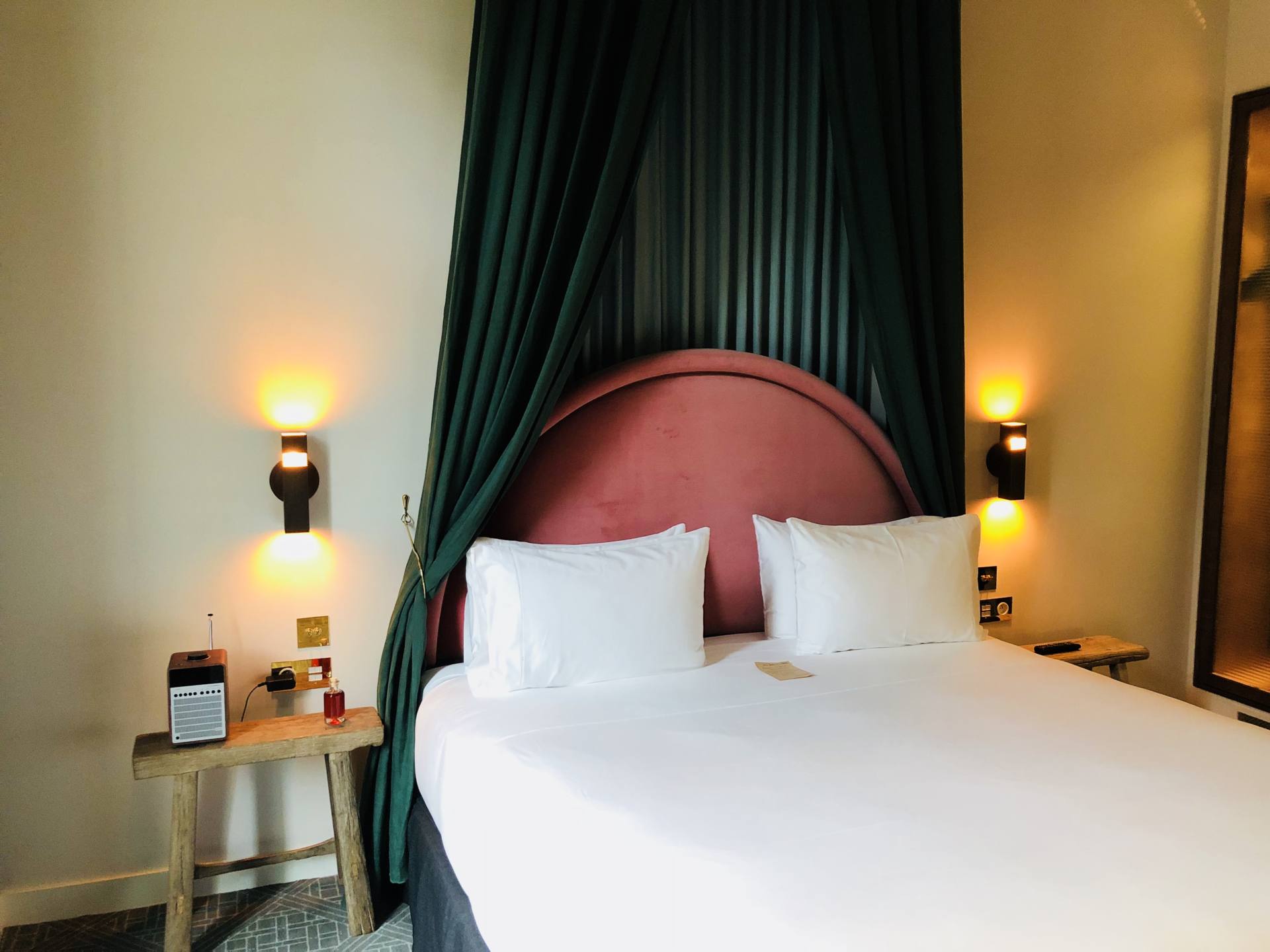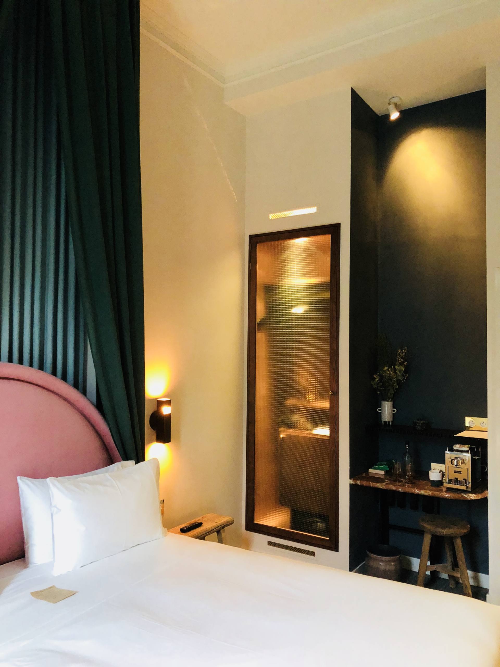 Pour cette échappée parisienne, je dormais dans un tout nouvel hôtel qui a ouvert en janvier. Il est idéalement situé, sur les grands boulevards, à proximité du quartier du Sentier, et pas loin de chez Sézane pour les addicts ! J’aime ces nouveaux hôtels où l’on retrouve une magnifique décoration et une vraie singularité. Celui-ci n’échappe pas à la règle, tout est canon dès l’entrée. J’ai d’ailleurs adoré l’odeur de leur bougie signature qu’on sent dès l’entrée. Je regrette de ne pas avoir demandé si on pouvait l’acheter ! Le restaurant et le bar sont superbes, sous une immense verrerie. Ma chambre était très sympa avec une joli bonus : une petite terrasse privative ! Si rare à Paris ! J’ai vraiment adoré cette adresse, je pense que j’y retournerai pour dîner !