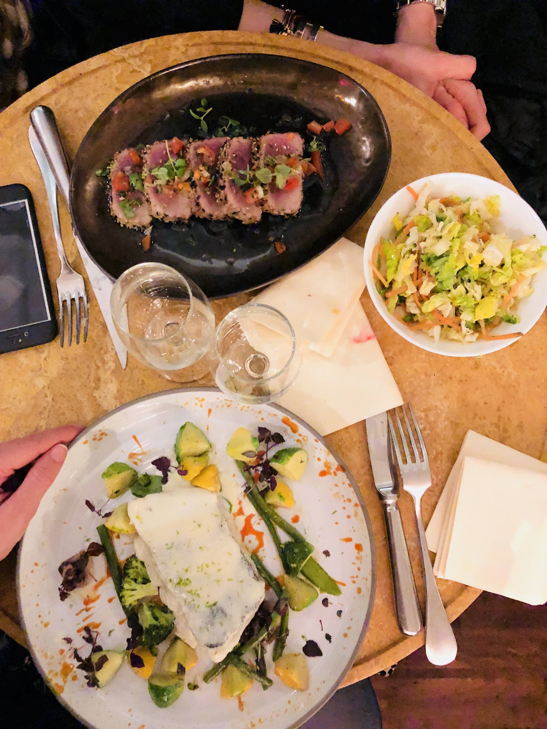 Ce soir-là, je retrouvais une copine qui a déménagé à Paris ! On avait envie de se faire un petit resto sympa toutes les deux. C’est au 14 Paradis que nous sommes allées. On a été surprise de voir le nombre de restos canons dans la rue et on a pas été déçues du nôtre ! Une déco superbe, un service aux petits soins et une carte de folie, on ne savait plus où donner de la tête. Résultat, on a tout partagé pour pouvoir en goûter plus ! Velouté avec asperges et oeuf mollet + camembert rôti au miel et sucrine en entrées, lieu jaune et légumes au lait de coco + tataki de thon et salade croquante truffée en plats, brioche perdue au caramel beurre salé + déclinaison de citron en dessert. Un sans faute de A à Z ! On a aussi testé les cocktails qui étaient délicieux ! Vraiment une chouette adresse où aller entre copines ou en amoureux, les deux s’y prêtent ! Compter 38€ pour un menu entrée-plat-dessert, 10€ pour un cocktail.