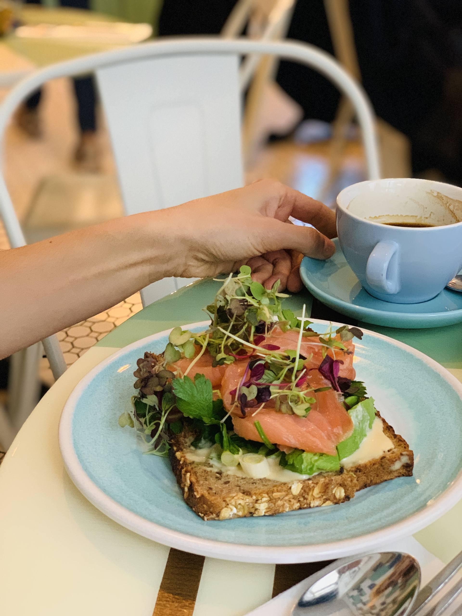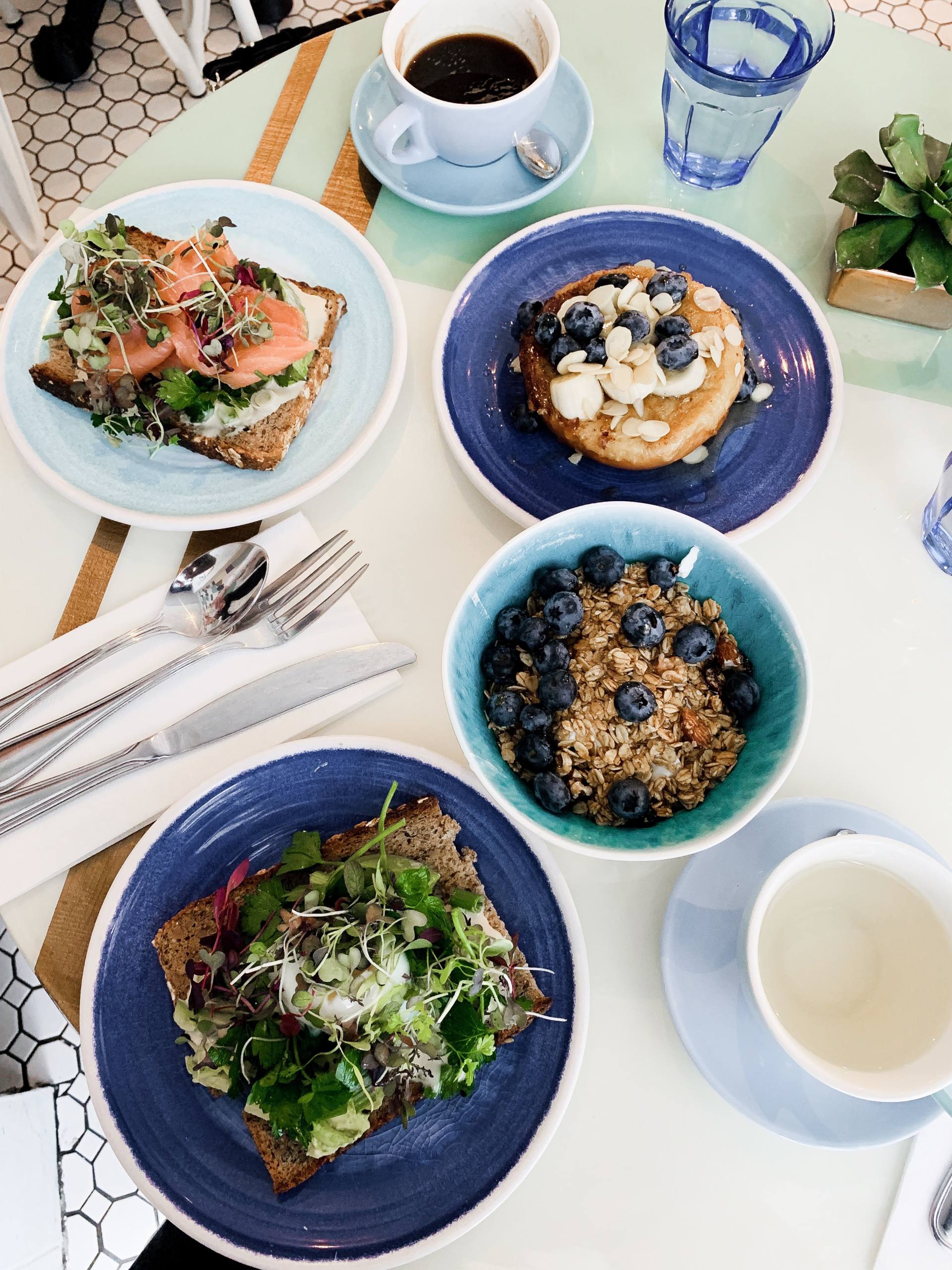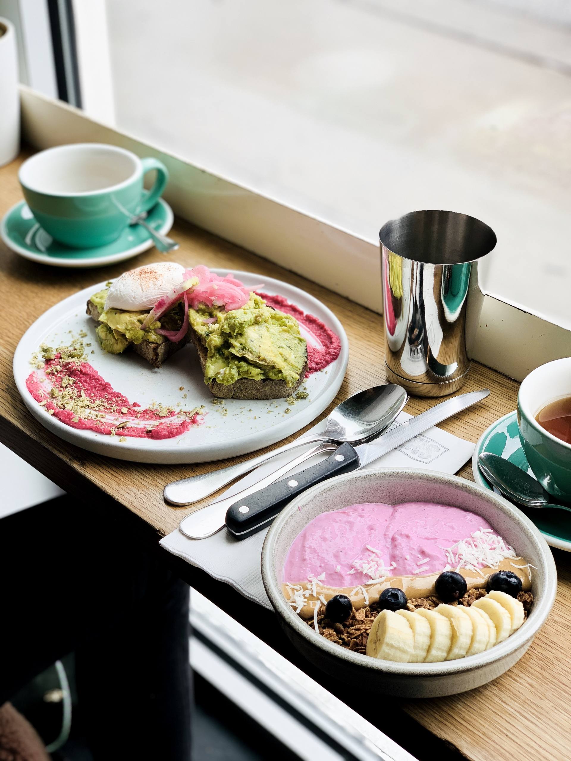 - Citizens of Chelsea : C’est une chaîne, il y en a quelques-uns ! Déco parfaite, comme souvent. On a goûté l’avocado toast qui a été le premier et l’un des meilleurs du voyage, sur une tranche de pain toasté épaisse, avec du hummous de betterave, délicieux ! On avait aussi pris un bowl de yaourt aux myrtilles avec un granola délicieux !