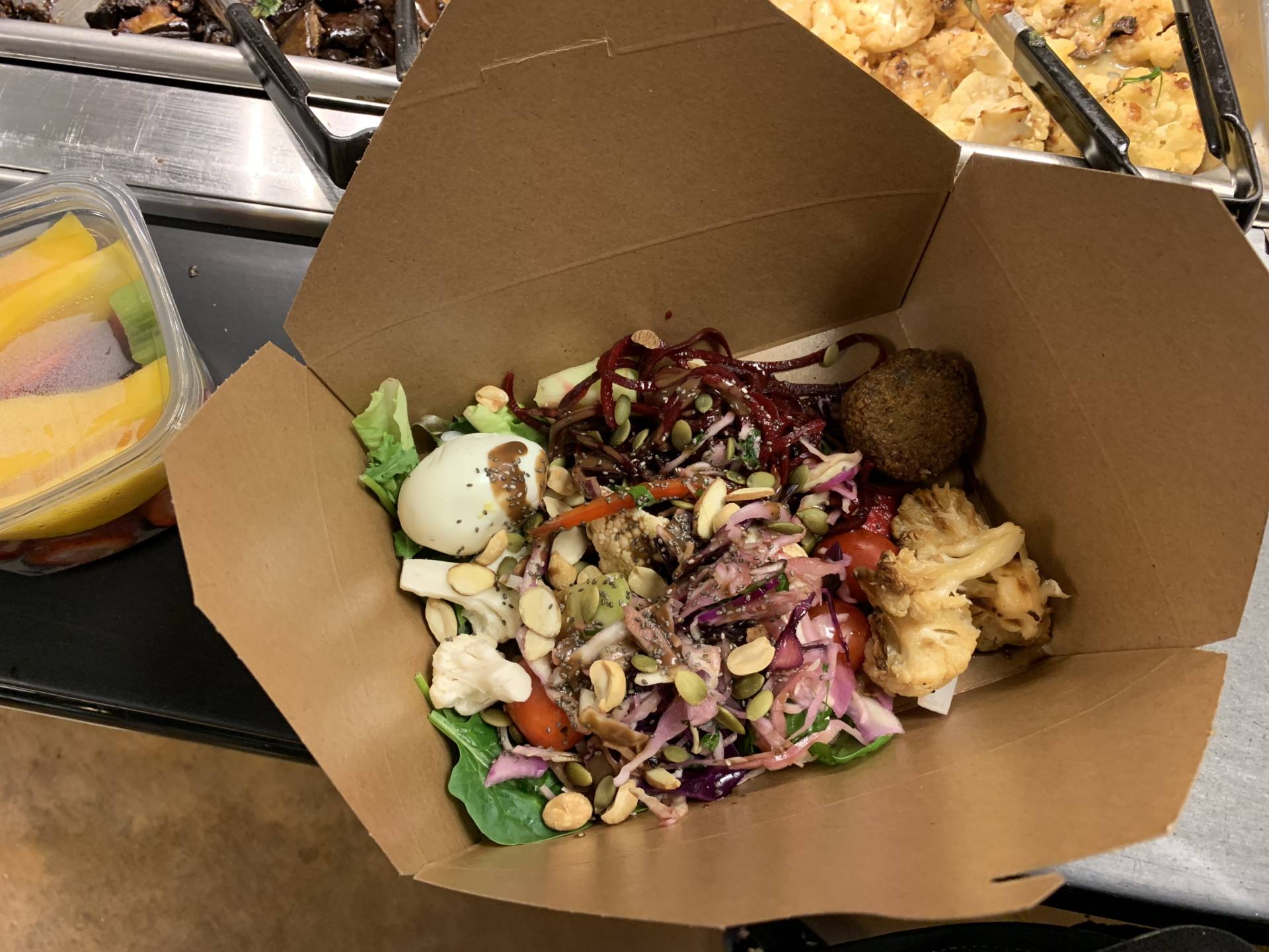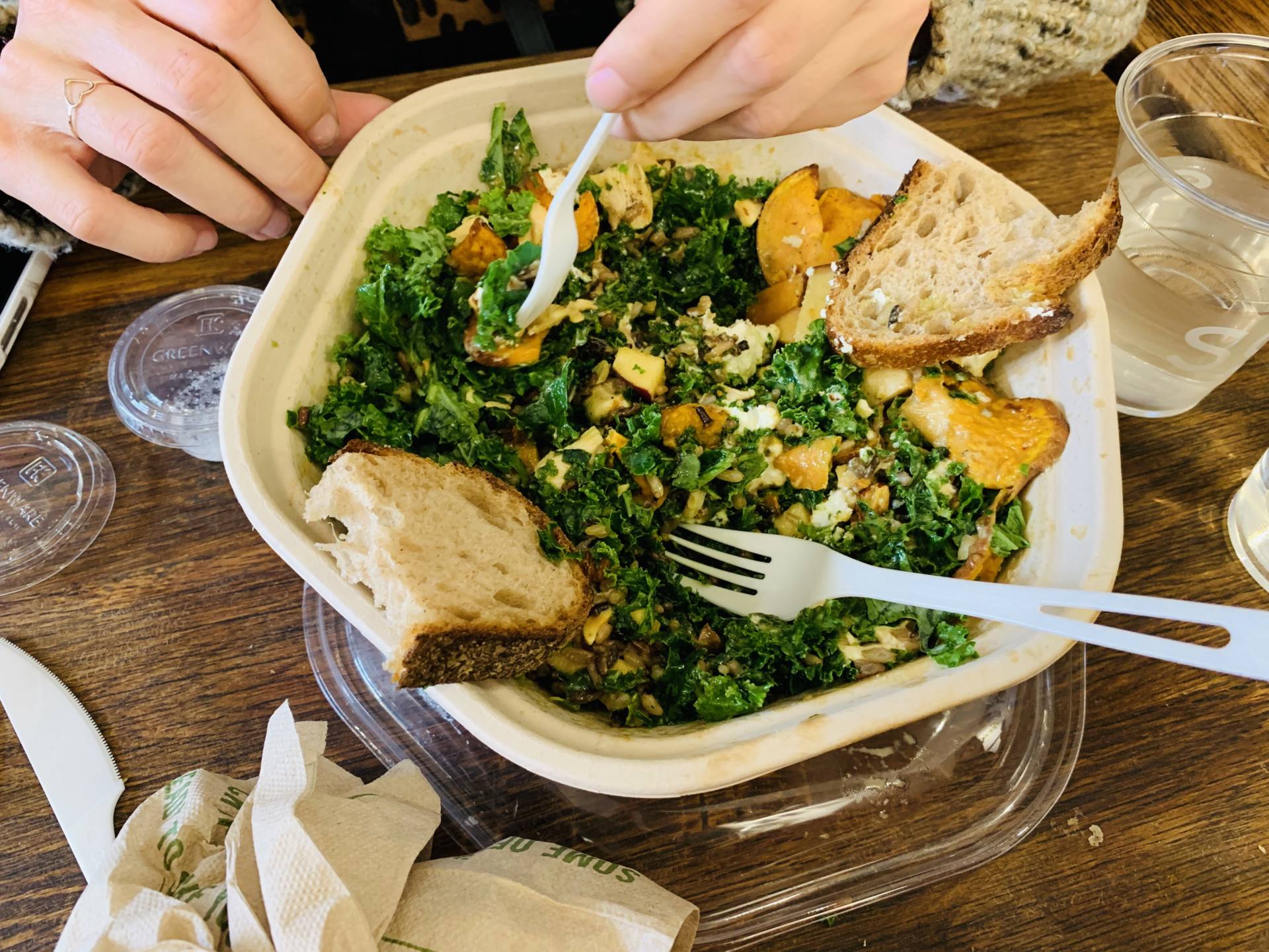 - Sweetgreen : Une chaîne mais avec un concept qui nous a bien plu. On a mangé à celui proche de Bedford Avenue à Williamsburg. Rentrées par hasard parce que ça sentait bon ! C’est un bar à salades chaud/froid ! Soit on peut choisir des compositions déjà faites, soit composer son bol ! On a pris un gros bol à 13$, avec chou kale, riz brun, poulet grillé, betterave, pommes, patate douce et fromage de chèvre. Un DÉ-LICE ! C’est bien copieux donc c’est top !