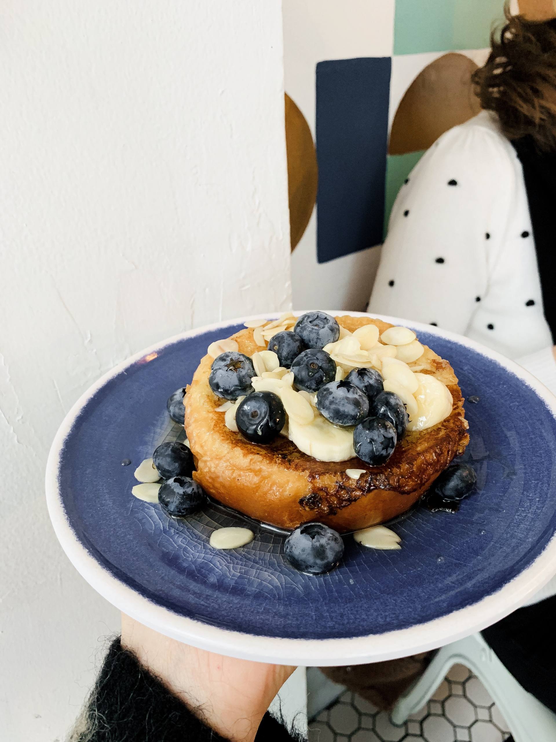 - La Parisienne : Une des adresses qu’on a préférée du voyage ! Je l’ai trouvée sur un blog puis je l’avais notée dans ma carte Masptr. Dans le coin, près du One World Trade Centre, il n’y a pas beaucoup de petites adresses chouettes comme celle-ci ! Une déco trop mignonne, de la musique française type Cabrel, Polnareff et un super acceuil ! En plus, la personne qui nous a servies m’a reconnue. Rencontre improptue mais forcément, un grand plaisir ! C’est le meilleur avocado toast qu’on ait mangé. Le pain était délicieux, il y avait de beaux morceaux d’avocat, des lamelles de légumes, un super assaisonnement. Tip top ! On avait aussi pris un granola qui était copieux mais super bon ! Les filles du restaurant nous ont apporté un french toast aux myrtilles pour nous faire goûter leur spécialité et il était incroyable !!! Bon, avec 2 thés, autant vous dire que ce jour-là, on a pas remangé beaucoup de la journée ! C’est aussi un peu moins cher qu’ailleurs donc +1 sur ce point !
