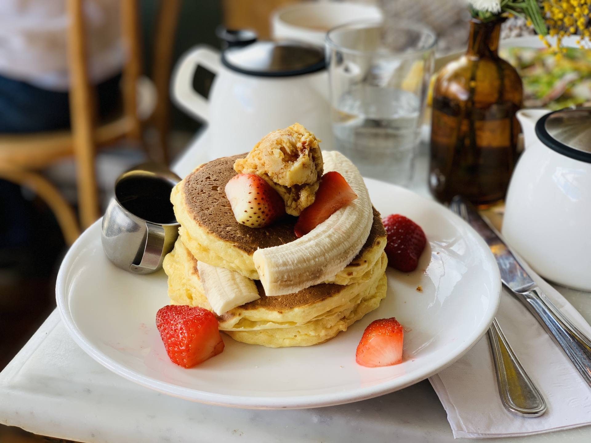 - Five Leaves : Un café-bistrot de Williamsburg qu’on nous a recommandé plusieurs fois, notamment pour ses pancakes incroyables ! Alors on en a mangé qu’une seule fois, mais on avait prévu que ce serait là ! Le café n’est pas forcément ce qui nous aurait plu de l’extérieur mais je vous ai fait confiance et on a testé. Verdict ? PÉ-PITE !!! On a pris un avocado toast, des pancakes et 2 thés. On a partagé les 2 assiettes, ça limitait l’excès de sucre ! Mais finalement, vu qu’ils sont à la ricotta, ils n’ont pas été si sucrés ! C’était tellement bon. Les pancakes sont servis avec des fraises, de la banane, une boule de beurre/miel sur le dessus et un petit pot de sirop d’érable. Franchement, en sortant, on se sentait rassasiées mais bien ! Côté prix, pour 2 assiettes et 2 thés, il faut compter 44$ taxes et tips inclus, soit 18€ par personne environ.