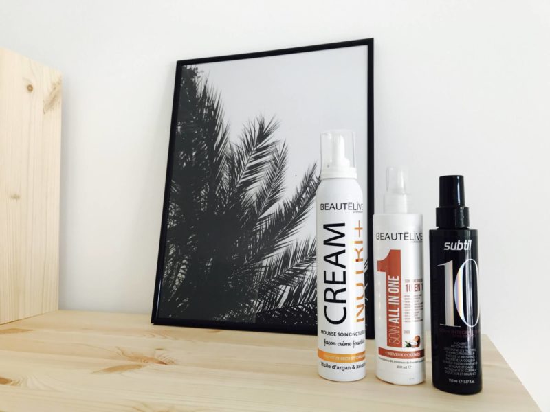 J’ai profité de devoir aller à la soirée Movenpick organisée sur le rooftop de l’hôtel Monsigny pour tester. Après un lavage de mes cheveux classique, j’ai mis un peu de sérum comme habituellement puis un soin qui nourrit mes cheveux mais surtout qui apporte une thermo-protection : le soin All in One de BeautéLive. En plus, il sent divinement bon la noix de coco ! Je devrais le faire même avec un liseur d’ailleurs ! J’ai ensuite séché mes cheveux comme habituellement. J’en ai profité pour tester un des produits que j’avais reçu, le genre de produits que je n’utilise jamais mais au sujet duquel on me dit toujours “Tu devrais, c’est top” ! C’est une mousse : la Mousse Soin Onctueuse Nutri+ de BeautéLive ! Je me rends compte en écrivant l’article que les produits que j’ai préféré sont tous de la même marque ! Il y a quand même un autre soin en photo ! Alors là, c’est plutôt une mousse de soin qu’une mousse coiffante mais pour autant, ça a donné un peu plus de texture à mes cheveux, et surtout un peu plus de souplesse. Ce n’est pas radical mais j’ai senti la différence à la fin. Bref, après ces 2-3 petites étapes, j’étais prête pour attaquer le coiffage avec la brosse lissante.