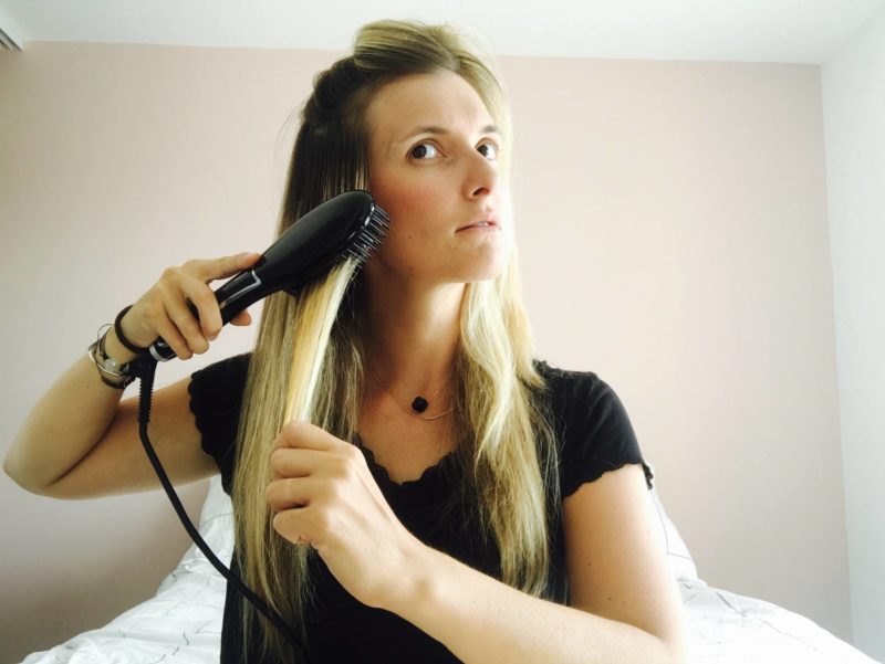 Je suis une adapte du brushing car j’ai les cheveux qui ondulent mais hélas pas une belle ondulation et j’avoue qu’avec ces chaleurs le brushing c’est un peu hard et j’avais déjà commencer à me pencher sur les brosses lissantes, je tente ma chance on ne sait jamais.