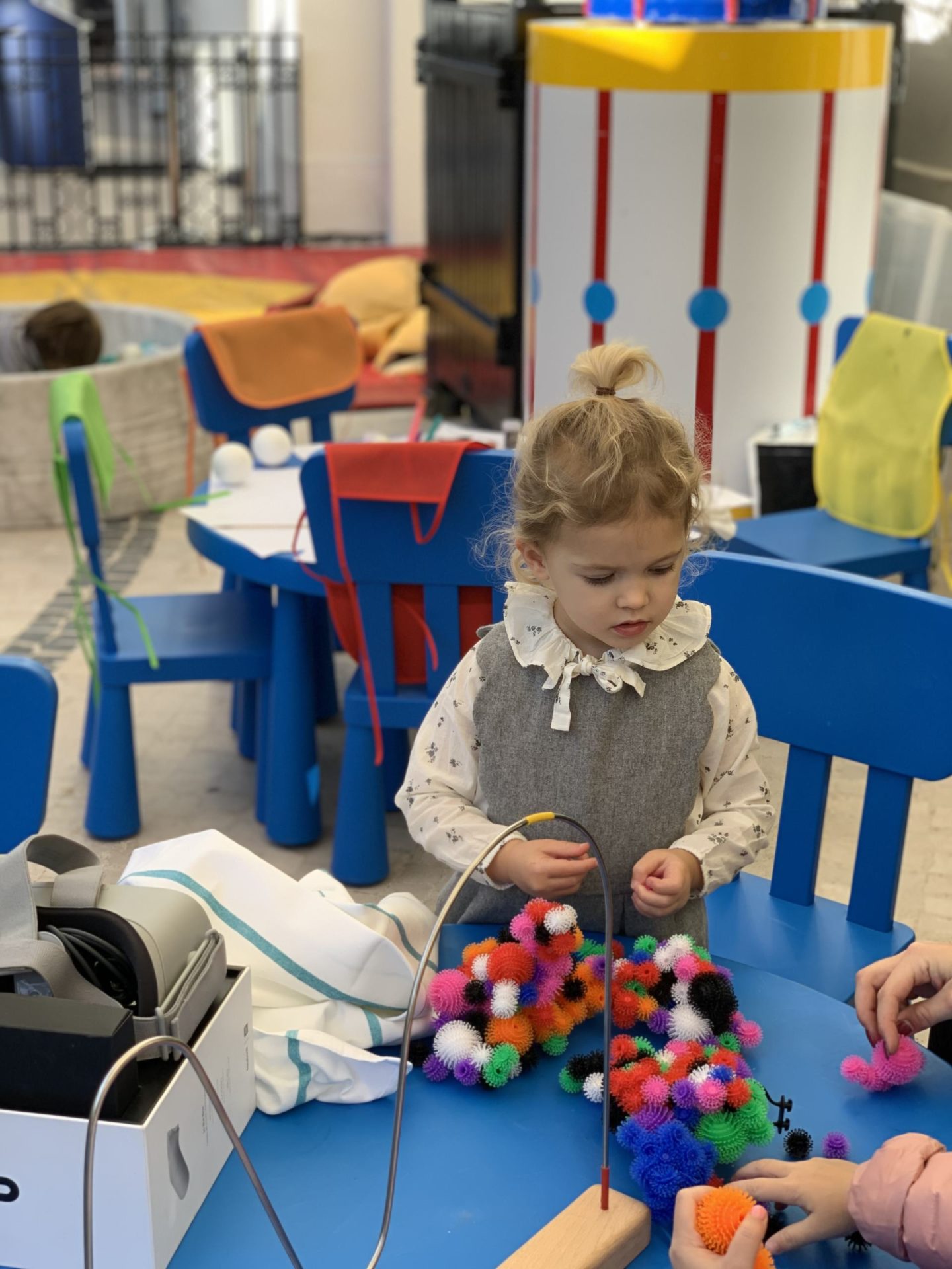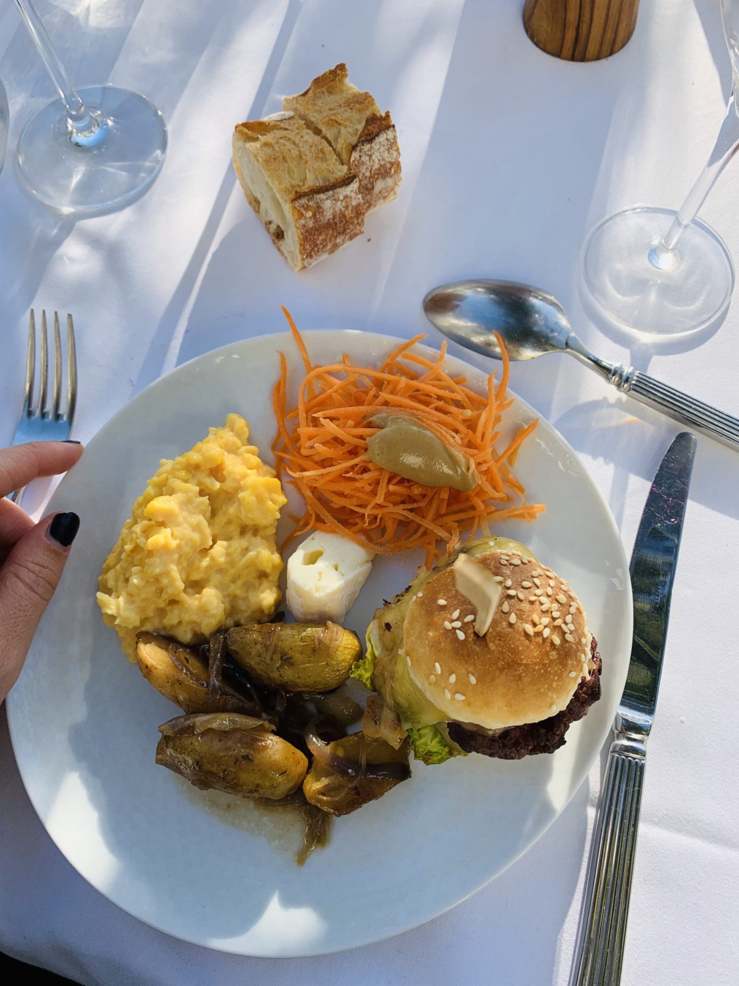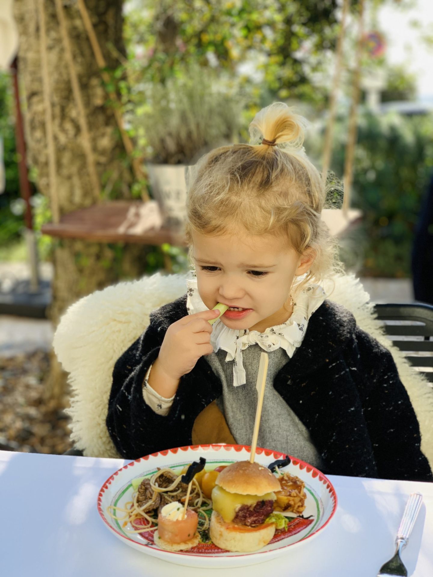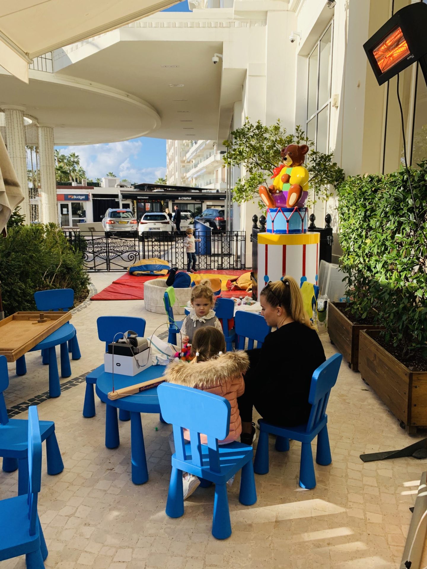 Le gros plus de ce brunch cannois, c’est que c’est vraiment un Brunch en Famille, très kids friendly. Là encore, dans ce type d’établissement, ce n’est pas toujours le cas ! Des animateurs/animatrices sont là pour divertir les enfants dans le Kids Corner où on retrouve des jeux de sociétés et des ateliers à thème. Louise a fait de la peinture, des ateliers créatifs et des jeux en bois type jeux de boules. Vraiment, elle s’est éclatée. On la voyait aller et revenir pour nous dire que c’était “trop bien”, et quand on passait vers le coin des enfants, elle ne nous voyait même pas. C’est assez rare qu’elle se laisse aller au point de nous perdre du regard ! Et nous, ça faisait bien longtemps qu’on avait pas eu un repas si posé, si tranquille. Je vous rassure, elle n’oubliait pas de revenir manger ses crevettes, son concombre et son mini-burger ! Quant à Jules, fidèle à lui-même, il a dormi tout le long du brunch, dans sa poussette, avec cette température presque printanière !
