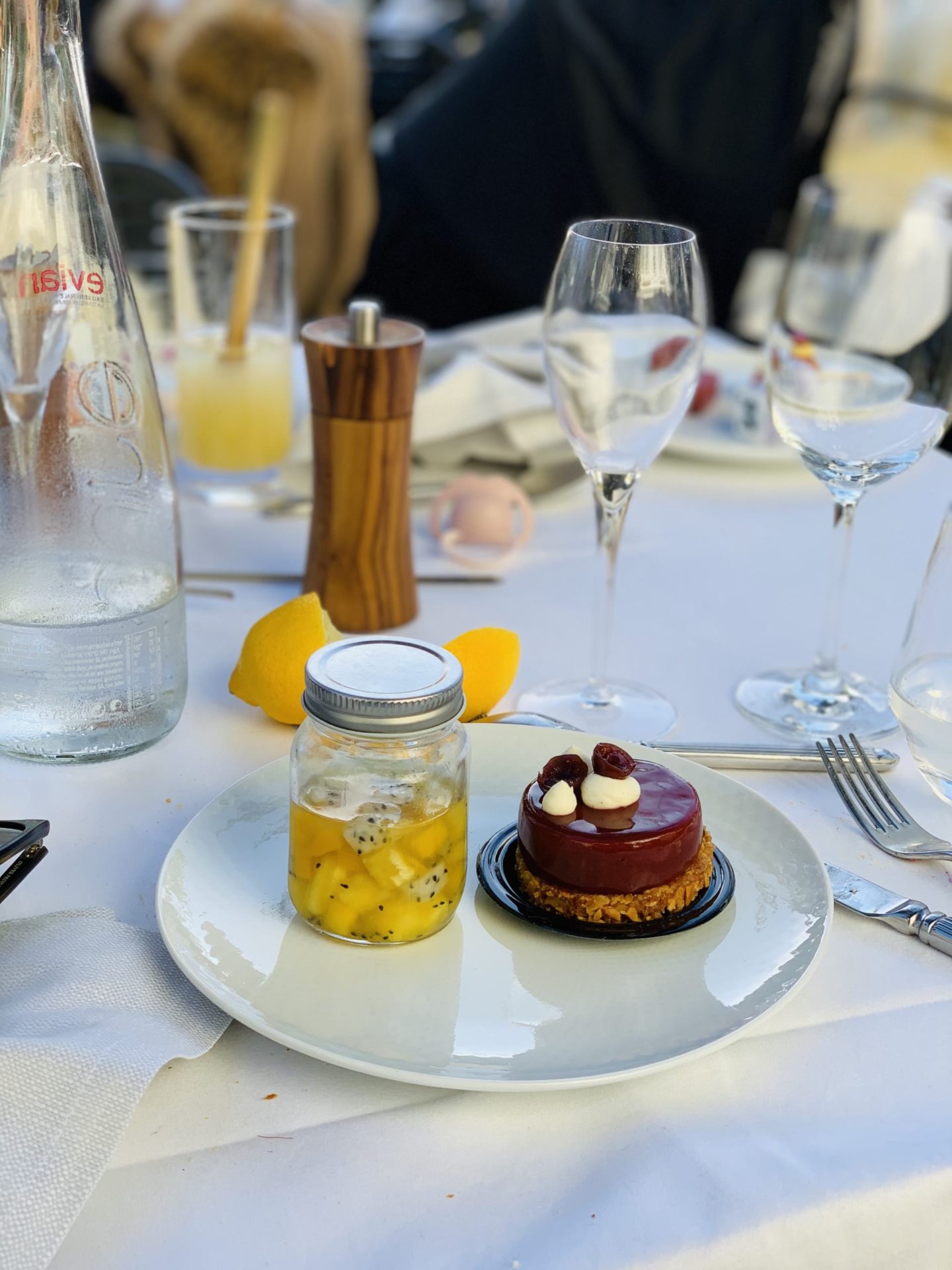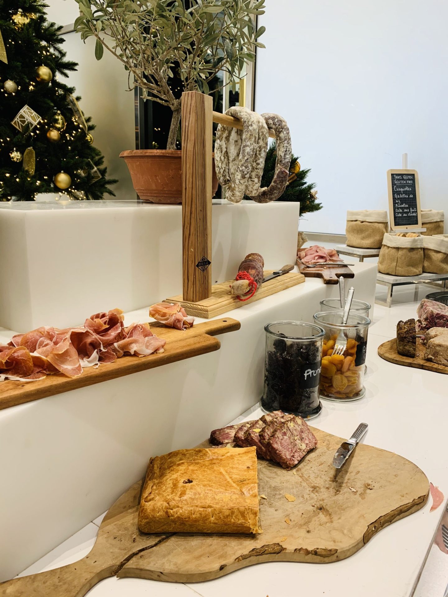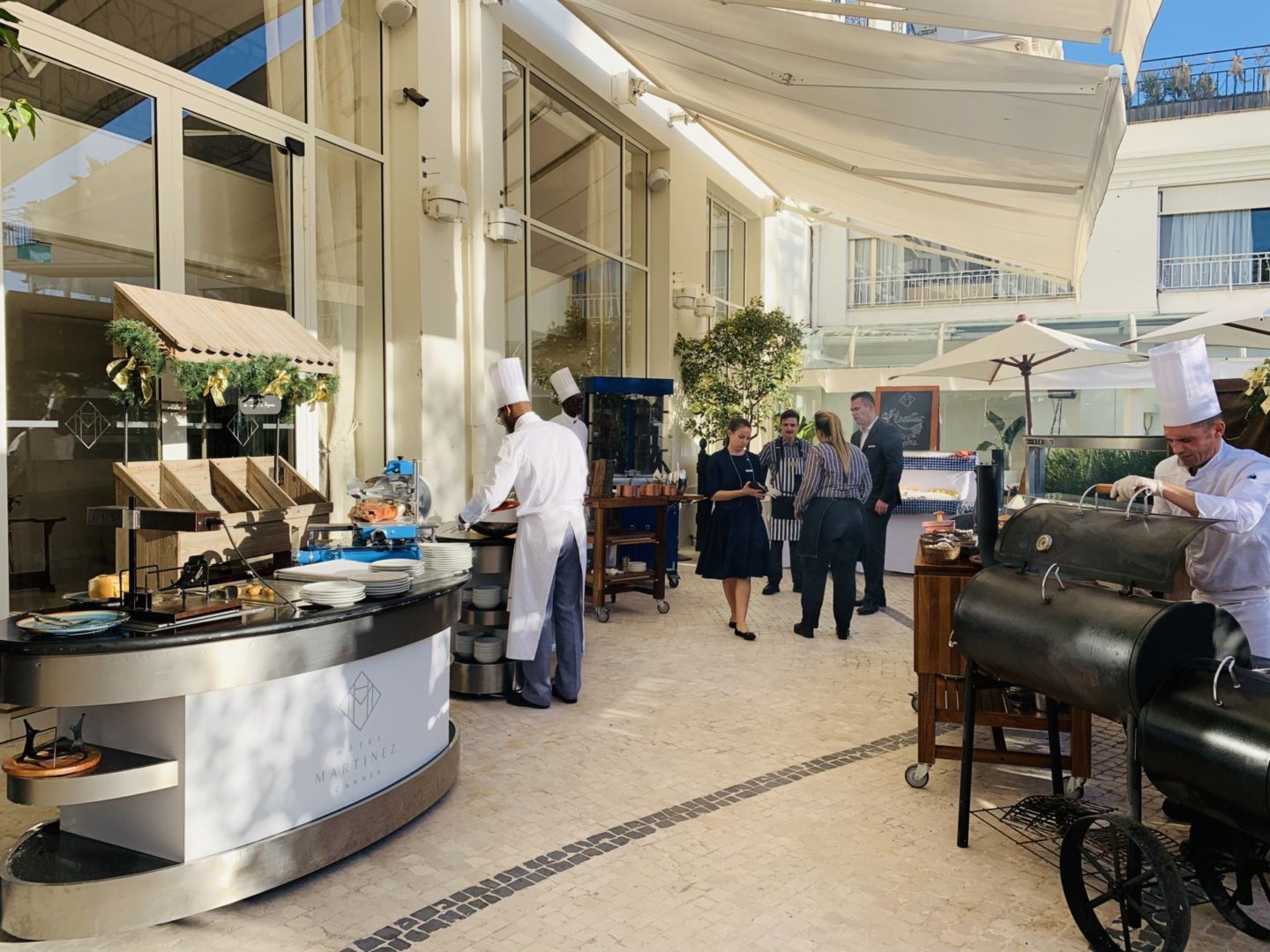 Cette année, l’hiver est vraiment clément pour le moment. On profite du soleil, des températures fraîches mais pas froides, et on continue de pouvoir manger en terrasse le midi. Tellement agréable la mi-saison et l’hiver sur la Côte d’Azur. Slow life, vitamine D, tout est bon pour le moral. Mi-décembre, avec Stéphane, Louise, et Jules, on est allé bruncher au Martinez à Cannes. Je suis régulièrement invitée à découvrir des établissements qui ont vu mon côté épicurien ! J’étais ravie car j’avais eu connaissance de ce brunch il y a quelques temps et il me tentait beaucoup pour son côté familial. Il se déroule habituellement sur la Plage du Martinez mais quand j’y suis allée, il avait été installé dans les jardins à cause des intempéries des jours précédents. Cela n’a rien enlevé au charme, d’autant plus que je ne connaissais pas cette jolie terrasse avec une fontaine et des arbres pour l’ombrager. Un vrai coup de coeur pour le lieu.