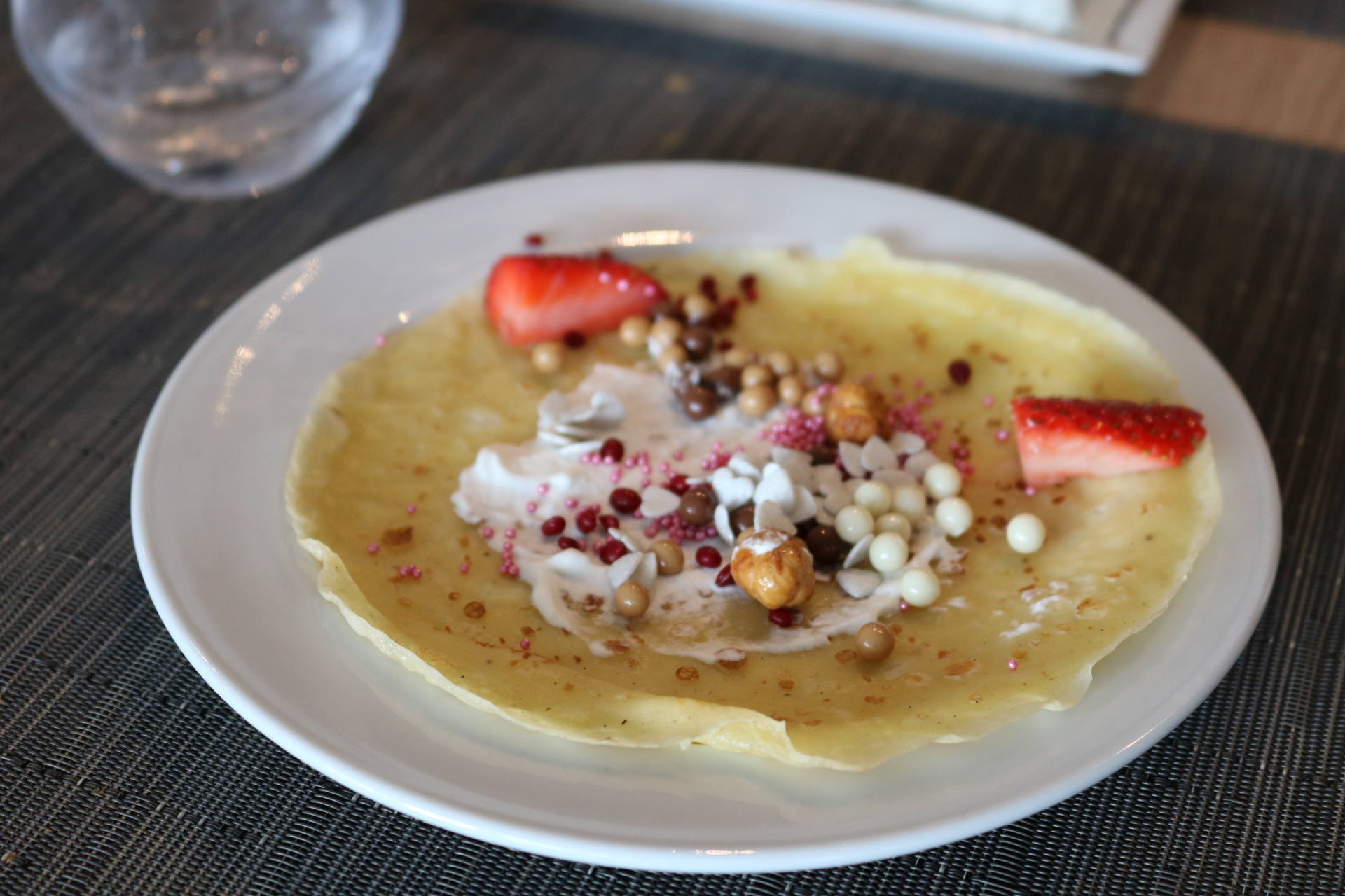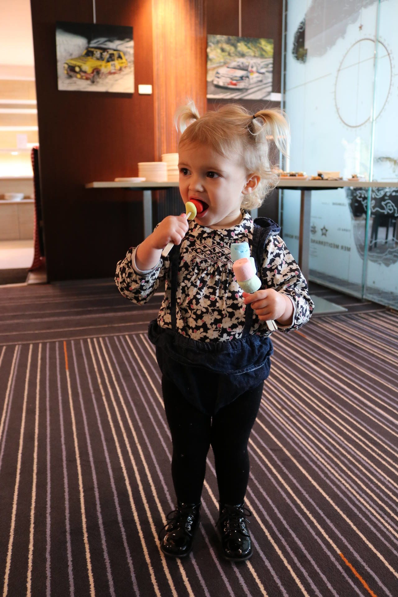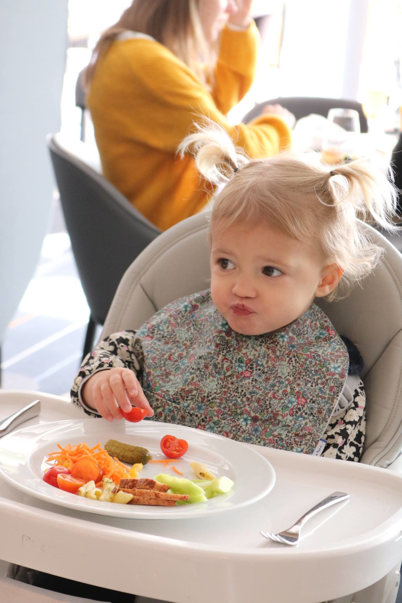 Je disais que c’est kids friendly. Dans ce genre d’établissements haut-de-gamme, ce n’est pas toujours le cas ! Souvent, on nous dit que ce n’est pas adapté ou que c’est un endroit discret ou autres. Mais là, ce n’est clairement pas le cas ! Les enfants sont accueillis avec une chaise haute si besoin, un carnet de coloriage et des crayons de couleur ! Il y a tout un coin avec plein de légo et de gros coussins. Et pas mal de choix pour les kids sur les buffets du brunch ! À 14h, tous les dimanches, il y a un cours de pâtisserie pour les enfants, pendant 1h. Le jour où on y était, c’était des crêpes ! Louise a bien joué le jeu, c’était trop mignon !