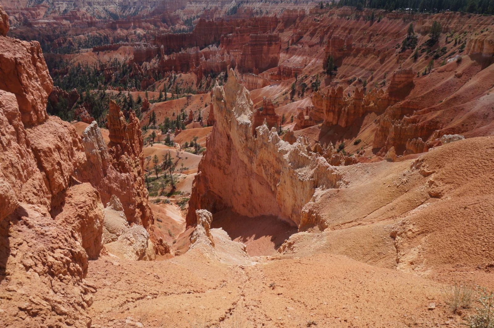 Je crois que Bryce Canyon fait partie des parcs nationaux que j’ai préférés. Pourtant, on a pas eu un temps 100% idéal, mais je trouve que ce parc a vraiment un charme particulier. Si les view points offrent déjà des vues magnifiques, le visiter de l’intérieur est encore plus impressionnant. On se rend vraiment compte de l’immensité et on se sent vraiment tout petit ! On a opté pour une des randonnées les plus pratiquées. Il s’agit plus exactement d’un mix de randonnées. On est partis de Sunrise Point pour voir un beau panorama. Puis on a attaqué par une belle descente dans les hoodoos via une portion du Wall Street Trail. On a retrouvé ensuite une section du Navajo Loop puis le Queen’s Garden Trail pour finir à Sunset Point. La randonnée dure environ 1h30 et tout est superbe ! J’ai passé mon temps à prendre des photos, d’autant plus que le soleil était bien présent donc les couleurs étaient très vives. Si vous faîtes cette randonnée dans l’après-midi comme nous, il faut la faire dans ce sens pour pouvoir faire des photos sans contre-jour.