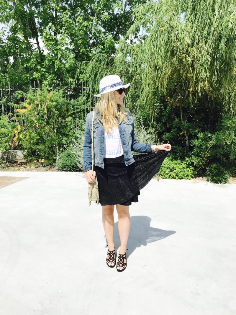 Oui oui, tout ça, c’est vraiment moi ! Mais finalement, que serait-on sans ces quelques défauts ! Pour l’occasion, je vous présente un total look La Halle ! Le beau temps est bien arrivé. Lundi, on a passé la journée en amoureux (avec Loulou !), j’en ai profité pour mettre une petite jupe patineuse estivale avec une matière canon, en maille comme de la dentelle. Je l’ai associée à mon fameux tee-shirt #cestvraimentmoi. D’ailleurs, quand je pars à l’aéroport, je vérifie toujours 10 fois que j’ai mon passeport ! Avec une petite veste en jean et des sandales à petits talons, j’étais prête pour passer une bonne journée ! D’ailleurs, je suis complètement fan de ces chaussures et je crois qu’elles vous avaient aussi tapé dans l’oeil sur un de mes posts instagram ! Je vous laisse avec les photos et les détails de ce look à petit prix ! Et la bonne nouvelle, c’est que j’ai un code promo pour vous ! Vous avez 20% de réduction avec le code MAUD20 sur tout le site hors promo, jusqu’au 15 juillet !
