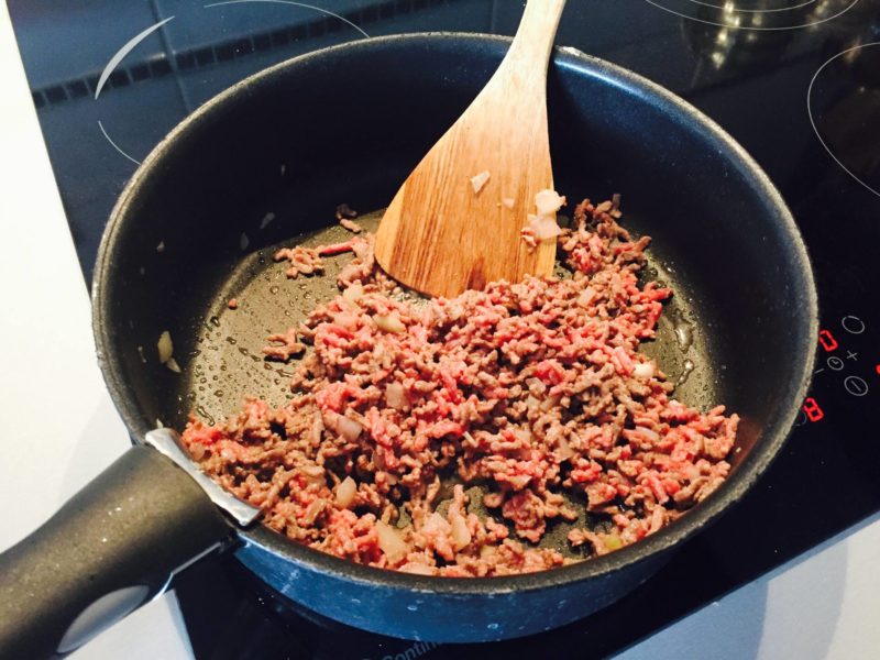 – Saisir les oignons émincés dans un peu d’huile d’olive chauffée à feu vif
