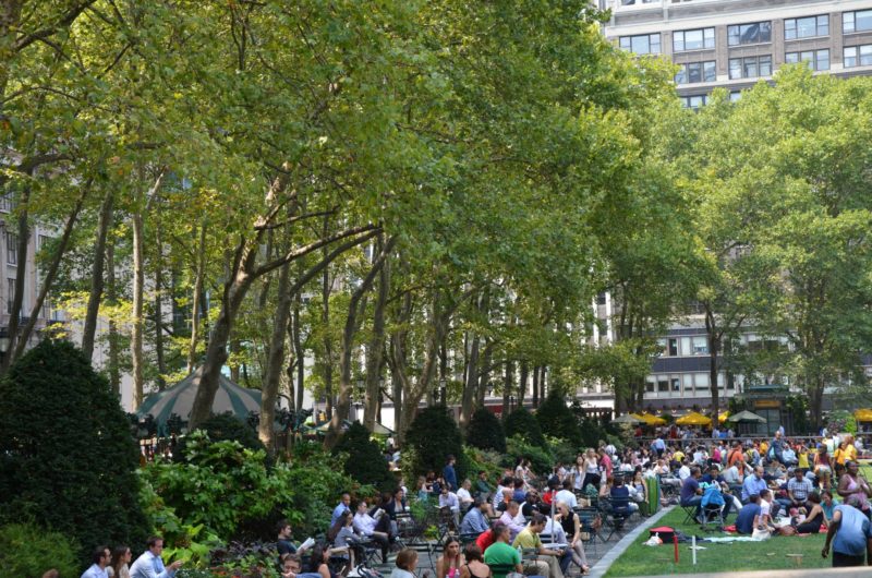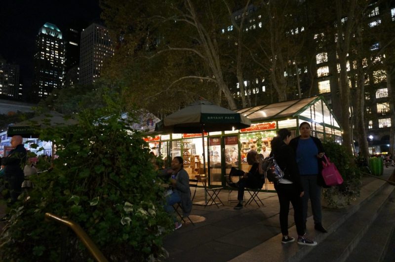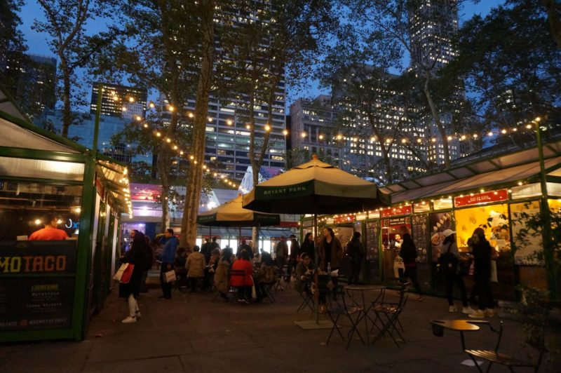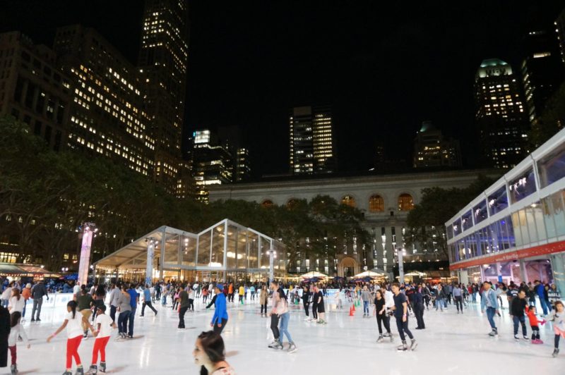 On remonte d’un cran et on est à Midtown West. C’est là où nous logions la première fois, assez pratique, que ce soit pour arriver de l’aéroport ou pour la proximité avec des lieux à faire. Globalement, dans ce quartier, il y a une concentration de tout ce qu’on connait de NYC avant d’y venir et de ce qu’on souhaite y voir. Tout se passe entre la 5e et la 8e avenue, entre la 34e et la 52e rue ! Evidemment, Times Square est le centre de l’attention. Une place, assez grande quand même, des panneaux publicitaires gigantesques et extrêmement lumineux qui donnent l’impression la nuit d’être en début de soirée en termes de luminosité ! Les boutiques aux alentours ne sont pas folles mais il y a quand même la boutique M&M’s qui est sympa car on peut acheter les célèbres chocolats au poids, et toutes les sortes de M&M’s y sont. J’adore les crispy, les peanut butter et ceux au caramel ! A proximité, le Musée Tussauds est sympa mais notre coin préféré, c’est Bryant Park et la New York Public Library. Je suis folle de ce Park. L’été, j’en avais gardé un souvenir de parc bien vert où les personnes viennent luncher et lire un bouquin à l’ombre. En arrivant cette année, tout autre décor ! Les petits shops de Noël et une immense patinoire étaient là ! J’ai voulu en faire puis je n’ai pas pu. Je vais devoir y retourner, je vous le dis ! En remontant la 6ème avenue, vous arriverez dans le quartier du Rockfeller Center et c’est pour moi ici que vous avez la plus belle vue de Manhattan puis qu’à l’observatoire Top of the Rock, vous avez d’un côté Central Park, de l’autre tout le sud de Manhattan avec l’Empire State Building et le One World Trade Center. Sur la gauche, on voit le Chrysler Building que je trouve le plus beau, surtout la nuit ! C’est en arrivant là-haut qu’on prend le pouls de la ville et qu’on se rend compte de l’immensité de celle-ci, et surtout de sa densité ! En redescendant, faîtes une pause sur la Rockefeller Plaza avec ses drapeaux. L’été, vous pourrez boire un verre en contrebas. L’hiver, il y a une immense patinoire, puis le sapin de Noël ensuite. Si vous avez le budget, le temps et l’envie, allez faire un spectacle au Radio City Music Hall. En 2012, il y avait un spectacle du Cirque du Soleil et c’était génial ! La salle est incroyable avec un magnifique rideau. C’est une belle expérience ! Vous pouvez faire ce quartier en plusieurs fois, il est assez grand !