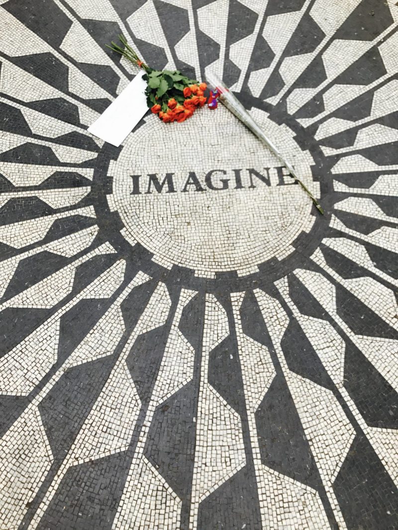 On passe un cap et on arrive à hauteur de Central Park ! On ne le présente pas, c’est le poumon vert de la ville. C’est immense à l’échelle de Manhattan et c’est incroyable que ce parc ait pu perdurer quand on voit le prix de l’immobilier dans la zone. On l’a fait de deux façons, pour chiller en 2012 et pour le marathon en 2017. C’est un lieu vraiment beau, grand, et on ne dirait pas, mais très vallonné ! Que ce soit pour manger un cookie, déjeuner votre lunch box ou faire un tour de vélo, allez-y ! Nous, c’est ce qu’on a fait, le tour du parc en vélo. On s’est éclaté, c’était génial ! Il y a d’ailleurs un lac au milieu qu’on peut parcourir en barque. Si vous vous baladez du côté du Sheep Meadow, vous aurez une vue sur les buildings qui donne une très belle skyline face à vous. Top pour un pique-nique. De l’autre côté, dans la partie ouest du parc se trouve Strawberry Fields, un petit mémorial en hommage à John Lennon, du nom de la chanson d’un album des Beatles. C’est une plaque ronde en mosaïques avec l’inscription Imagine au centre. Un mémorial pour la paix.