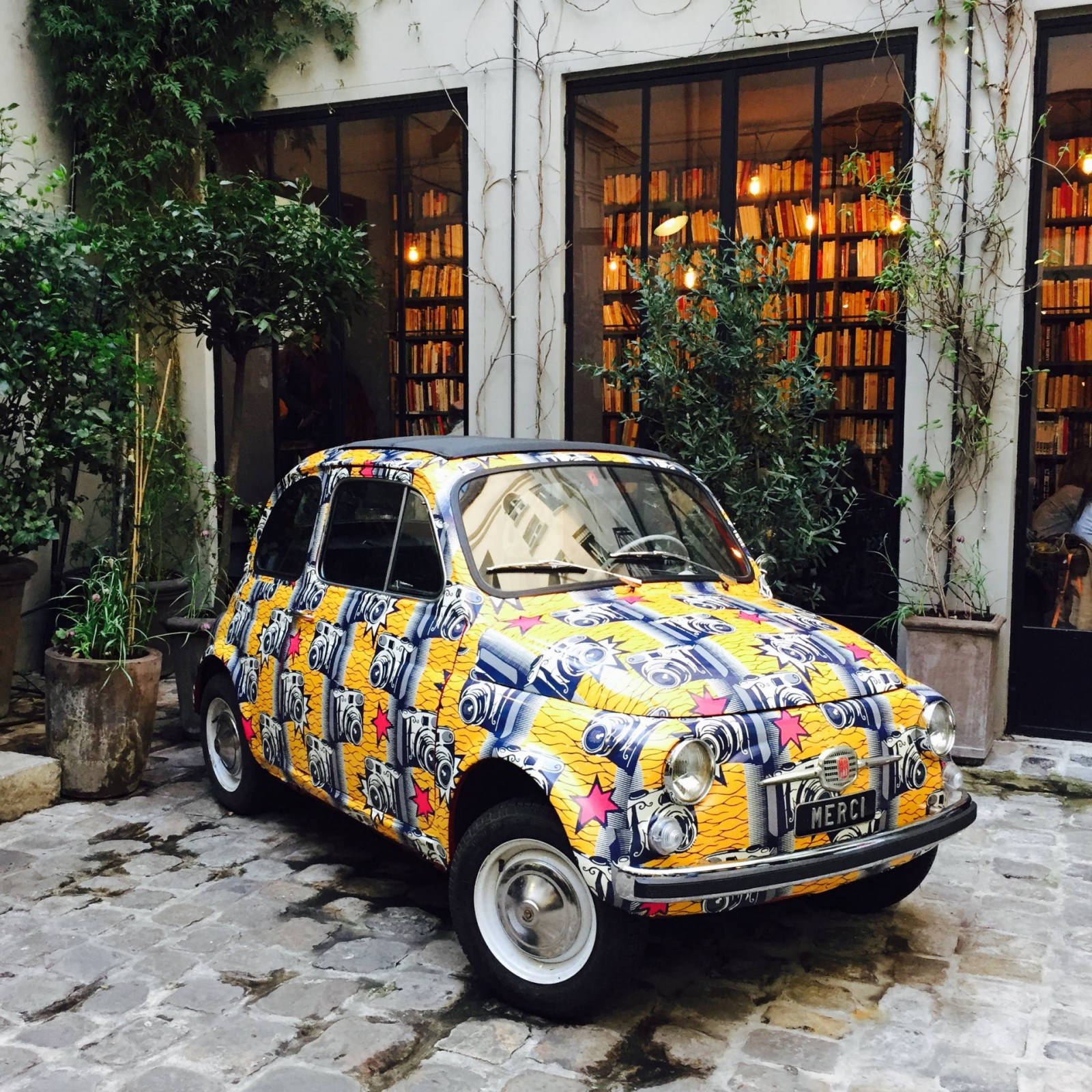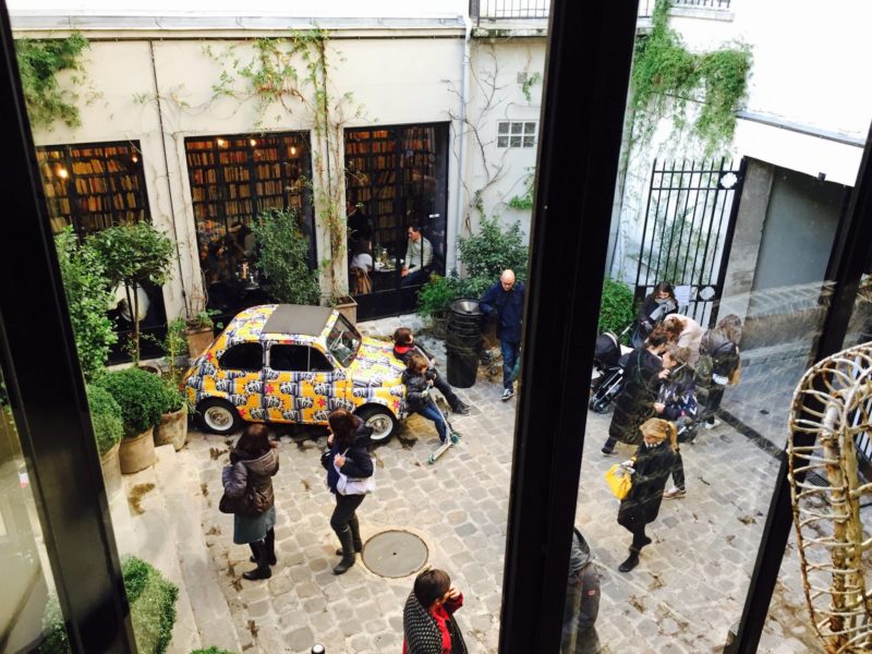 En premier, on est allé du côté du Boulevard Beaumarchais pour commencer par Merci. Tout commence avec une petite allée puis une cour intérieure où se trouve la fameuse Fiat 500 qui est régulièrement re-designée. L’entrée est déjà très belle avec une grande porte et d’immenses baies vitrées qui donnent envie de vite découvrir cet univers. On a commencé par la partie vêtements et beauté en bas mais on ne s’est pas trop éternisé. On est tout de suite passé à l’étage pour voir plutôt la partie décoration qui est vraiment canon. Il y a de tout : du mobilier, de la vaisselle, des luminaires. Le point commun est que tout est original et singulier. C’est ce qu’on était venu chercher et on a pas été déçu. Je ne pensais pas qu’on trouverait aussi un espace papeterie, livres, high-tech et c’est finalement un des espaces qu’on a préféré. J’ai d’ailleurs acheter le fameux guide de Paris écrit par Inès De Le Fressange. Je l’avais déjà vu aux Galeries Lafayette de Nice et il avait l’air pas mal. Mon chéri a craqué côté high-tech avec un câble pour iPhone super beau et très solide. C’est une adresse très sympa à faire, j’y retournerai la prochaine fois. Attention, ce n’est pas ouvert le dimanche donc prévoyez plutôt d’y aller le samedi si vous êtes de passage pour un weekend !
