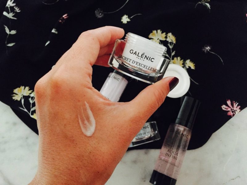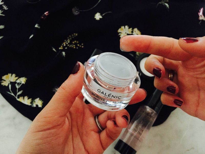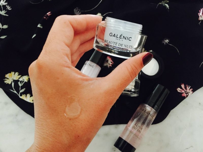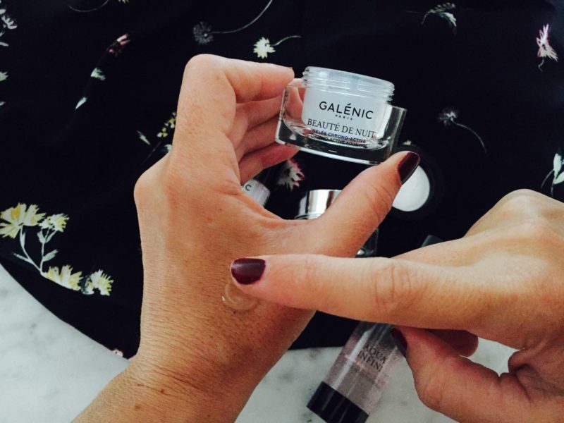 A peine arrivée au meeting, j’ai découvert tous les produits qui étaient sur table. Première impression, les packagings sont très beaux, plutôt modernes et j’ai déjà envie de tout ouvrir. Un produit me fait déjà de l’oeil avec une texture qui me plait beaucoup : leur innovation Beauté de Nuit, une gelée chrono-active. Mais comme je suis plutôt docile (ou pas …), j’ai attendu un peu qu’on nous en parle davantage. En attendant, j’ai pu découvrir qui est Galénic. Déjà, c’est une marque historique créée par Pierre Fabre, ce pharmacien visionnaire qui a inventé la dermo-cosmétique et qui a imaginé une marque alliant le sérieux de l’univers pharmaceutique au raffinement de l’univers de la beauté. Rien que là, il avait déjà tout compris car cela correspond toujours à ce qu’on attend de nos soins ! Aujourd’hui encore, tous les produits sont élaborés par des Maîtres-Formulateurs qui cherchent l’excellence pour chacune de leurs créations. Evidemment, j’ai eu envie de voir ce que ça donnait sur les produits. Au-delà de l’efficacité, je suis assez exigeante sur les textures et les odeurs et j’avais hâte de les tester.