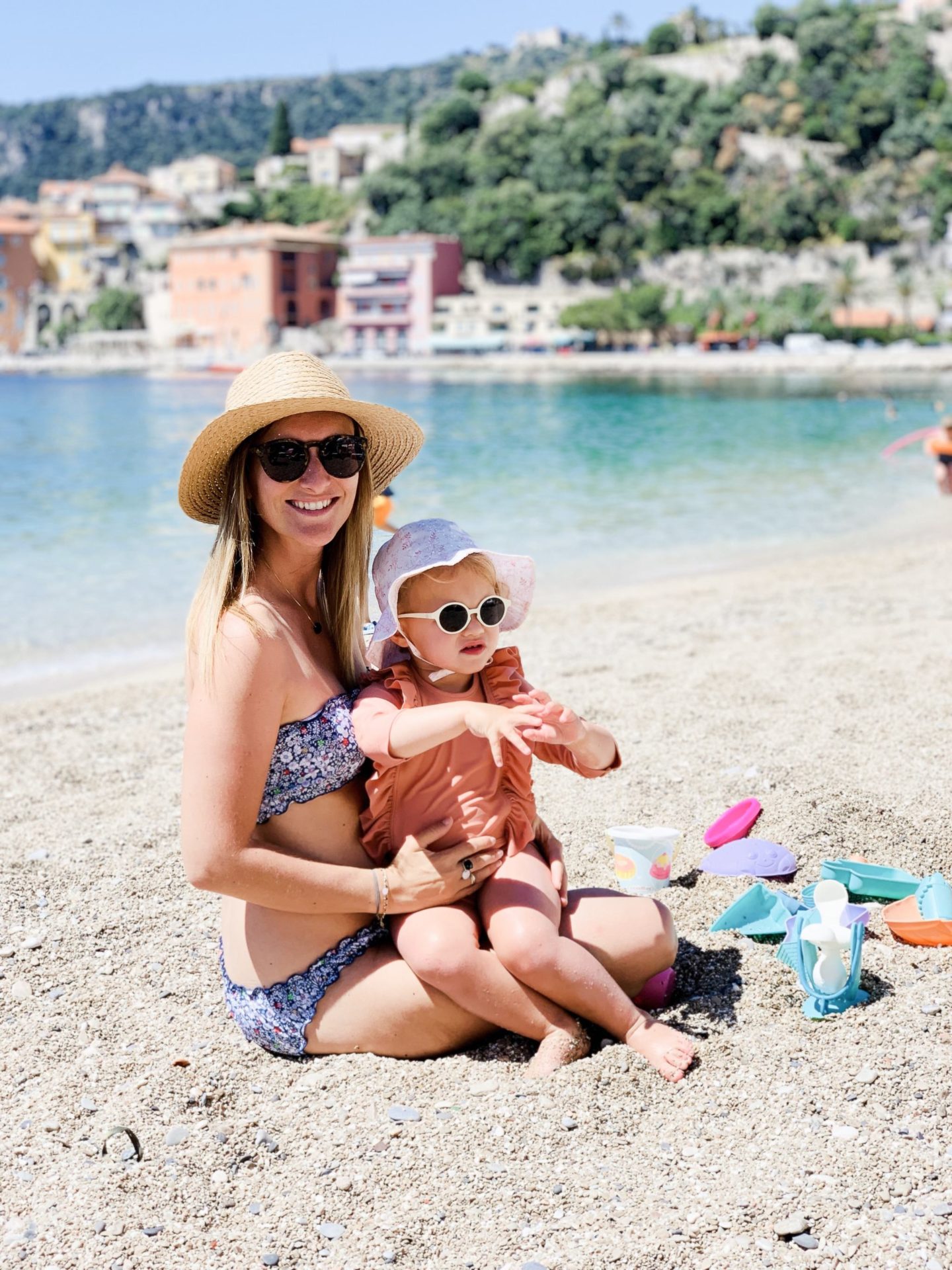 Pour les enfants, il n’y a pas une offre aussi large, mais il y a quand même du choix, et notamment en parapharmacie ! De mon côté, j’avais opté pour Avène au tout départ. La première année, on s’est fait prendre par le temps. Il a fait très beau et très chaud tout début mai, donc un jour, je suis entrée en point de vente et j’en ai pris une que la pharmacienne m’a conseillée. Elle marchait très bien mais j’ai eu envie d’une composition plus clean par la suite, alors j’ai opté pour Alphanova Sun. Très blanche, difficile à étaler, mais clean en composition. C’est juste pour le visage et les jambes car pour la plage, Louise porte un maillot anti-un avec des manches pour les heures fortes.
