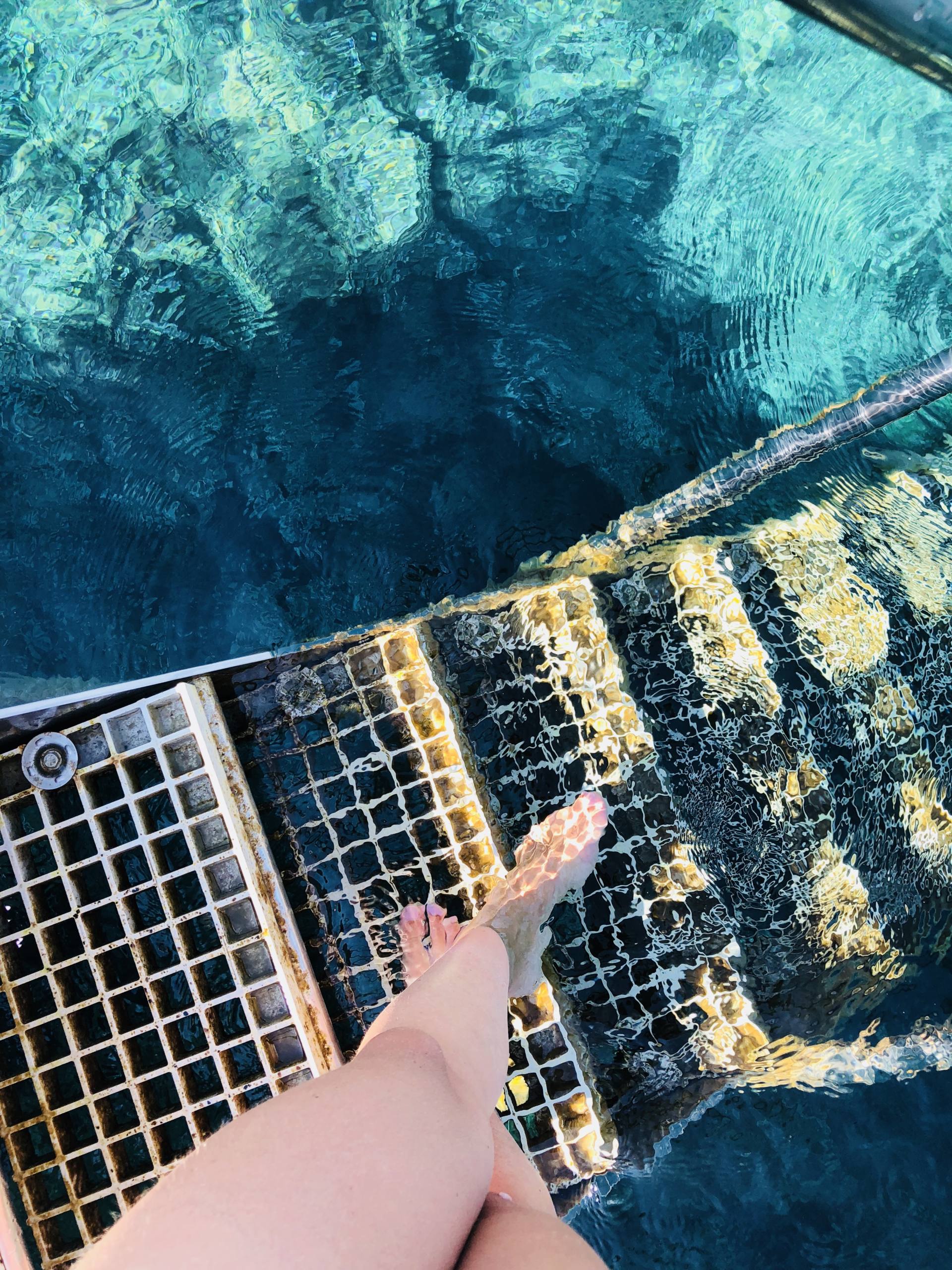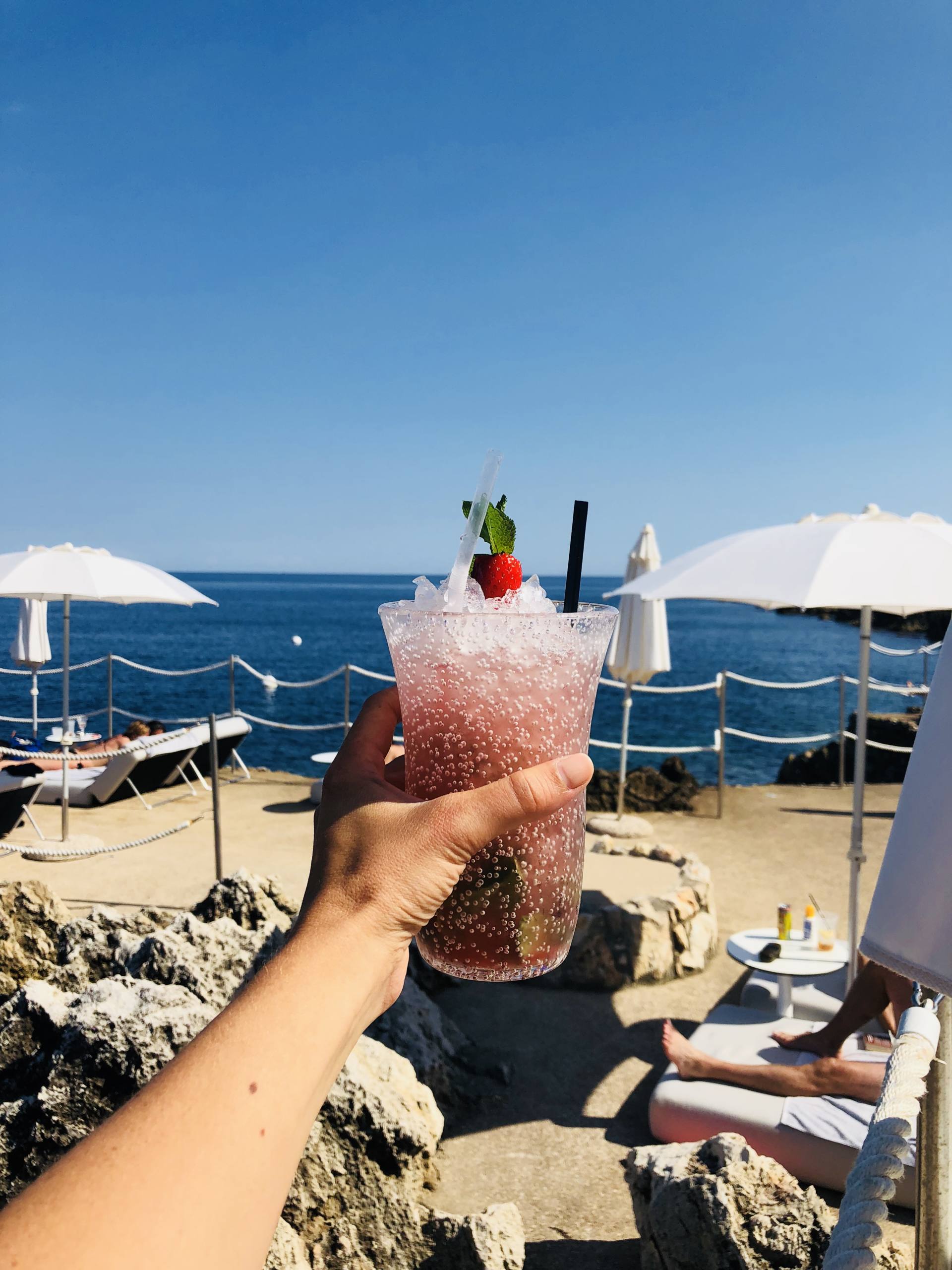 Évidemment, on a profité de la mer pour s’y baigner ! Quel bonheur. L’eau est encore un peu fraîche mais ça fait un bien fou. J’ai rarement vu une eau si claire par ici. C’était un immense plaisir ! Il n’y a pas de sable du coup, c’est appréciable par moment ! On en a profité pour nager un peu (avec une frite pour flotter, pas trop d’effort !) avant de s’écrouler pour 45 minutes de sieste qui font un bien fou !!! On a fini la journée avec un virgin mojito fraise et quelques fruits. Cette assiette de fruits était vraiment trop mignonne. Tout était finement coupé, j’adore !