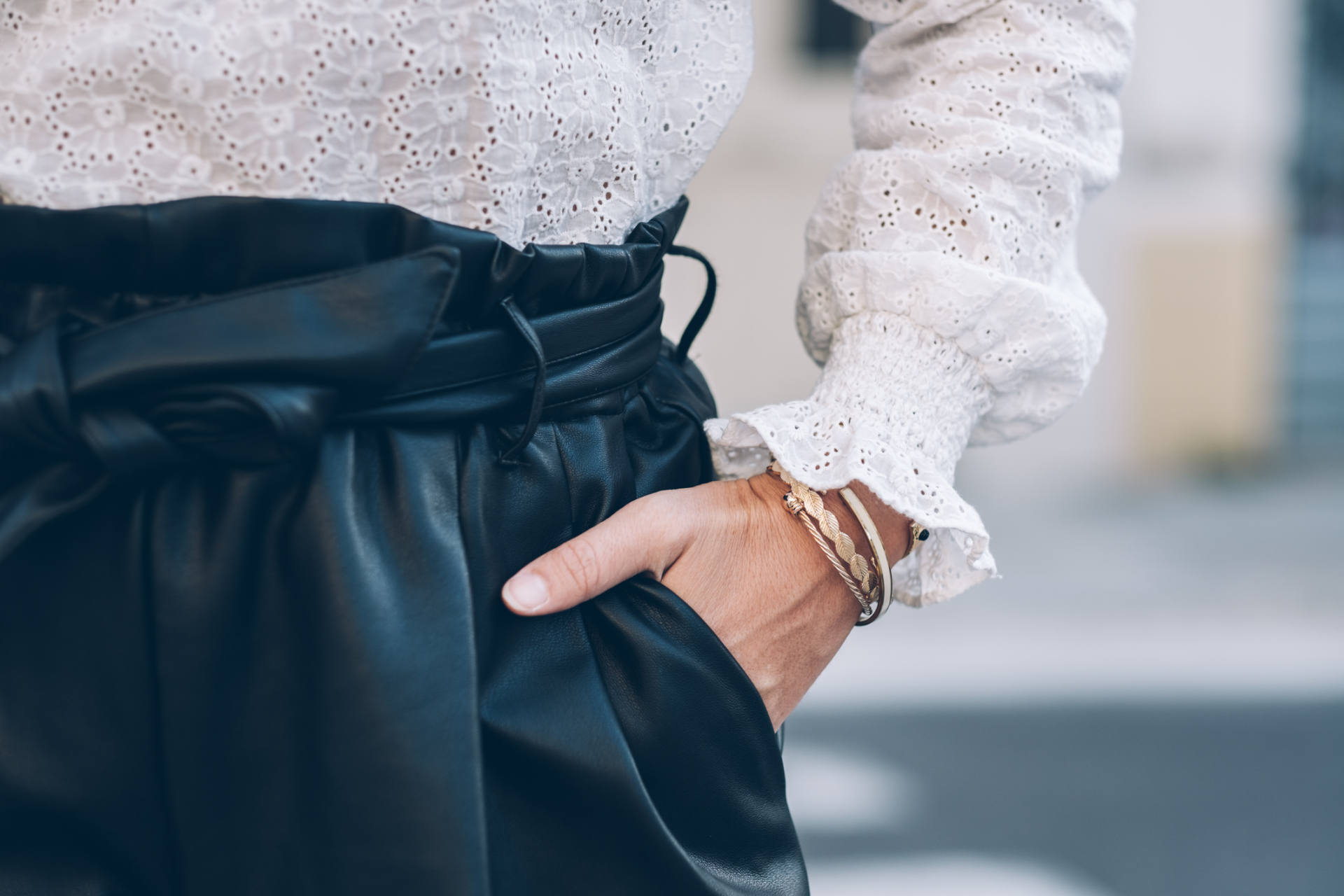J’adore l’association d’un short en simili avec une blouse dentelle ! Super look, bonne journée Maud.