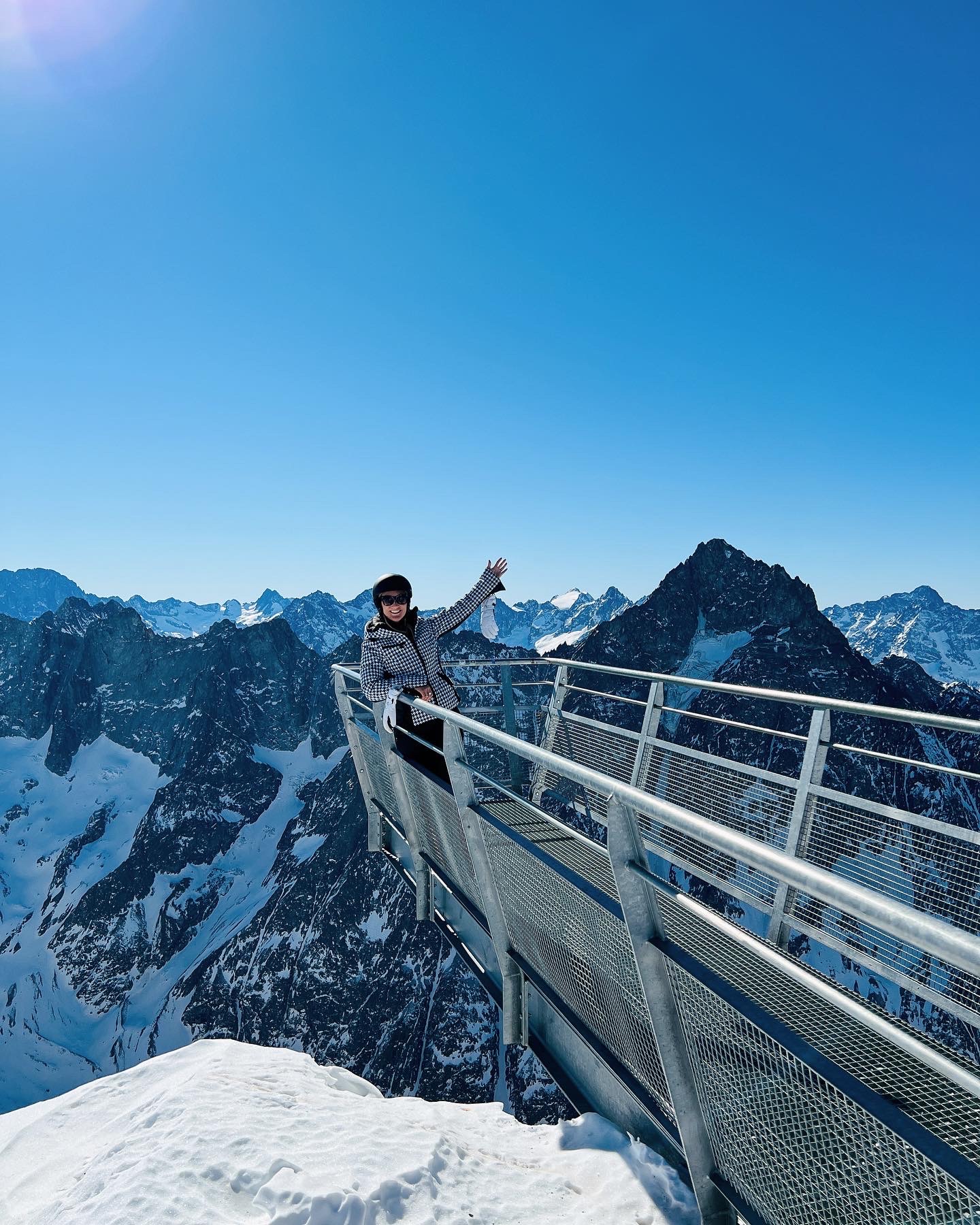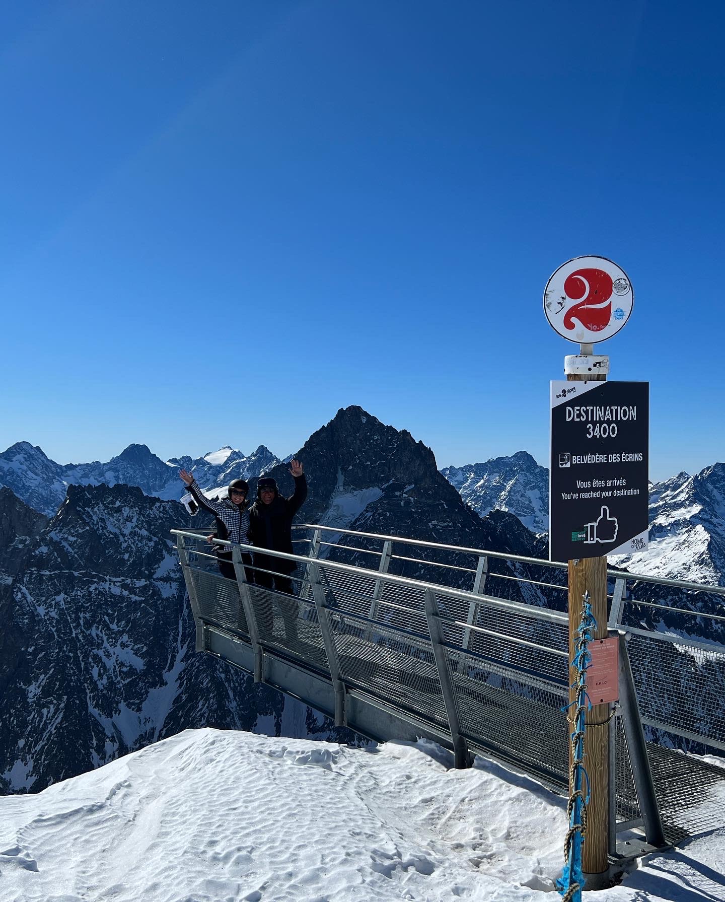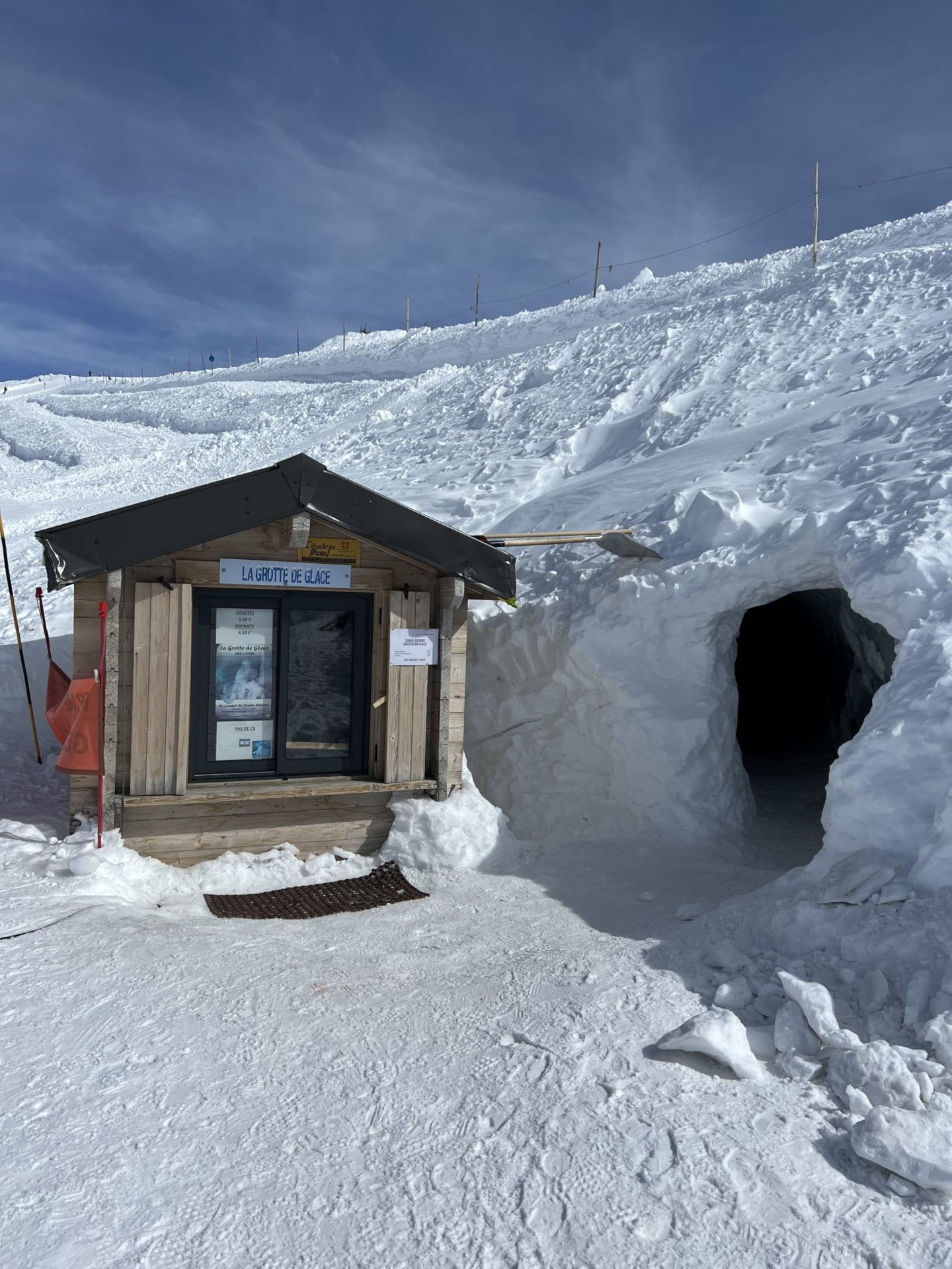 Les panoramas sont chaque fois superbes. D’un côté, la Meije et le Mont-Blanc. De l’autre, le Parc National des Écrins avec une belle vue depuis le Belvédère des Écrins, une plateforme métallique qui s’avance au-dessus du vide ! J’ai aussi emmené Louise à 3200m pour faire la Grotte de Glace. Il faut compter 15-20 minutes pour la faire et elle a adoré les sculptures, la découverte de la grotte et il y a plein d’explications pour comprendre comment c’est fait !