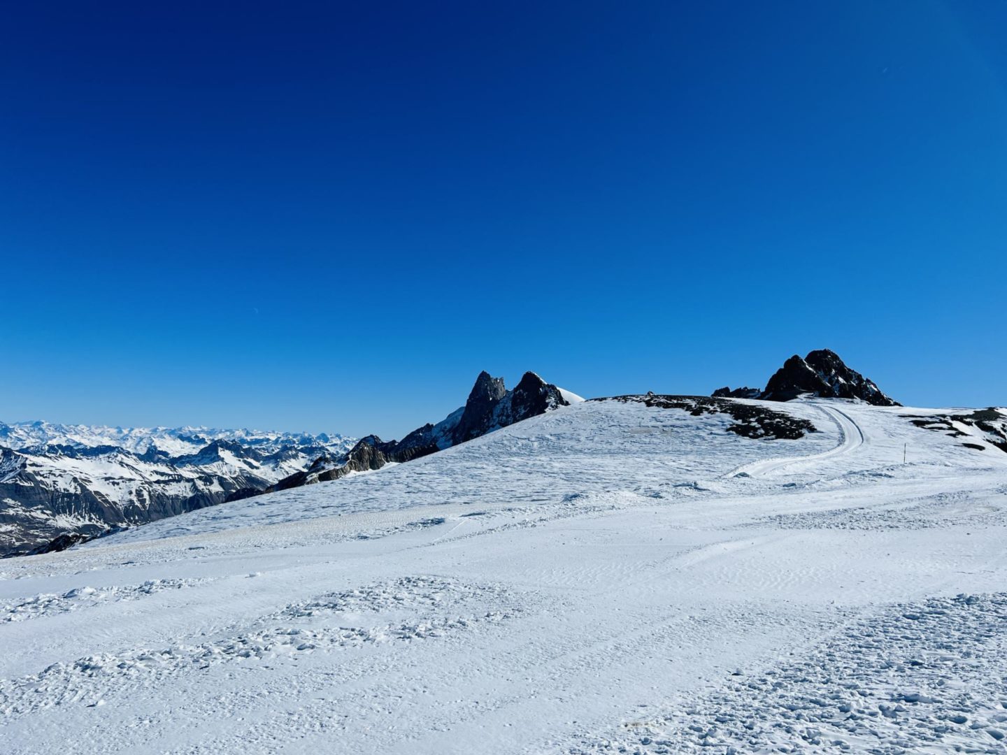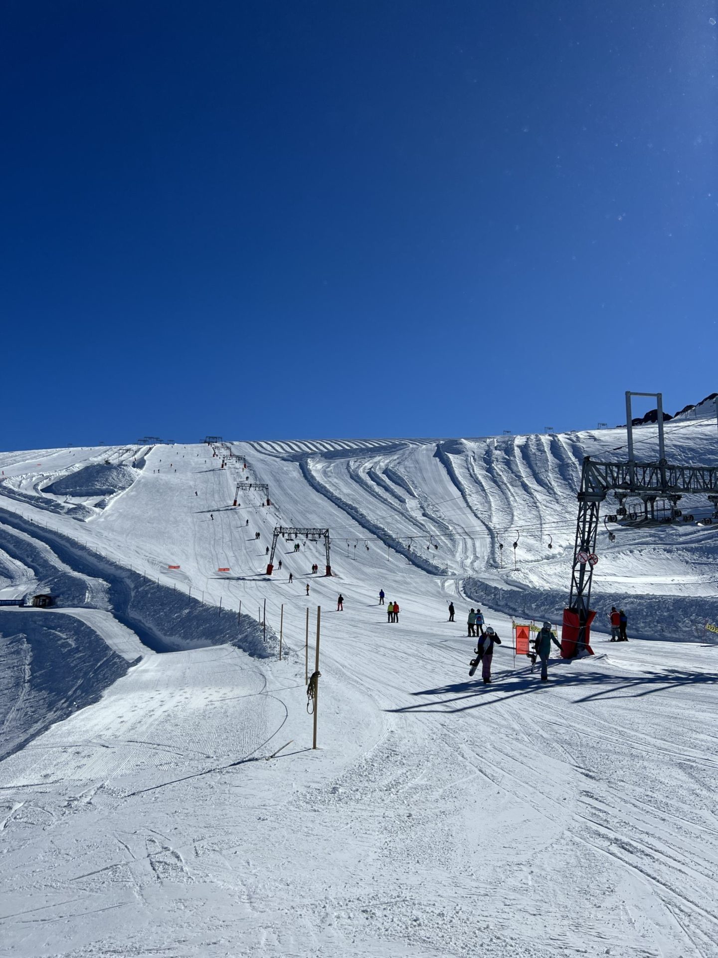 J’aime beaucoup le côté simple et sportif dans l’état d’esprit. C’est une station pour les skieurs qui aiment skier et qui viennent pour ça ! Déjà, le domaine est très beau et vaste. Il est aussi parfaitement ensoleillé du matin au soir, ce qui est idéal ! Il est accessible à tout le monde car jusqu’à 3200m, on retrouve des pistes bleues. Cela permet donc de profiter de l’ensemble du domaine, même avec des enfants. On a eu la bonne surprise de découvrir un nouveau secteur avec de nouvelles pistes grâce au télécabine Pierre Grosse ! Les quelques pistes du secteur sont topissimes ! Tout comme celles du Glacier et du secteur Fée, nos favorites ! Je vous recommande vivement de monter jusqu’à 3200m, puis 3400m avec le double téléski, et enfin 3600m avec le dernier téléski !