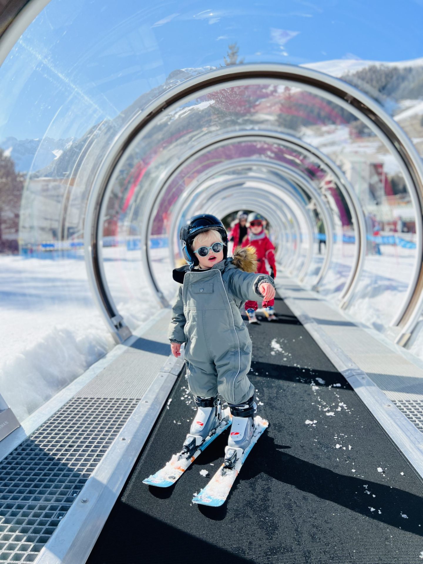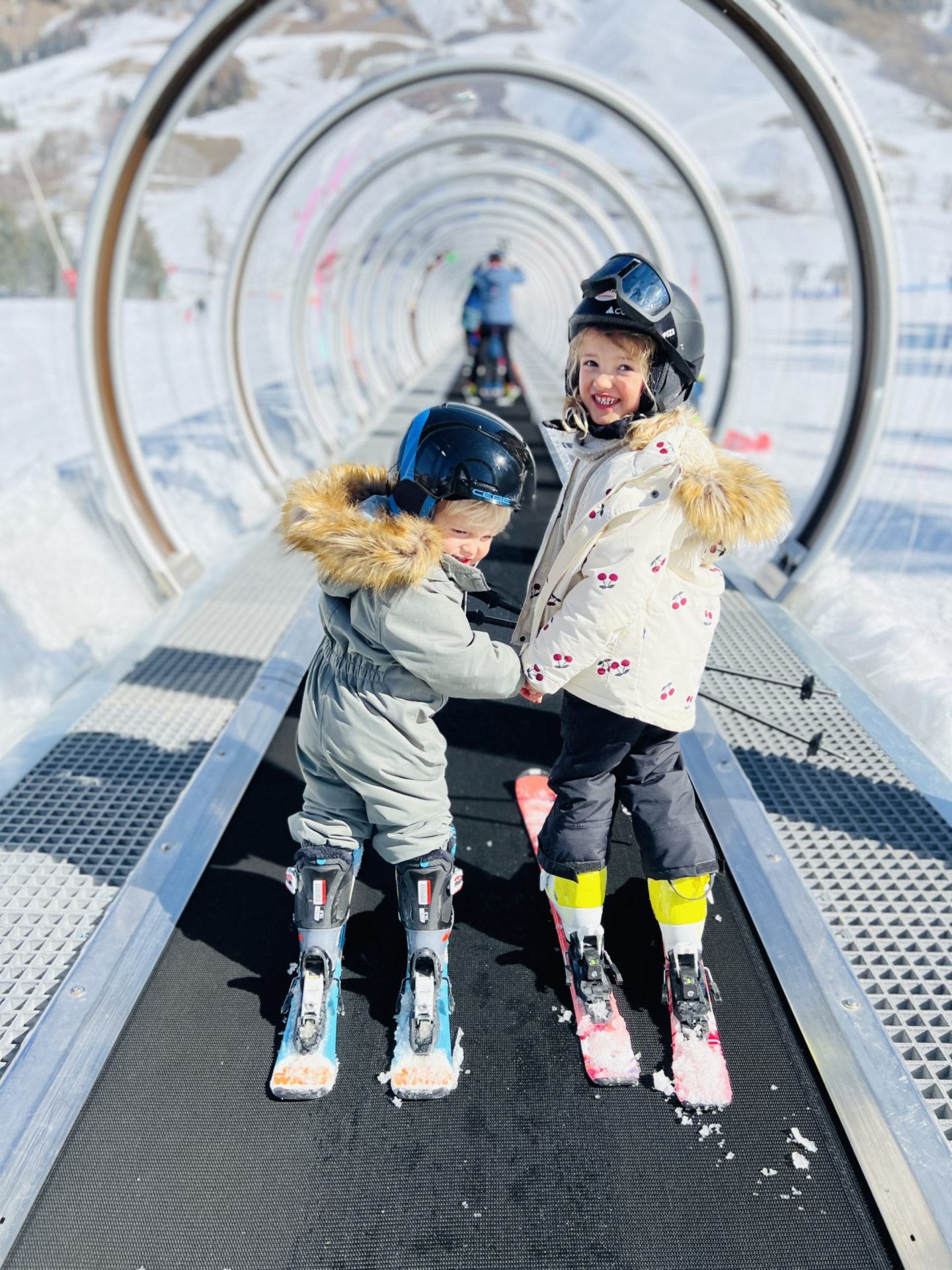 Sur le domaine, à deux reprises, il y a des espaces dédiés aux débutants, ce que je trouve top. On sait quand on arrive sur des pistes où il y a des personnes qui ne maîtrisent pas encore la discipline. Il y a aussi deux tapis roulants sous cloche, ce qui es top pour les débutants et les tous-petits qui ne prennent pas encore le téléski ou le fil neige.