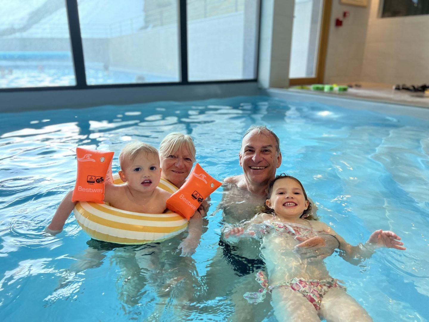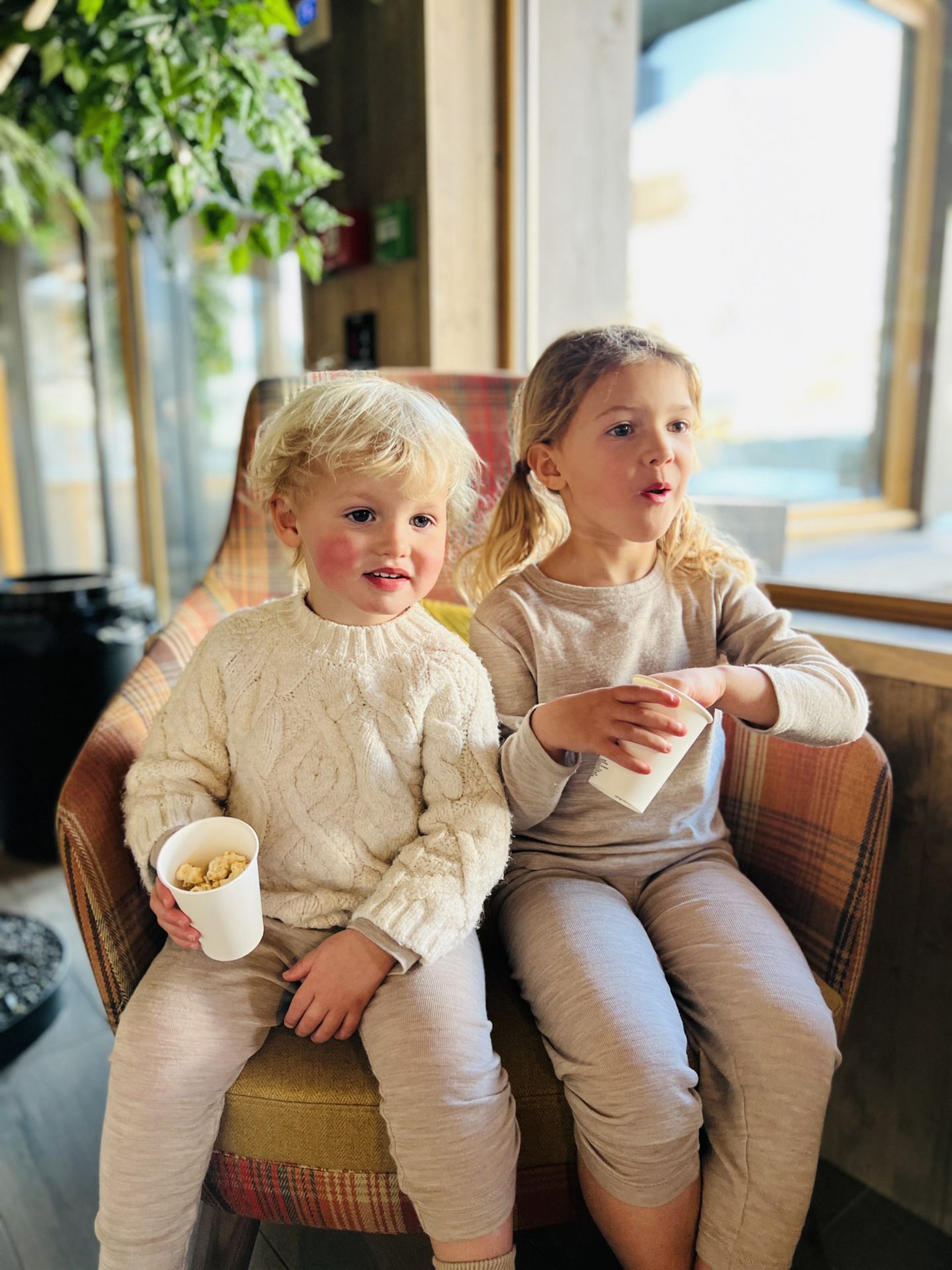 La décoration était sympa, c’était très cosy, parfaitement insonorisé. Franchement, on a rarement été aussi contents d’un logement au ski. C’est aussi une des premières fois qu’on partait en club et il y a de sérieux avantages par rapport à une location classique. En arrivant, les lits sont faits, le linge de maison est à disposition, le ménage est fait en fin de séjour. Rien que ça, c’est déjà top ! J’avais toujours eu une image des clubs un peu ringarde. Mais alors clairement éronnée ! Non seulement le logement était idéal, mais le reste de la résidence aussi : une piscine intérieure/extérieure bien chauffée avec des transats à disposition, un hammam, un sauna, un spa Cinq Mondes, une salle bien-être, un cours de streching after-ski en collaboration avec Lucile Woodward, des activités autour de la danse, et un goûter quotidien après le ski dans le hall. Pop-corn, brownies, crêpes, les enfants ont adoré chaque jour ce petit rituel et c’était très convivial autour de la cheminée dans le hall qui a tout d’un beau hall d’hôtel.