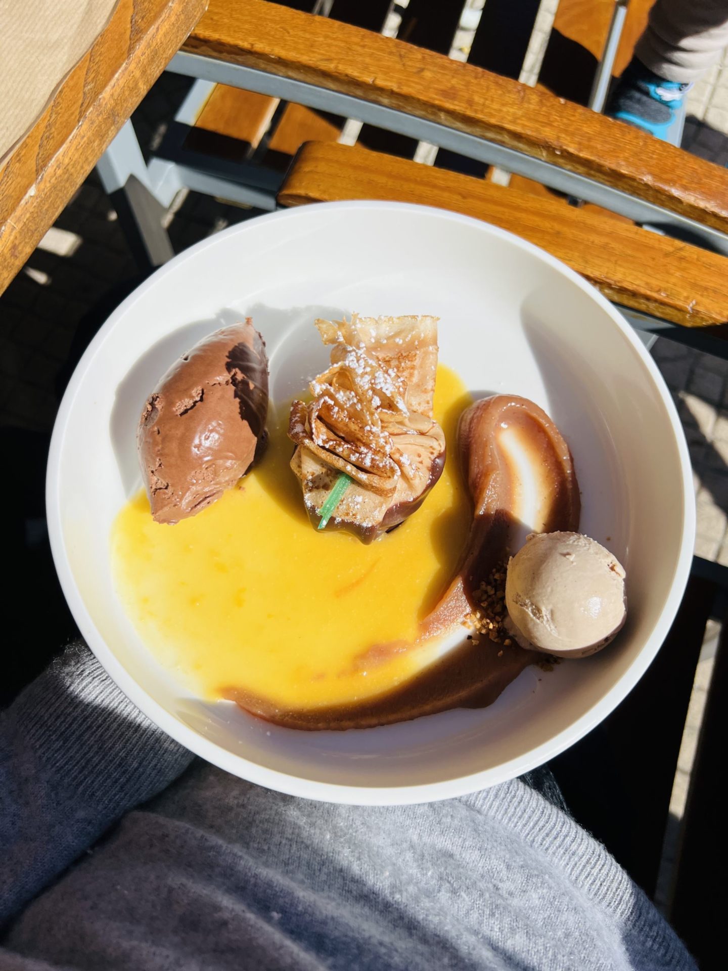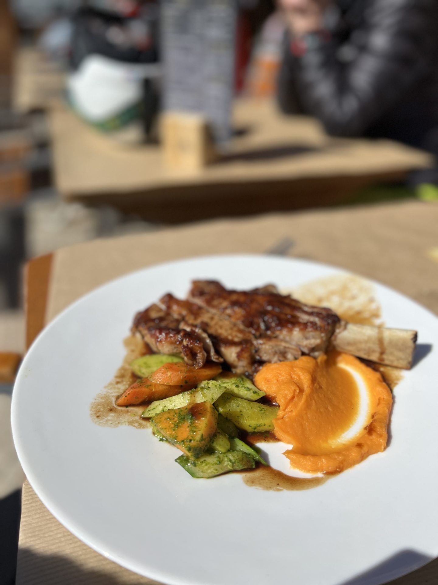 - Les mélèzes : un restaurant au bord de la piste où il y a le tunnel pour les tous-petits. Nous y sommes allés 2 fois pour moi, 3 pour mes parents. Chaque fois un régal, que ce soit la carte ou les plats du jour. Dos de cabillaud, côte de veau, couscous, andouillette, menu enfants, tout a été très bon, avec de jolis dressages, et servi chaud. Côté budget, environ 17€ pour les salades, 22/25€ pour les plats, 9€ pour les très beaux desserts !