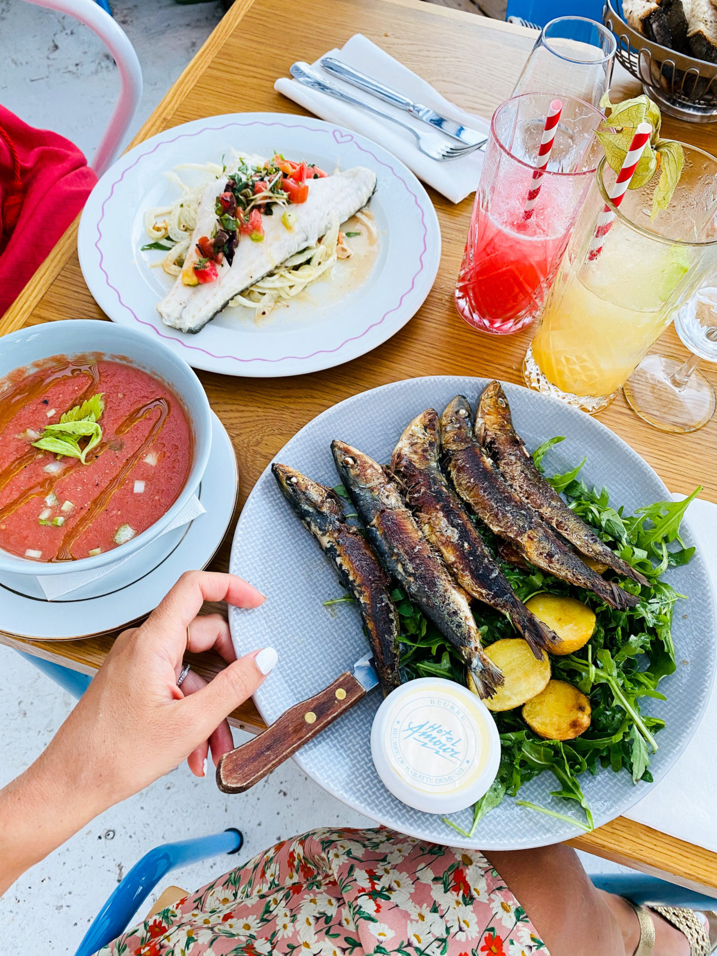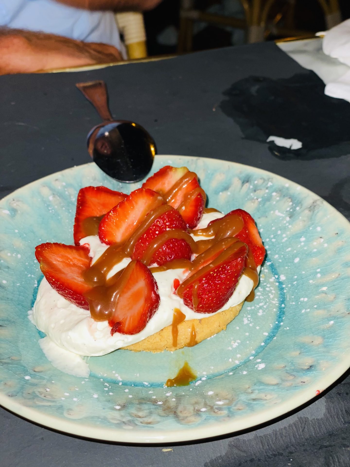 La Plage Joseph, on y est souvent allés pour la journée. Plage, matelas, sable fin, vue sur le Cap d’Antibes. C’est vraiment un endroit sympa. Alors récemment, pour notre anniversaire de mariage, on a décidé d’y aller le soir. Trop bonne surprise. Les couleurs sont superbes, c’est calme, on a eu une table les pieds dans le sable devant la mer, les lumières tamisées, le bonheur ! On a savouré ce restaurant sans les kids. On a pris des nems en entrée. Servis avec de la salade verte, de la menthe et des carottes râpées, par 6, ils sont hyper bons. C’est une entrée très copieuse donc je vous conseille de la partager. Les cocktails sont toujours bien faits. Pour le plat, j’ai opté pour du poisson, comme souvent, et c’était très bon ! Stéphane a pris un de ses grands classiques, une escalope milanaise, et il a bien aimé aussi, tout comme son brownie aux framboises en dessert ! Le lieu se prête vraiment à un dîner romantique si besoin ! Pour une entrée, deux plats, deux desserts, un cocktail et une bière, compter 120€.