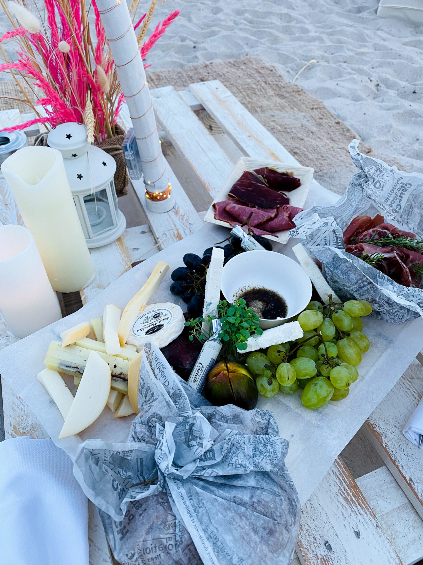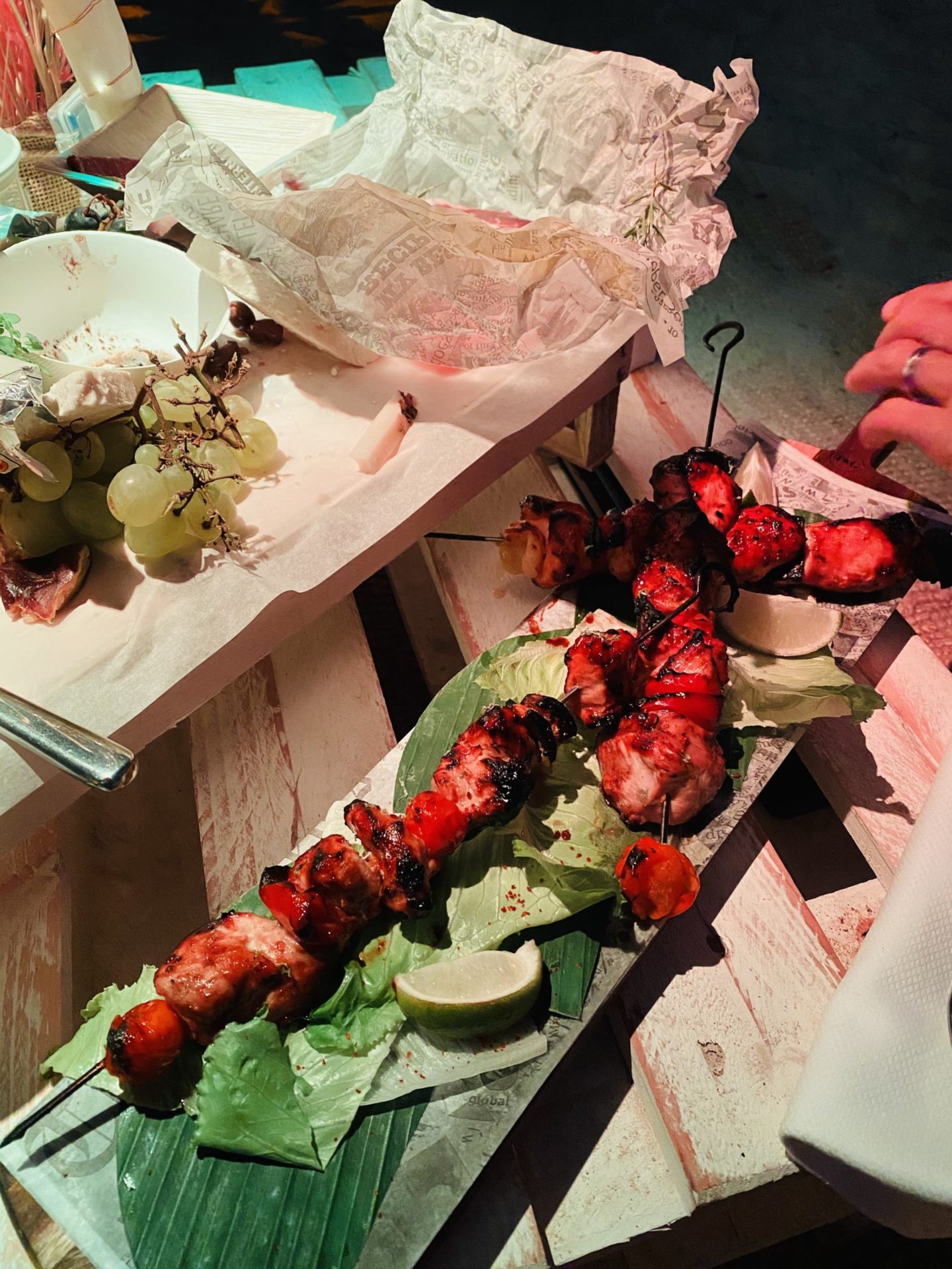 Nouveau spot cannois ! Depuis que les plages ont été refaites, que de belles découvertes ! Cette année, le meilleur spot apéro chic, c’est le Ohlala, sur la plage du Martinez ! Véritable écrin mi bohême, mi chic, ambiance tamisée et décoration colorée, j’aime tout ! C’est LE spot pour un apéro dinatoire en amoureux, entre amis ou en famille car c’est vraiment free kids (sable, balançoire, assises au sol) ! Vue sur la mer, sur l’Esterel, et jolies lumières au coucher du soleil, le bonheur ! Côté food, ce sont des cagettes, celles du marché de Cannes, réutilisées pour présenter de magnifiques planches apéritives. La charcuterie et le fromage sont excellents, j’ai d’ailleurs mangé le Saint Félicien toute seule ! Il y avait aussi une petite sauce vinaigrette avec du miel et de la truffe si j’analyse bien. Un délice. Si vous avez une grosse faim, les brochettes XXL sont superbes ! Viande ou poisson, ça change tout le temps, et c’est excellent ! On a pas eu de place pour un dessert mais on reviendra en famille pour tester ! Le mieux est de venir à plusieurs quand même car les cagettes sont vraiment bien garnies. Compter 50€ pour une cagette apéritif, idéal pour 4 personnes. 48€ pour la brochette XXL (pour 2 à 4 personnes car il y a 3 brochettes), 18-20€ pour les cocktails et 55€ pour une bouteille de rosé minuty. Vers 23h, on passe d’une ambiance cool à une ambiance festive si vous voulez danser !