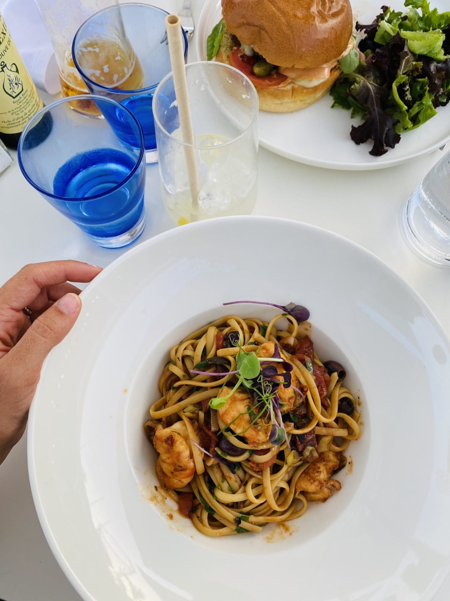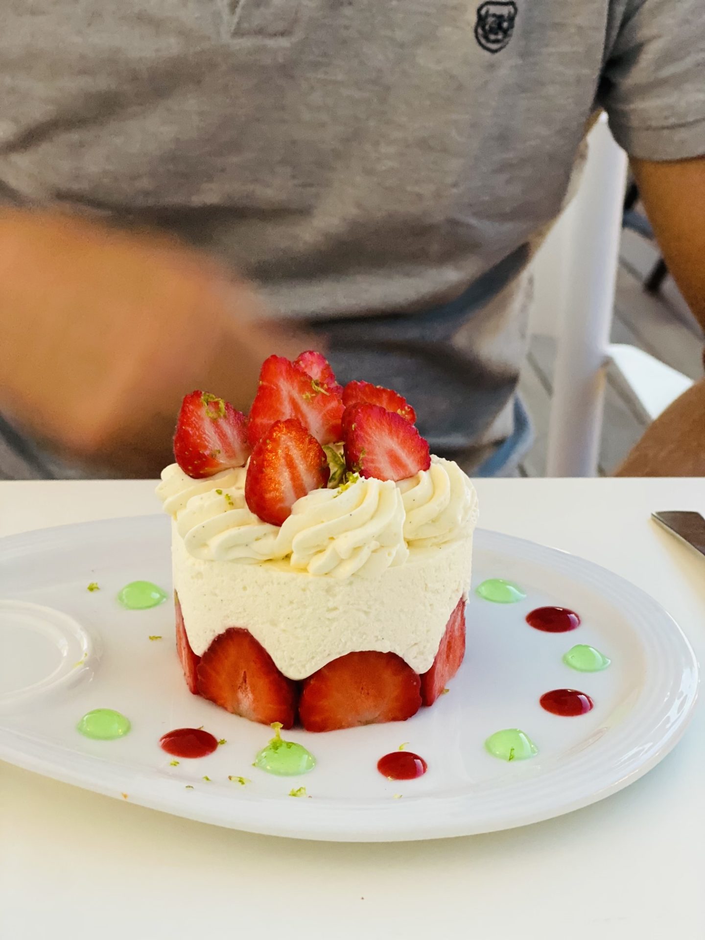 J’avais booké cette plage un soir de la fin juillet pour aller dîner en amoureux. Je cherchais un endroit calme pour se poser tous les deux et bien manger. J’avais eu quelques échos de cette plage à Nice et les photos de leur compte instagram me donnaient envie. Le spot est très sympa, c’est bien décoré et épuré à la fois. Si vous réservez à l’avance, demandez une table au plus proche de la plage, moi j’ai réservé au dernier moment donc on était un peu en retrait. Une fois n’est pas coutume, j’ai changé de mon traditionnel mojito pour un gin fizz qui était super bon. Pour les plats, les pièces de viandes et poissons sont à des prix plutôt élevés, donc j’ai pris des linguines aux gambas qui étaient excellentes ! Stéphane a aussi beaucoup aimé le burger même si il aurait préféré des frites home made. Les desserts sont hyper beaux et bons. Fraisier pour Stéphane, et un singer abricot noisettes qui était très fin et gourmand ! Cela doit être très sympa aussi le midi entre amis autour d’une salade ! Bref, Le Temps d’un Été, on valide !
