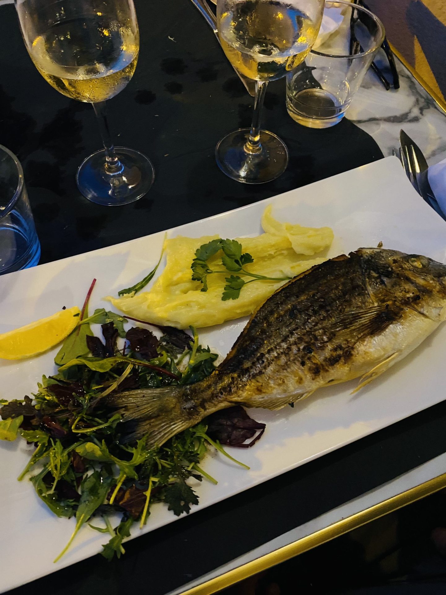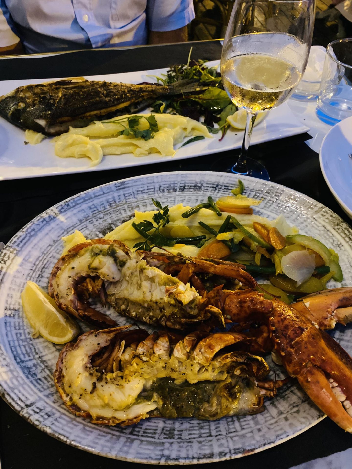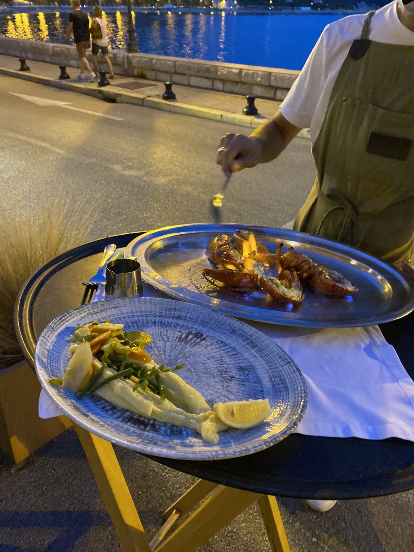 Je vais rarement dîner du côté de Villefranche sur mer car ce n’est pas vraiment à côté de chez moi ! Mais j’adore y aller pour me baigner dans la rade de Villefranche ! Je m’étais dit qu’il fallait que je revienne pour dîner, chose faite récemment avec mo papa ! On a découvert Espuma, une belle adresse aux portes de la plage, avec vue sur le port ! La décoration est très agréable et le spot est chouette ! Si j’avais noté cette adresse depuis longtemps, c’est parce qu’ils proposent des fruits de mer et que j’adore ça ! Vu que Stéphane n’aime pas, j’y suis allée avec mon Papa ! On s’est régalés ! On a commencé avec deux cocktails délicieux : un Espuma Spritz à base de gin assez acidulé avec une touche dmeetume, et d’un Saint Germain Spritz, plutôt sucré. En guide d’entrée, on a partagé un plateau de fruits de mer pour deux qui était excellent : des huîtres, bulots, crevettes roses et grises, langoustine, etc … J’ai ensuite pris du homard flambé d’une finesse délicieuse, et mon papa a été subjugué par la dorade farcie, un poisson entier dont on avait levé les filets, qui était farci, puis reconstitué, superbe. En dessert, on manquait d’appétit mais on a partagé un sablé avec mascarpone et fraises, un régal. On en a vraiment profité, l’endroit est vraiment agréable, que du plaisir !
