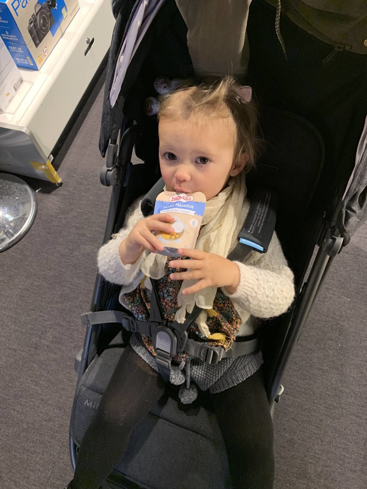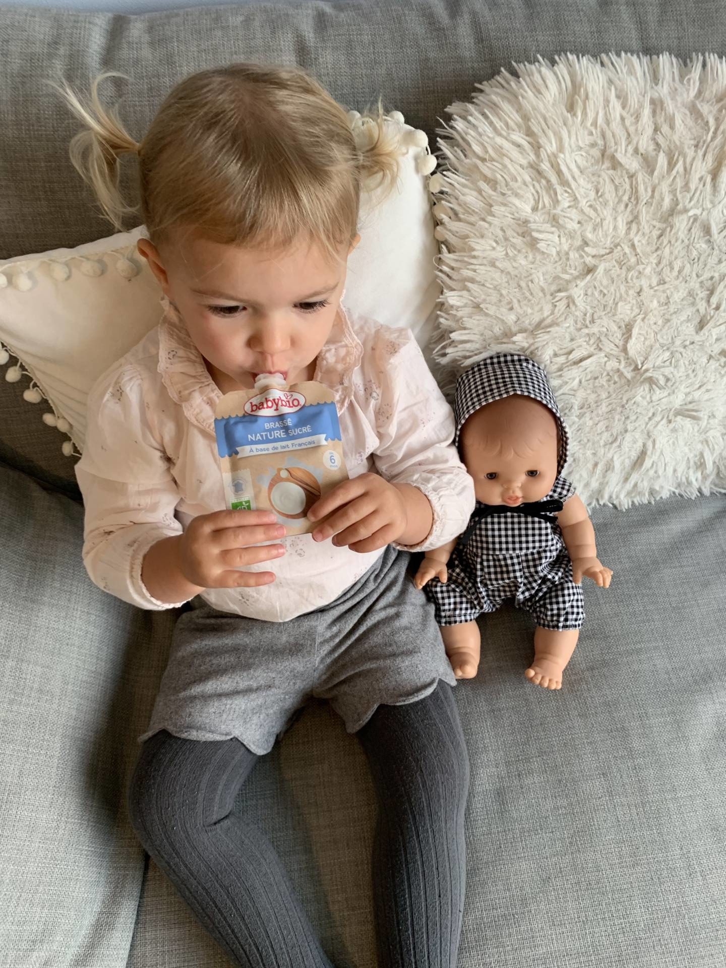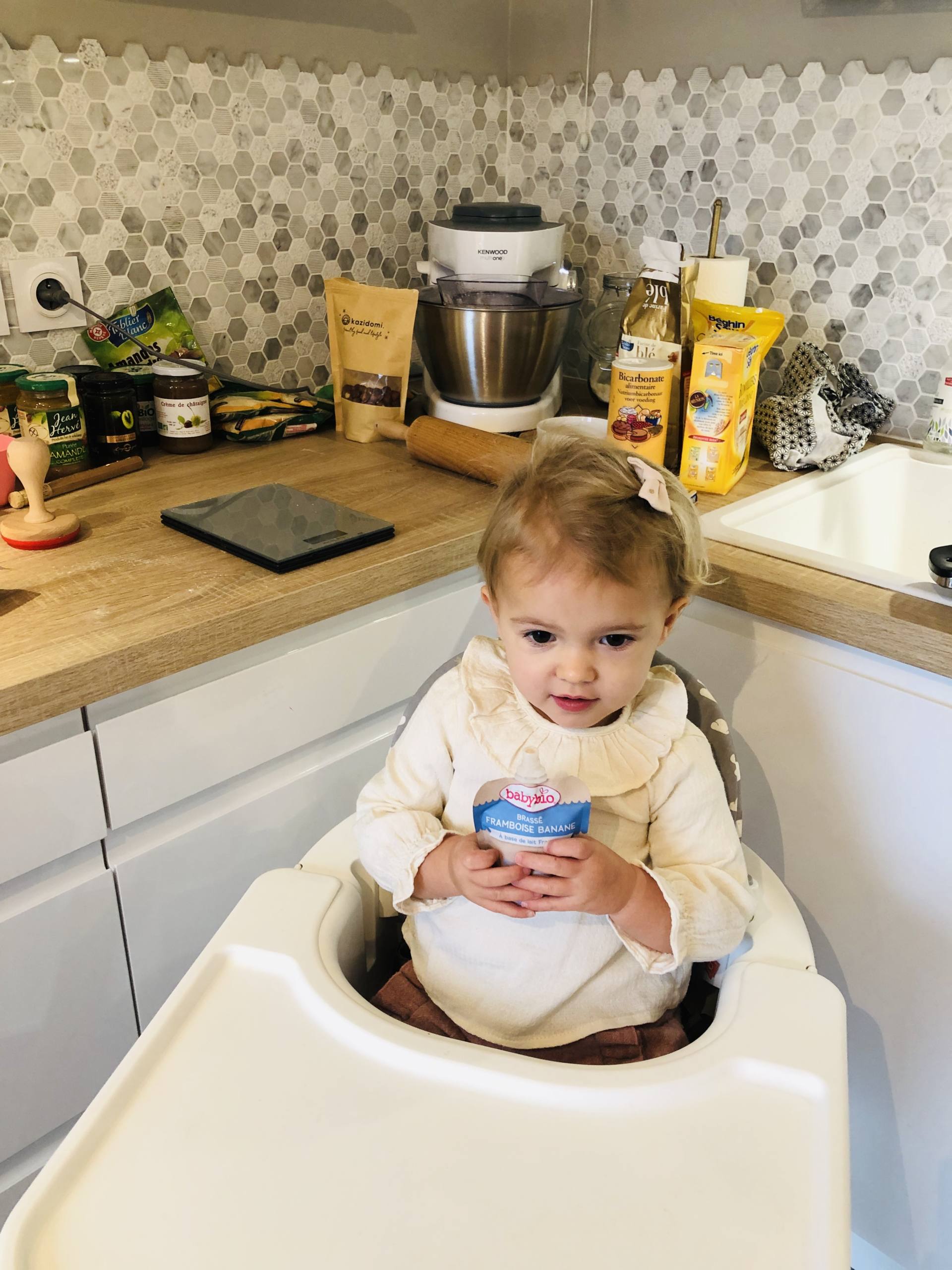 Depuis le début de la diversification alimentaire, je mets un point d’honneur à varier entre plats home made (90% du temps) et petits plats tous prêts pour ne pas se retrouver, en cas de besoin, face à un bébé qui dit non et qui ne mange pas ! C’était surtout le cas jusqu’à ses 12-15 mois. En fait, quand on est en voyage notamment, on a pas toujours la possibilité, à l’heure du repas, d’être dans un endroit où il y a de quoi manger. Généralement, on fait en sorte que si, mais souvent, on prévoit quand même quelque chose en back-up. Pour tout ce qui est plat préparé, compotes et laitages, on a toujours pris Babybio. C’était la seule marque bio présente dans mon drive, et après en avoir analysé plusieurs, c’était celle qui répondait le plus à mes attentes. Je vous en avais d’ailleurs déjà parlé ici et ici ! Les compositions des produits sont clean, c’est bio, et surtout, c’est bon. On a essayé une grosse partie des produits qui existent en 1 an et demi, et franchement, ça sent bon et ça a le vrai goût, comme ce qu’on peut préparer home made. On a surtout eu l’occasion de tester la gamme des plats pour le soir quand on allait chez des copains, en famille, ou à d’autres endroits où on allait manger tard, et Louise les a toujours aimés, surtout celui avec les légumes du soleil ! A l’heure actuelle, ce sont surtout les yaourts brassés et les compotes en gourdes que nous consommons le plus. Le weekend, en vacances ou en vadrouille, c’est vraiment l’idéal. On les mets dans le sac, on a pas de problèmes de fraîcheur car ça se conserve hors frais. On a pas de problèmes de fruits qui s’écrasent non plus. En plus, depuis un moment, c’est trop chou, elle les mange toute seule ! Pour les yaourts, on prend plutôt ceux aux fruits, Louise préfère ceux à la mangue mais elle les aime tous. Pour les compotes, je les prends toutes et on varie. Il y en a même qui ont une pointe de vanille. Les recettes sont vraiment super bonnes, vous imaginez bien que j’ai déjà goûté (pas de gâchis !) ! En tous cas, en grandes surfaces, c’est la seule marque qui m’inspire une totale confiance sur tous les produits. J’ai beaucoup comparé les étiquettes depuis 2 ans et c’est la seule qui soit vraiment clean sur tous les produits, donc je sais que je peux y aller les yeux fermés !