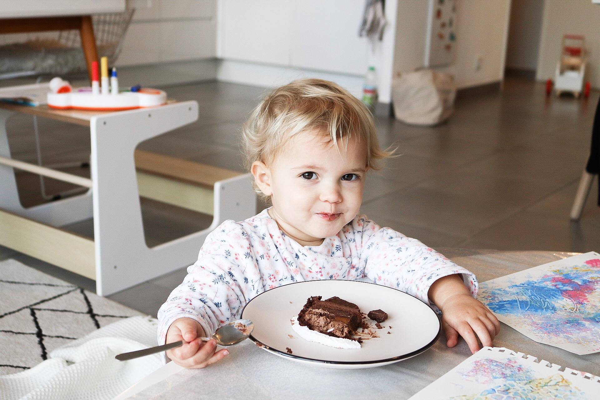 Parfois, aux yeux des autres, on peut passer pour quelqu’un de psychorigide quand on fait attention à l’alimentation de bébé. Vous entendrez souvent : « Non mais nous, on vous en donnait et vous n’êtes pas mort ! » ou alors “Ça va, c’est pas un peu de Nutella qui va la rendre obèse !”. En fait, on nous bassine de « Mangez pas trop gras, trop sucré, trop salé ! ». À l’école primaire, on fait l’éducation alimentaire des enfants. Dans les collèges, on sensibilise les ados au bien manger et aux risques de l’obésité. À l’âge adulte, on soigne et on essaie de faire changer les habitudes alimentaires des personnes en surpoids. Mais quoi de plus difficile que changer ses habitudes ? Je suis convaincue que c’est mieux de prendre de bonnes habitudes dès le départ. Si bébé n’est pas dopé en sucre, son organisme n’aura pas une demande exacerbée ! En plus, à ces âges-là, ils ne réclament pas, ils mangent avant tout par besoin. Néanmoins, Louise n’a pas d’interdit tant que ce n’est pas mauvais pour elle. Elle goûte de tout : nos plats au restaurant, un gâteau fait-maison, une pointe de chocolat, le miel de mes tartines (après 1 an et demi), les fruits de mes desserts, tout ! Elle a d’ailleurs mangé une part énorme de son gâteau d’anniversaire pour ses 1 an. C’est selon moi indispensable pour lui faire prendre du plaisir à manger et pour l’éduquer à toute notre alimentation. C’est un plaisir de la voir toucher et goûter ! Elle a déjà testé le carrot cake à Copenhague, le cupcake new-yorkais, le gâteau aux pommes de maman, et depuis cet été, les glaces ! Évidemment, il ne s’agit que de découvrir et encore une fois, on fait attention à ce qu’on lui donne ! Chez le glacier, ce sera un sorbet et l’équivalent d’une grosse cuillère dans un pot. A la maison, j’ai acheté des sorbets plein fruit. L’objectif est pour l’instant de ne pas intégrer d’aliments dont elle n’a pas besoin dans son quotidien. On sait bien que plus tard, tout ne sera pas contrôlable, et le but n’est pas de tout contrôler. On veut juste dissocier habitudes alimentaires quotidiennes et plaisirs occasionnels ! Comme pour nous finalement ! A deux ans, c’est moins facile car elle identifie ce qui lui plait, elle sait demander, et c’est un âge où la frustration s’exprime très vite ! Alors la petite astuce, c’est de vite lui faire penser à autre chose !
