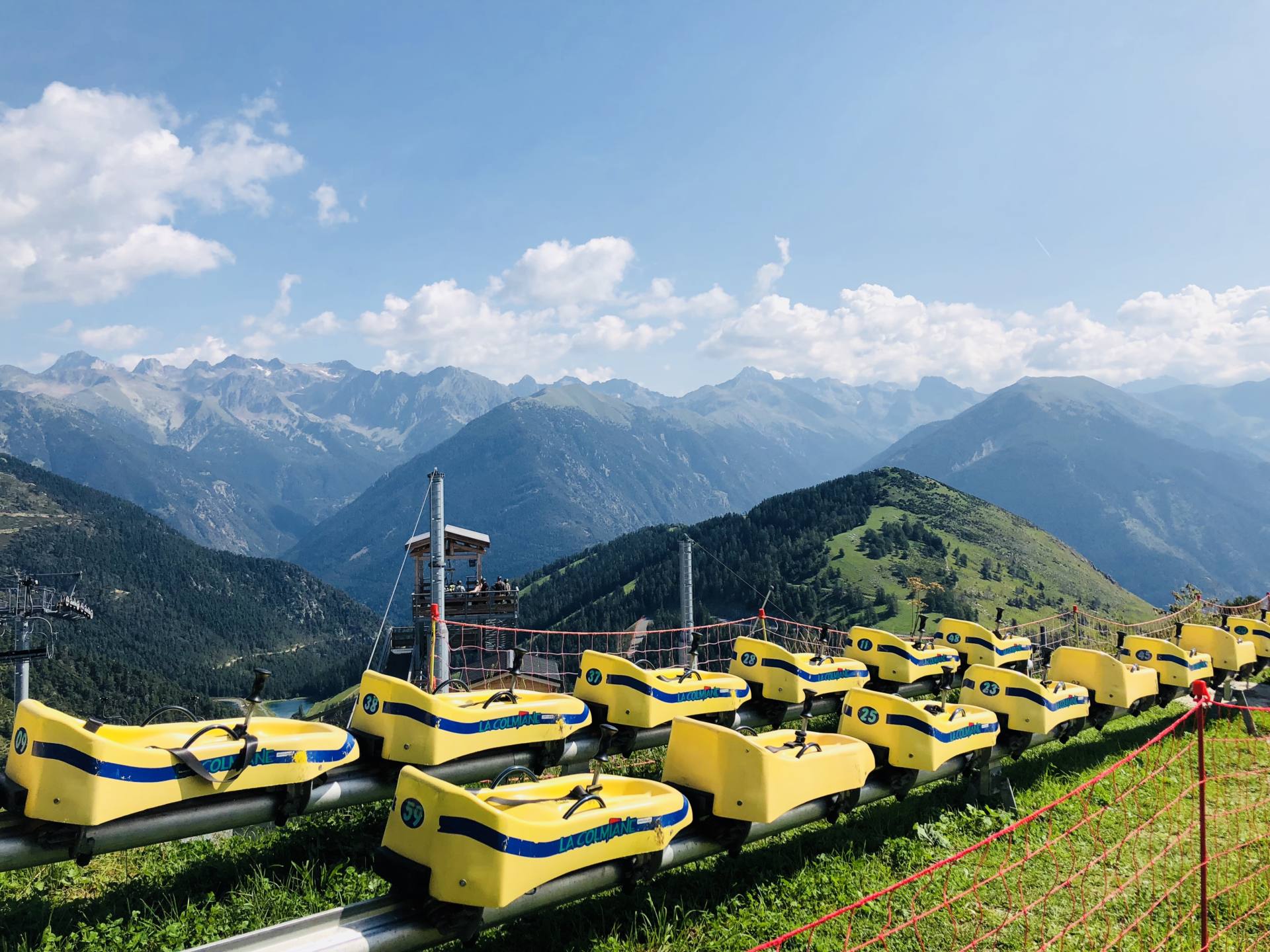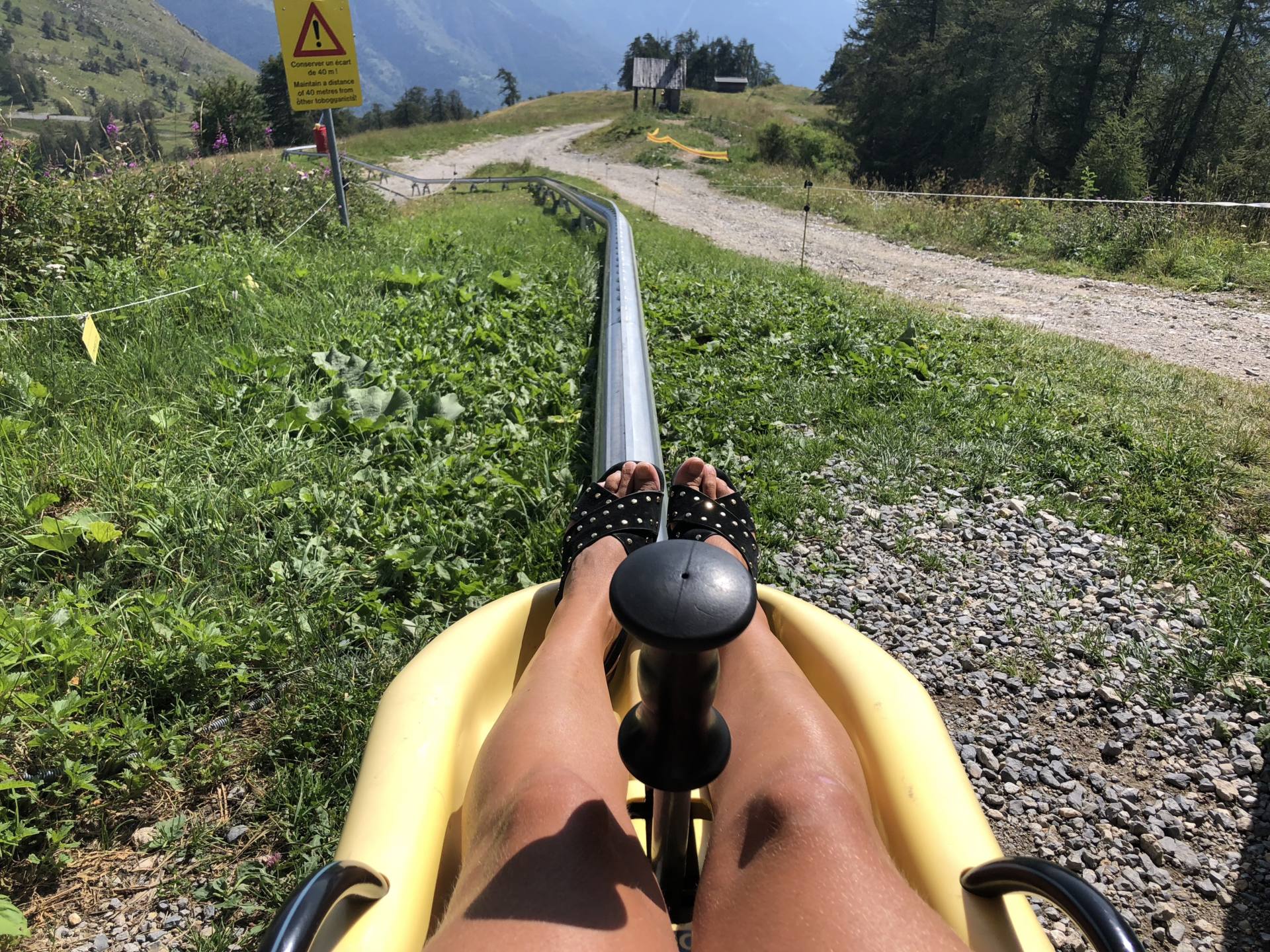 Près de Saint Martin de Vésubie, il y a La Colmiane. C’est une toute petite station de ski qui est hyper vieillissante, ça donne pas envie quand on arrive ! Par contre, il y a énormément d’activités à faire sur place : VTT, mini-golf, actobranche, tyrolienne, luge d’été, via ferrata … ! Vu que j’adore ça, j’en ai profité pour faire de l’acrobranche avec mon père. Je lui en avais offert pour la fête des pères 2017 mais on avait pas réussi à y aller ! Mieux vaut tard que jamais ! On a fait 2 parcours et c’était vraiment bien. De belles vues sur les parcours qui ne sont pas trop longs et variés ! Le début du parcours rouge est assez compliqué, et un des exercices du parcours noir l’est pas mal aussi ! Mais dans l’ensemble, on a fait honneur ! Le ticket est à 22€ par personne pour deux parcours. Juste après, on a tous fait de la luge d’été. Je n’en avais pas refait depuis mes 12-13 ans mais alors j’ai adoré ! Superbes sensations !  La descente est à 11€. En voyant passer des parapentes, ça m’aurait bien donné envie d’en refaire mais je préfère garder ce budget-là pour en faire sur des spots plutôs en bord de mer car j’adore ce genre de vue, comme j’avais pu faire sur l’île de la Réunion (article ici). J’aurais aussi adoré faire la tyrolienne qui est la plus grande de France ! C’est 35€ par personne mais elle a l’air dingue ! Il faudra qu’on revienne. A La Colmiane, on a mangé chez “Le petit resto de Montagne“. Accueil formidable, super bon dans l’assiette, et en plus, une belle démarche : des ingrédients locaux et de saison, une tarte aux pommes maison et des réflexes écologiques (pailles en carton, assiettes compostables et/ou utilisées pour la cheminée intérieure). Bref, une belle adresse !
