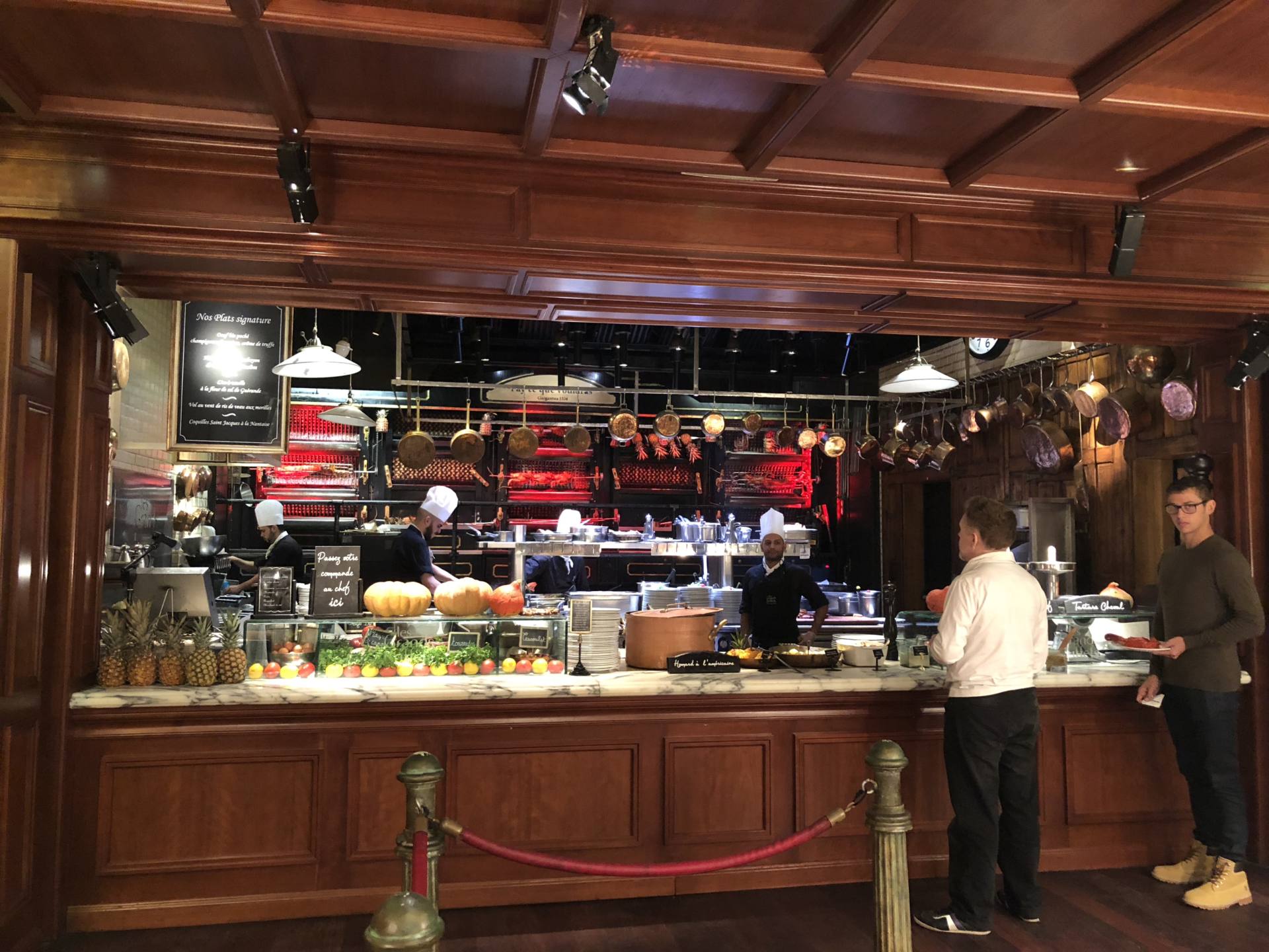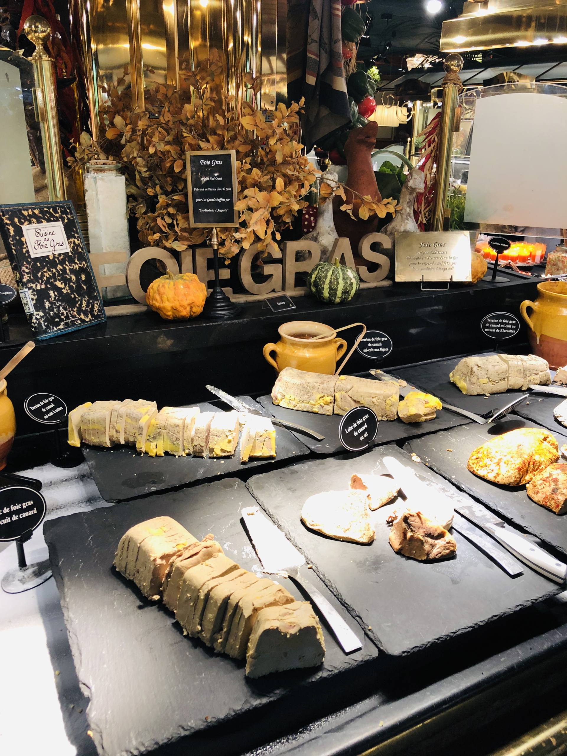 C’est LE restaurant qu’on venait découvrir. Un concept de buffets unique en France. Plus de 300 plats, une qualité exceptionnelle, une rôtisserie où l’on peut déguster, cuit-minute, un grand nombre de plats. Un bar à jambon, un “plateau” de fromages de 45 variétés, et 110 à partir du 4 décembre ! Oui oui, vous avez bien lu … Chaque fromage est nommé pour les identifier, il y a même une étiquette pour mentionner ceux qui sont au lait pasteurisé, ce que les femmes enceintes apprécieront ! Un bar à foie-gras avec 8-10 variétés, des chutneys, des plats de hors d’oeuvres, de charcuterie, des crustacés, du homard. Face à tant de quantité, j’ai été sceptique au départ. Et franchement, je me suis régalée et j’ai été bluffée par la qualité des mets. Des cuissons parfaites, un foie gras très goûteux à la fois ferme et fondant, des ingrédients nobles et de qualité, des desserts par dizaine. C’est un peu le temple de la cuisine traditionnelle, tout y est ! Et fait-maison ! En passant du côté des cuisines, on a été surpris par le calme qui y régnait. Chacun est à son poste, il y avait de la musique et pour une fois, on nous a dit “Vous pouvez tout filmer, il n’y a rien à cacher !”. Et effectivement, même à 13h en plein repas, c’est calme, propre et tout donne envie ! J’ai pour ma part goûter en entrée 1/2 tranche de foie gras, un peu de homard, des asperges et du saumon. Je suis exigeante en matière de foie gras car j’adore ça, et il était PARFAIT ! En plat, une foie n’est pas coutume, j’ai pris de la viande. Les portions servies sont petites car cela permet de goûter à plusieurs choses donc c’est parfait. Pour ma part, vous me connaissez, j’ai pas un gros appétit donc j’ai pris quelques tranches de magret de canard, un peu de gratin dauphinois et une cuillère de ratatouille. Tout était excellent ! J’ai goûté 5-6 petits morceaux de fromage, un régal ! Et j’ai terminé un patchwork de quelques desserts, tous très bons ! Côté vins, on nous a servi un vin que j’ai trouvé excellent. La politique de l’établissement est que les vins sont vendus au prix producteur, vous allez pouvoir vous faire plaisir, la majorité sont du Languedoc. Il faut compter 35,90€ par adulte, 17,90€ pour les 6-10 ans et gratuit pour les moins de 5 ans ! Vous verrez pas vous-même que le rapport qualité-prix est excellent !