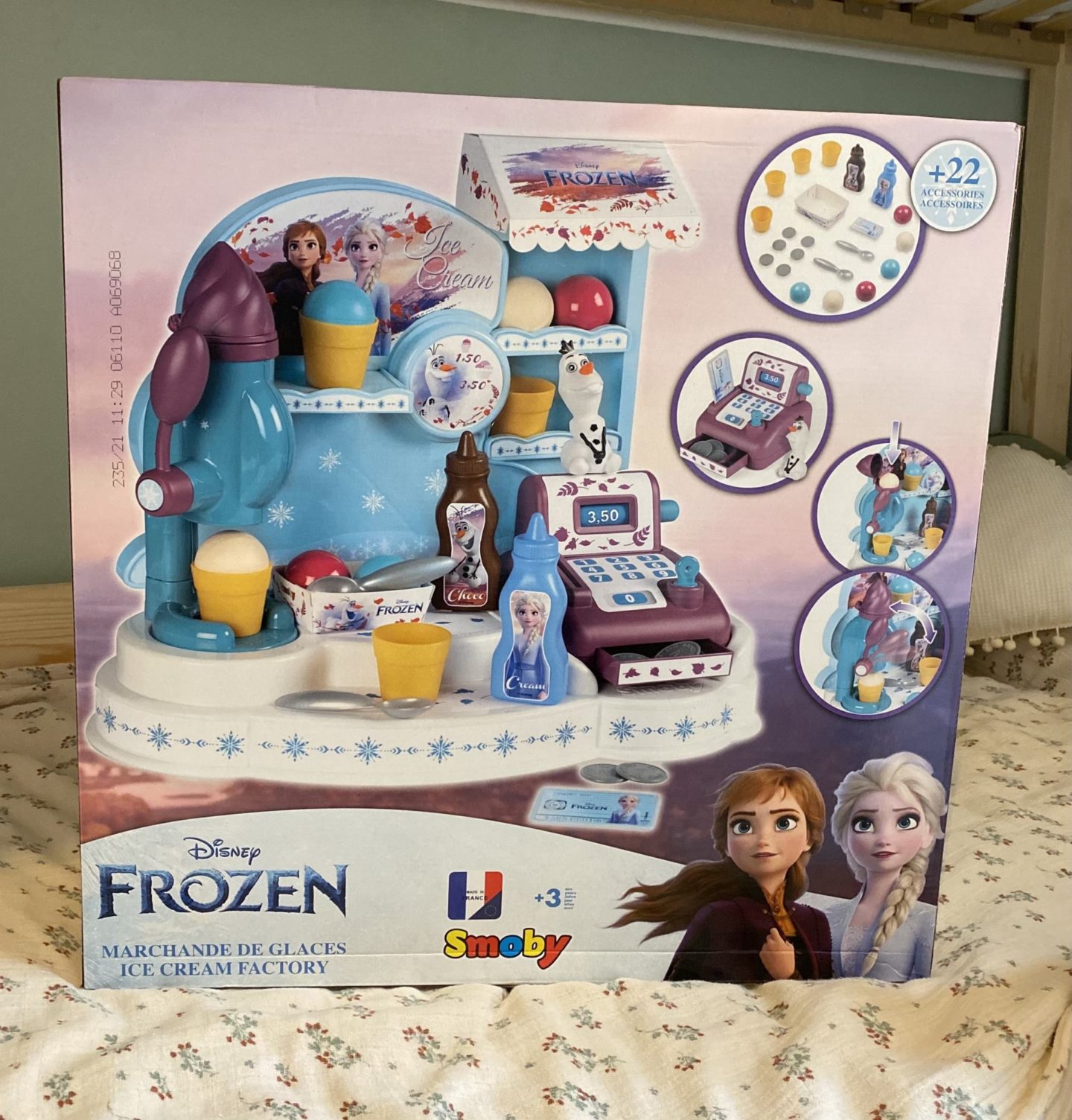 Ce que je regarde aussi beaucoup depuis 3-4 ans, c’est la provenance. Je privilégie toujours le made in Europe, et quand je vois made in France, je privilégie, cela va de soi ! J’en ai trouvé dans le catalogue E.Leclerc, et de la même façon, j’ai trouvé ça top parce que je pense qu’une large partie de la population fait ses achats de Noël en grandes surfaces. J’ai opté pour la marchande de glaces car Louise en parle depuis longtemps, et Steph est parti sur la voiture à construire car elle adore celle que son frère a eu récemment et ils la veulent toujours en même temps !