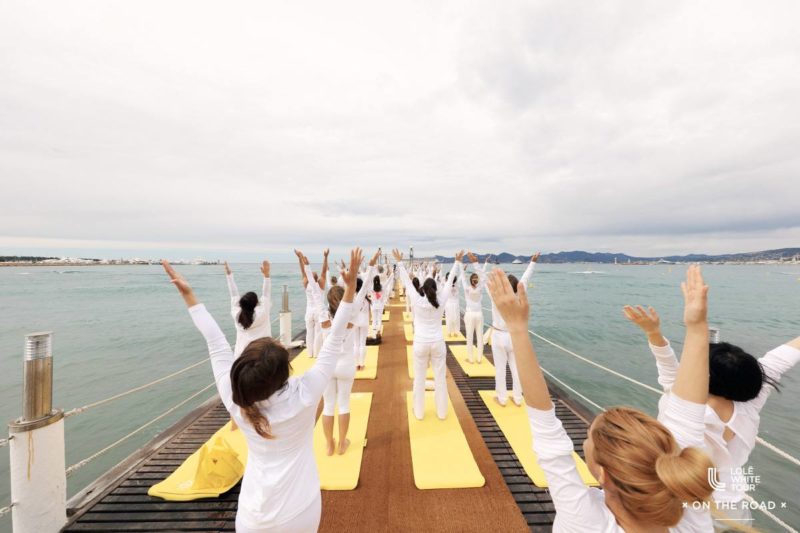 La première journée au festival, c’était le premier vendredi. Il n’a pas fait très beau mais j’avais un très gros planning. J’ai commencé ma journée avec la marque Lole Women ! Je me suis mise au yoga depuis environ un mois donc c’était un honneur d’être invitée par la marque à participer à la première date du Lole White Tour, une tournée de 50 villes où il y aura des séances de yoga dans des lieux exceptionnels ! Pour nous, c’était sur le ponton de l’hôtel Martinez et c’était vraiment MA-GI-QUE ! Le bruit des vagues couplé au calme du matin et à la musique d’une violoniste présente pour l’occasion, c’était idéal ! Ca m’a vraiment conforté dans mon envie de persévérer dans le yoga. En tous cas, cela restera un souvenir exceptionnel.