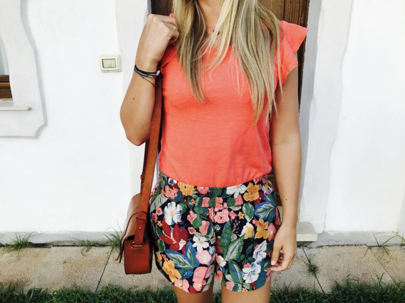 À Orosei, on avait un hôtel que j’ai adoré et dont je vous parle ici. Les chambres étaient autour de la piscine et je trouvais cette configuration vraiment sympa ! J’ai eu envie, un soir, avant de partir manger, de vous faire les quelques photos de mon look très simple et très coloré ! Du fleuri, du corail, tout ce qui me fait penser à l’été. J’avais oublié mes bijoux ce jour-là, comme souvent. Mais c’est pas grave, j’avais juste envie de partager avec vous ce petit moment des vacances, tant pis pour les bijoux.