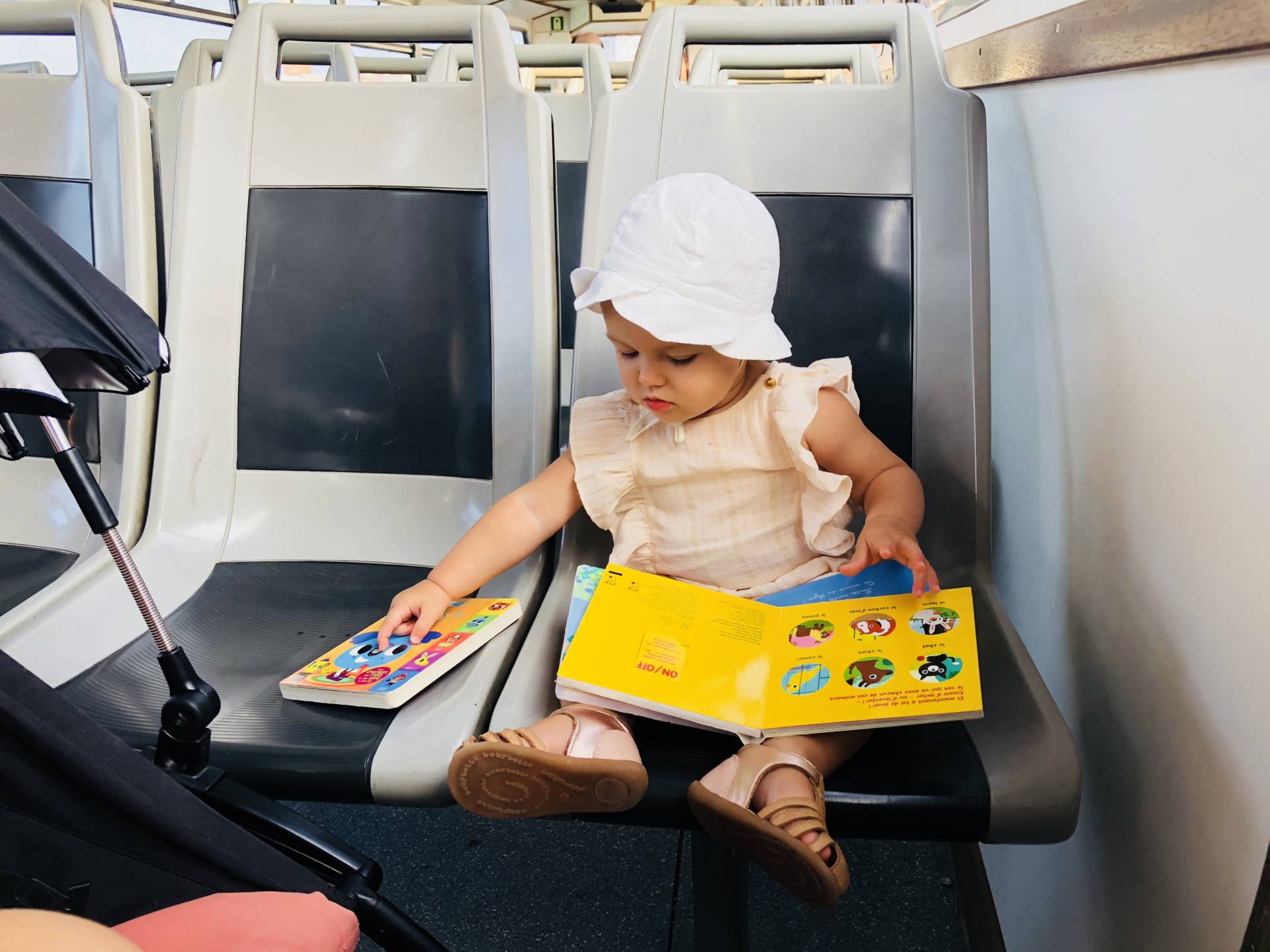Globalement, je trouve que les jeux durent quand même assez longtemps. Elle a beaucoup profité de son arbre d’éveil (presque 1 an), de sa table d’activités (8 mois) et de ses premiers jouets d’éveil qu’elle aime encore utiliser pour certains. Ce dont elle ne se lasse pas, ce sont des livres ! Au départ, on avait des petits livres mous qui « crépitent ». Puis des livres qui se touchent avec différentes matières. Puis on est passé aux livres sonores. Et alors là, jackpot, elle adore ! En ce moment, on commence pas mal à utiliser des imagiers pour apprendre de nouveaux mots, reconnaître ceux qu’elle connait déjà ! C’est fou comme ils apprennnent vite … ça me scotche la façon dont elle mémorise !