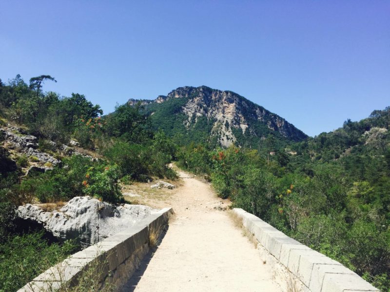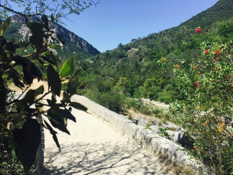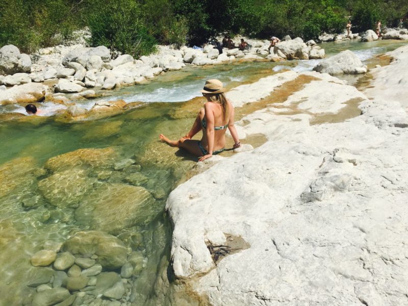 Cette mini-randonnée vaut le coup car le panorama en bas est vraiment chouette. De la roche blanche, une eau cristalline, des petites gorges et ce fameux pont très mignon. Ce coin est idéal si vous voulez vous poser tranquillement et passer une journée loin de la côte qui grouille de monde. De notre côté, le programme, c’était pic-nic les pieds dans l’eau, baignade dans les baignoires naturelles et lecture de magazines au soleil. Pensez à prendre une bonne crème solaire et un parasol car vous serez sur la pierre blanche donc ça tape ! C’était vraiment une belle journée dans l’arrière-pays que je vous recommande vraiment, surtout que ce n’est pas très loin en voiture ! Je vous mets quelques photos pour finir de vous convaincre.
