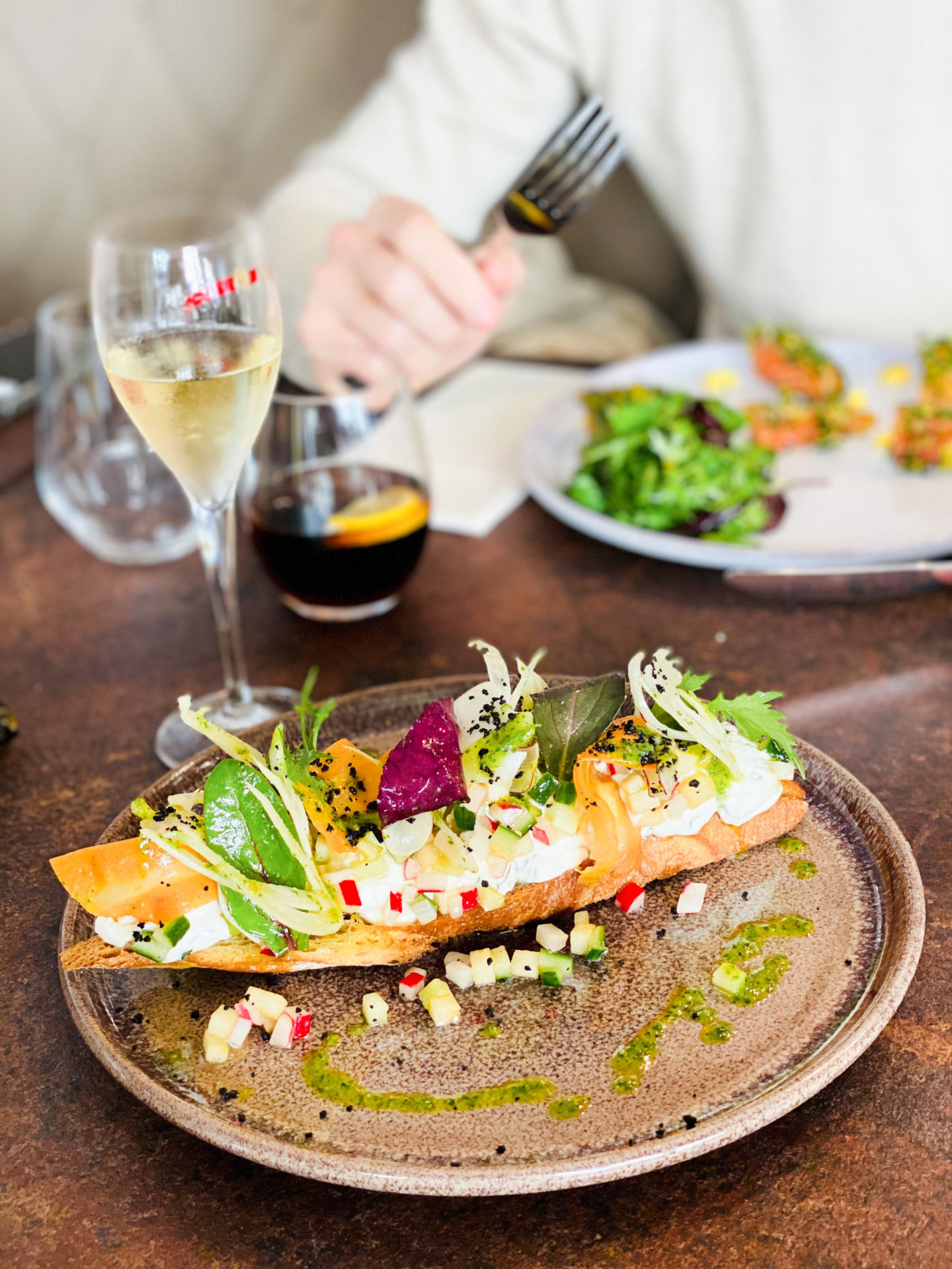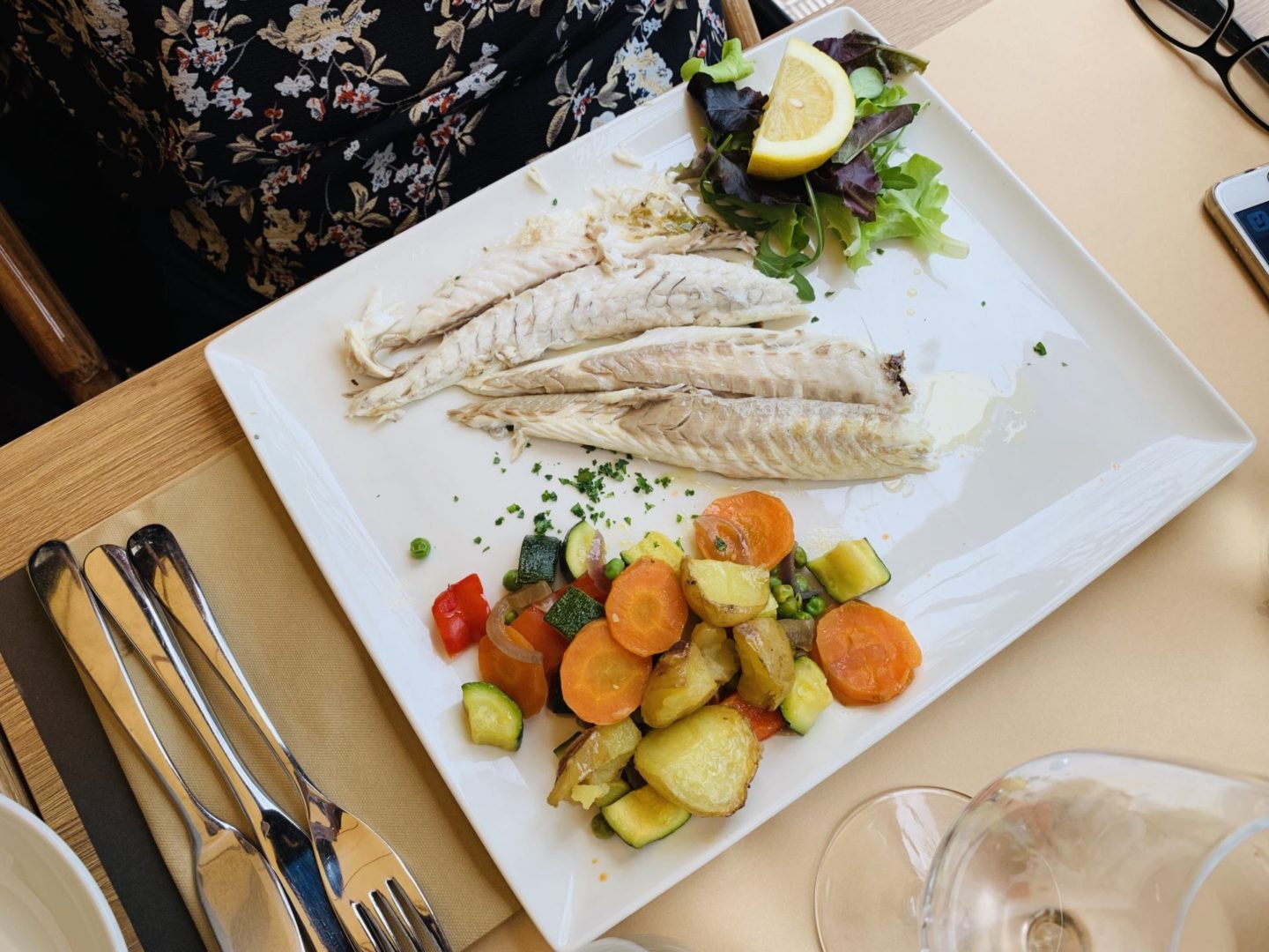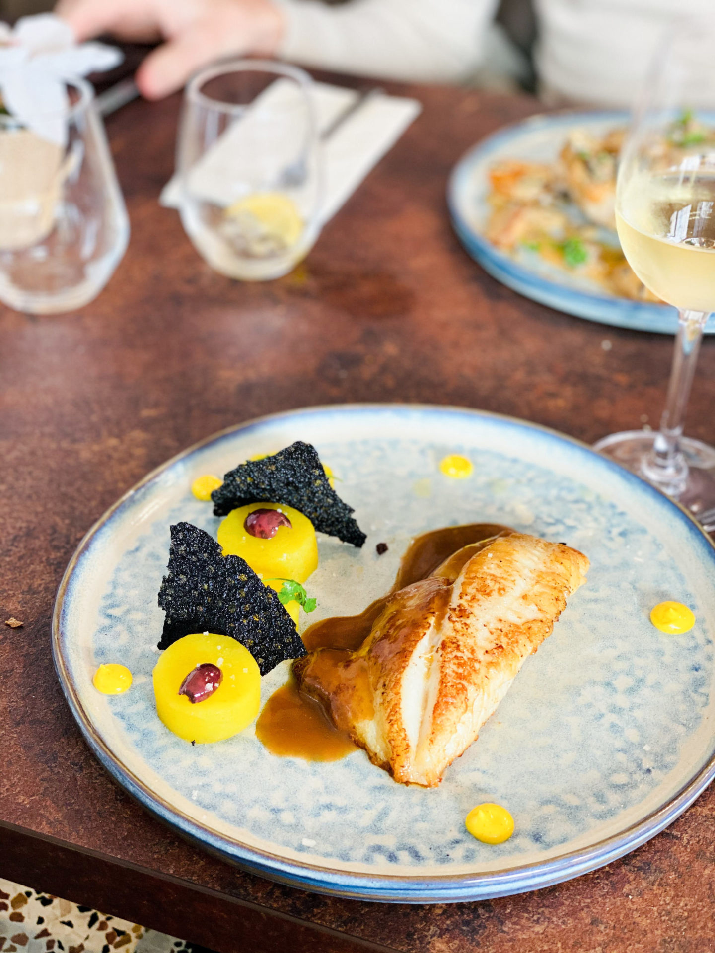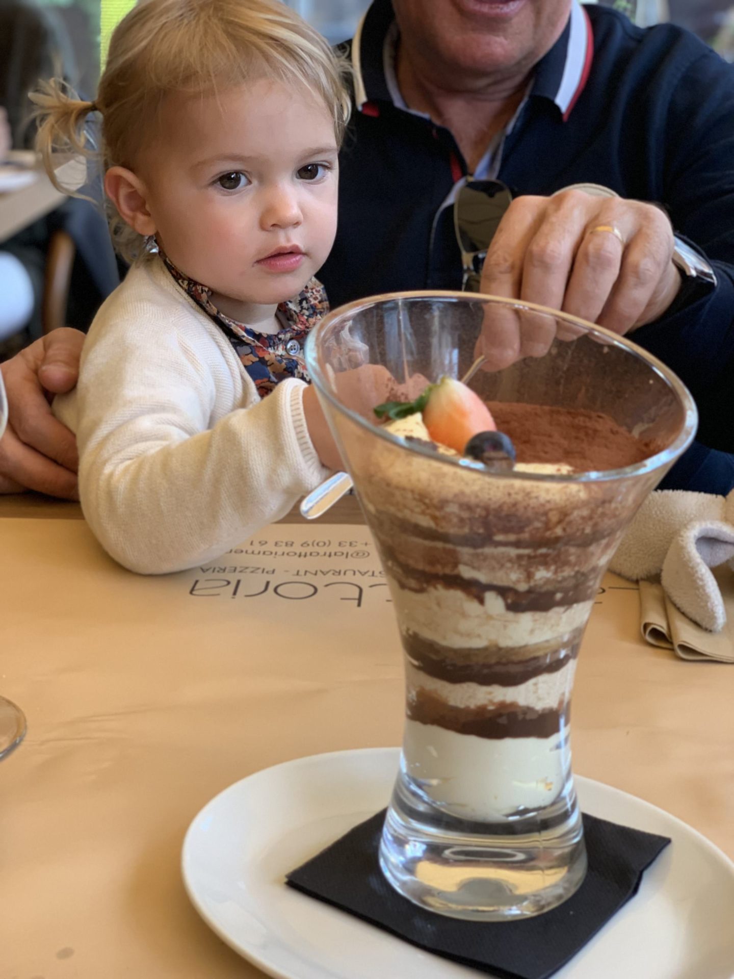Après cette balade au milieu des agrumes, on s’est dit qu’on déjeunerait à Menton. Petit check sur Tripadvisor, petit message posté sur instagram, et une adresse est vite ressortie : la Trattoria (les premières photos ci-dessous)! Sur le boulevard, pas loin de la voiture, c’était idéal. Et on a eu de la chance, que 20 minutes d’attente. Parce qu’apparemment, c’est une excellente adresse ! Et on confirme ! Pâtes alla norma, calamars grillés, ravioli au pistou, loup grillé, tiramisu, gâteau ricotta/pistache, tout était parfait ! Un régal, à prix très corrects ! Attention, le tiramisu à 9€ est énorme !!! Nous, on a pris ce dessert à deux et ça suffisait ! Quand je suis retournée à Menton récemment, une amie nous a recommandé JR Bistronomie, un restaurant qui venait d’ouvrir (les photos en 2e position ci-dessous). Quelle découverte ! Une cuisine de marché, façon bistronomie, une belle qualité au niveau des ingrédients, une carte de saison, une jolie salle, un super accueil et petit plus pour les parents, un bel espace de jeux pour les enfants avec des livres, un grand tableau, quelques jouets. Tellement appréciable de pouvoir profiter plus longuement du repas sans avoir les kids qui s’impatientent vu qu’ils sont occupés. Côté assiette, on s’est plus que régalés. Du dressage au goût, tout était parfait, rien à redire. En entrée, saumon gravelax pour Stéphane, et tartine chèvre radis huile de noisette pour moi, dingue ! On a continué avec une côte de veau sauce aux champignons pour Stéphane, filet de St Pierre farci avec notamment de la tomate séchée, et pommes de terre fondantes. Pour finir, je n’avais plus de place mais Stéphane a pris le dessert tout chocolat qui était divin car très aéré donc pas trop lourd. Un sans faute jusqu’au menu enfant : filet de bar pané, frites de patate douce, elle a tout mangé !