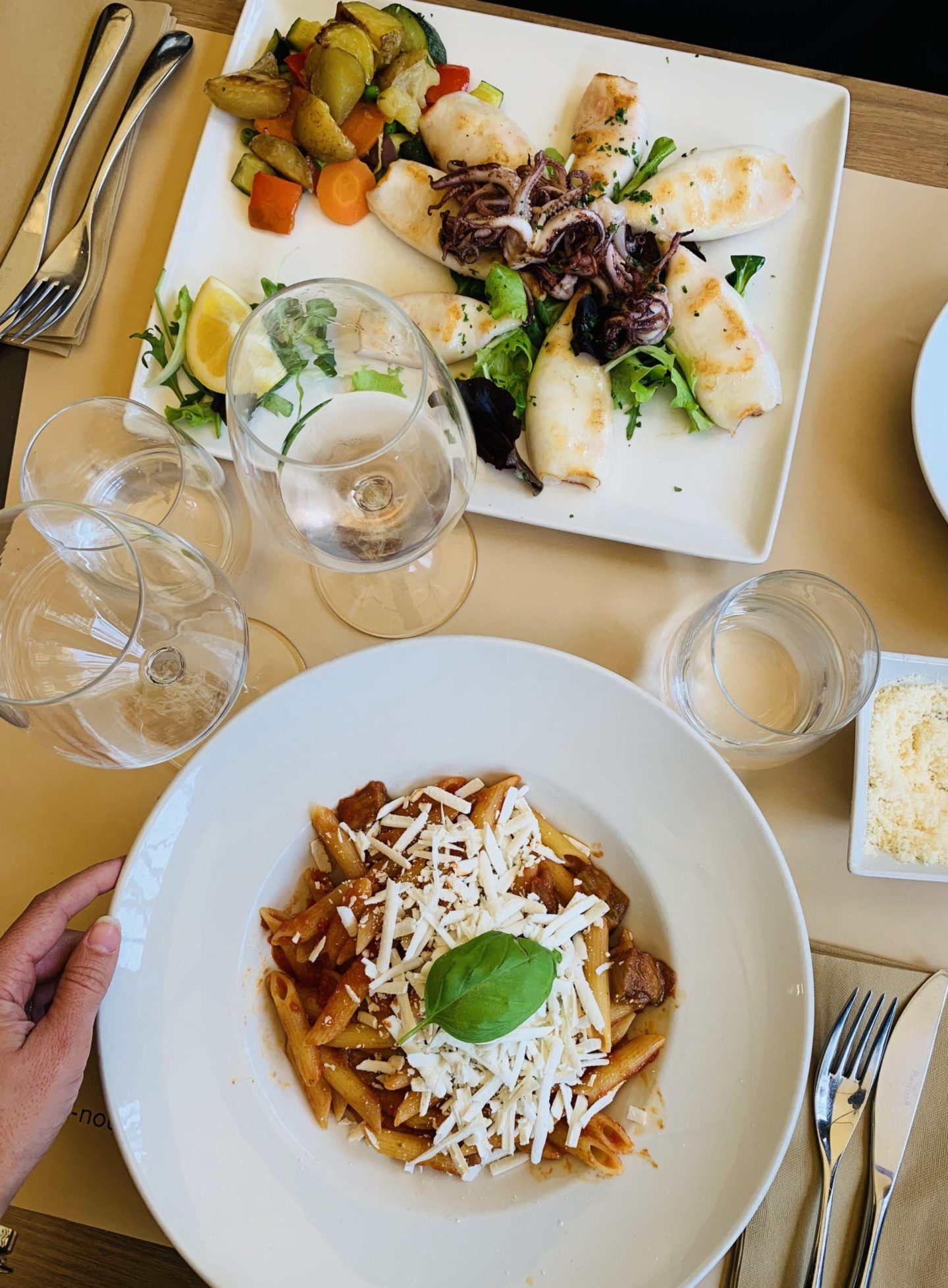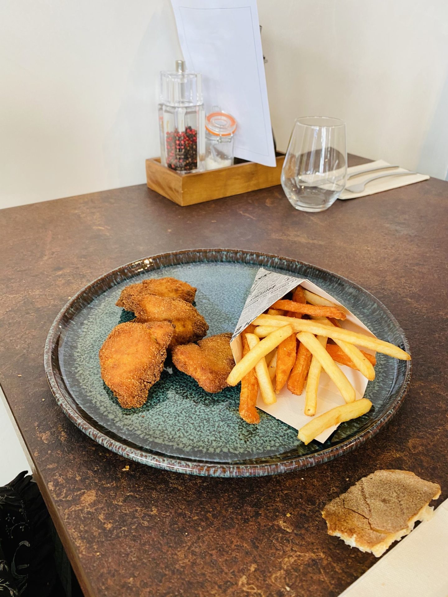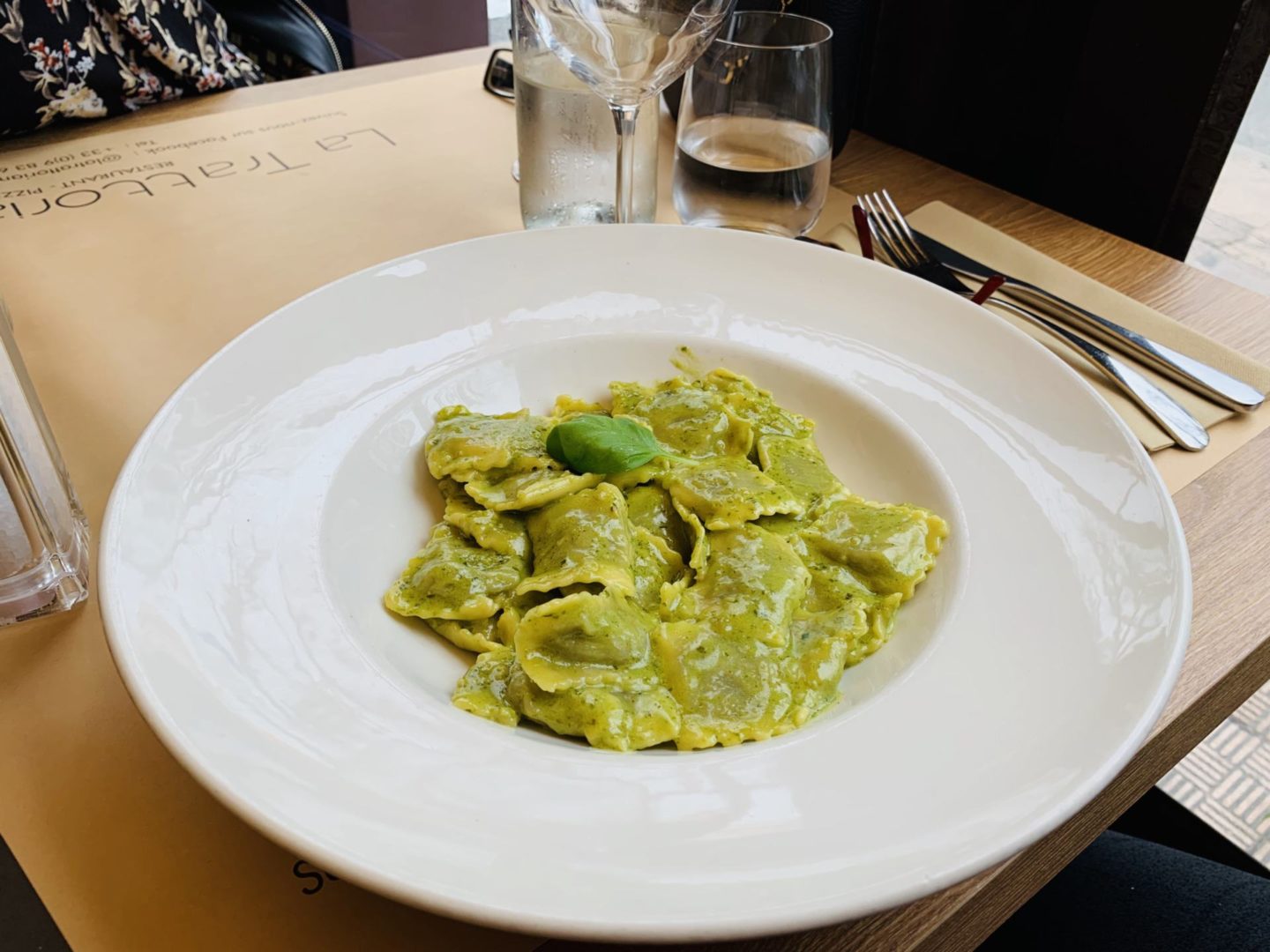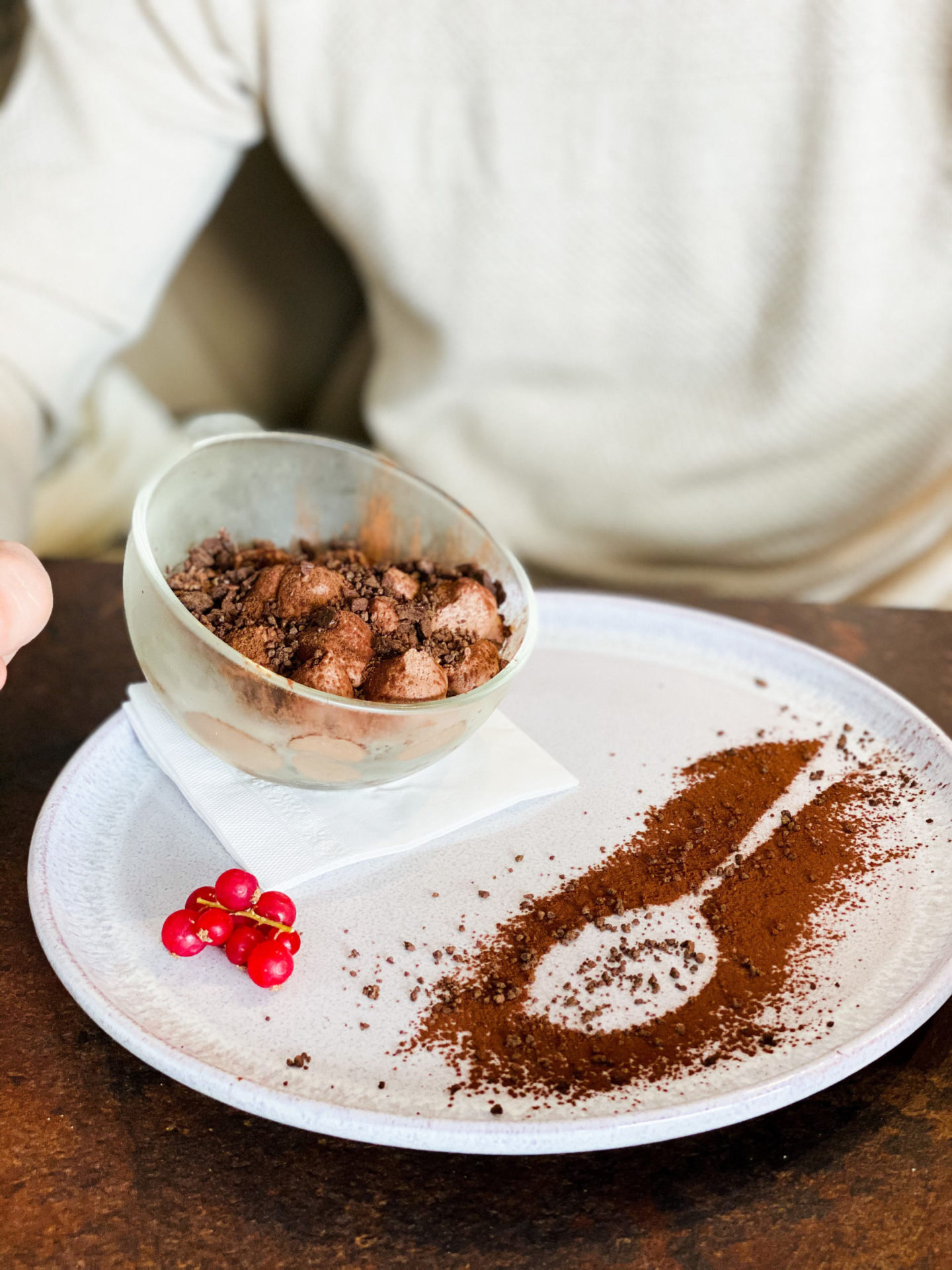 Après cette balade au milieu des agrumes, on s’est dit qu’on déjeunerait à Menton. Petit check sur Tripadvisor, petit message posté sur instagram, et une adresse est vite ressortie : la Trattoria (les premières photos ci-dessous)! Sur le boulevard, pas loin de la voiture, c’était idéal. Et on a eu de la chance, que 20 minutes d’attente. Parce qu’apparemment, c’est une excellente adresse ! Et on confirme ! Pâtes alla norma, calamars grillés, ravioli au pistou, loup grillé, tiramisu, gâteau ricotta/pistache, tout était parfait ! Un régal, à prix très corrects ! Attention, le tiramisu à 9€ est énorme !!! Nous, on a pris ce dessert à deux et ça suffisait ! Quand je suis retournée à Menton récemment, une amie nous a recommandé JR Bistronomie, un restaurant qui venait d’ouvrir (les photos en 2e position ci-dessous). Quelle découverte ! Une cuisine de marché, façon bistronomie, une belle qualité au niveau des ingrédients, une carte de saison, une jolie salle, un super accueil et petit plus pour les parents, un bel espace de jeux pour les enfants avec des livres, un grand tableau, quelques jouets. Tellement appréciable de pouvoir profiter plus longuement du repas sans avoir les kids qui s’impatientent vu qu’ils sont occupés. Côté assiette, on s’est plus que régalés. Du dressage au goût, tout était parfait, rien à redire. En entrée, saumon gravelax pour Stéphane, et tartine chèvre radis huile de noisette pour moi, dingue ! On a continué avec une côte de veau sauce aux champignons pour Stéphane, filet de St Pierre farci avec notamment de la tomate séchée, et pommes de terre fondantes. Pour finir, je n’avais plus de place mais Stéphane a pris le dessert tout chocolat qui était divin car très aéré donc pas trop lourd. Un sans faute jusqu’au menu enfant : filet de bar pané, frites de patate douce, elle a tout mangé !